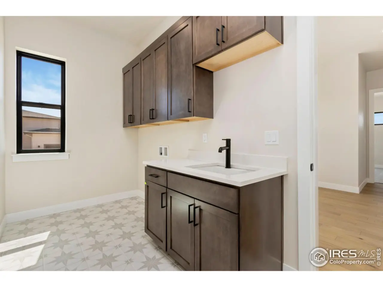 One of the last Alexandra's at Acadia in RainDance by Trumark Homes; a stunning, single-story home offering 4,710 finished sq.ft. with 4 bedrooms and 4.5 baths. Spacious great room with stained ceiling beams and contemporary fireplace with tile detail to the vaulted ceiling. The gourmet kitchen, featuring a walk-in pantry and an oversized center island, perfect for entertaining. The open kitchen includes dusk-stained shaker style with glass stacked cabinetry, Calacatta Classique quartz countertops with subway tile backsplash, Monogram/Electrolux stainless steel appliance package, and decorative matte black fixtures. A center-meet sliding glass door connects the light-filled dining room and great room to the covered outdoor east facing deck which features cedar tongue & groove ceiling detail. A dedicated office with a glass wall and door overlooks the covered deck. The primary suite features ample windows, a luxurious bathroom, walk-in shower, and an elegant freestanding tub. An oversized walk-in closet completes the primary suite. On the other side of the home, you'll find a large laundry, flex room, and two secondary bedrooms, both with ensuite bathrooms. Finished basement includes a rec room with wet bar, a fourth bedroom and full bath. The home comes with extensive 5" plank natural stained engineered wood flooring throughout the majority of the main floor, black interior windows, hand trowel drywall finish, luxurious carpet in bedrooms, spacious 10-foot ceilings throughout the main level and basement, eight-foot interior doors, 3-car side-load garage with insulated steel doors, tankless water heater, AC, and more. Beautiful 1-acre home site close to neighborhood park & RainDance National Golf Club. Optional Raindance pool amenity. Don't miss your chance to live at this remarkable master-planned community in Windsor, CO!