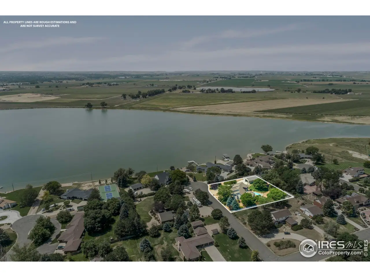 A once-in-a-generation opportunity awaits in the prestigious Sonny View Estates. This remarkable one-acre property offers a serene country lifestyle with city conveniences just minutes away. Located in Weld County, you'll enjoy lower taxes and a prime location-only 5 minutes from Greeley and 10 minutes from Windsor, with easy access to highways and I-25. The home is within the highly acclaimed Eaton School District. This custom-built home is an entertainer's dream, situated on a private lake that allows motorized watercraft. Outdoor living shines with covered decks, a saline/saltwater inground pool, hot tub hookup, and manicured grounds with an automated sprinkler system and raised garden beds. Inside, you'll find quartz countertops, stainless steel appliances, and custom Milarc cabinets. The main floor primary suite includes a spacious walk-in closet. With seven bathrooms - three full, three 3/4, and one powder room-plus a large laundry/mud room and dedicated workspace (attached and detached garages), the home is designed for both comfort and function. Perfect for income or multi-generational living, the property includes a studio apartment with a full kitchen and private entrance, plus a massive 36x56 detached garage with its own address, another studio apartment, tandem parking for up to six vehicles, and room for RVs, boats, and toys. Complete with a second workspace, it's ideal for a home business or serious hobbyist. Truly an unparalleled opportunity to own a luxurious home with incredible potential.