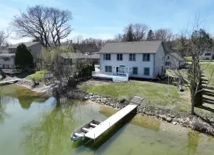 Breathtaking sunrises from this stunning 5 bedroom, 3.5 bath and a 4-car garage colonial home. Situated on the shores of Pike Lake with 77 feet of sandy-bottom frontage and pier. Enjoy fishing, water sports and swimming from your own backyard. Nearly every room has beautiful panoramic views of the lake. The main house boasts an open-concept layout has a spacious kitchen with Quarts counter, stainless steel appliances, BIC and desk flowing into the living room and dining area, huge master bedroom suit, half bath and laundry room finish this level. Just updated main, refinish hard wood floors, carpeting, light fixtures and fresh paint. Upstairs with loft, 2 bedrooms and bath. Sliding door open to a large deck-perfect for relaxing or entertaining with spectacular lake views. Private 2nd floor in-law suite offers kitchen, living room, 2 bedrooms, bath and stunning lake view. New roof on house and garage in 10/2025.