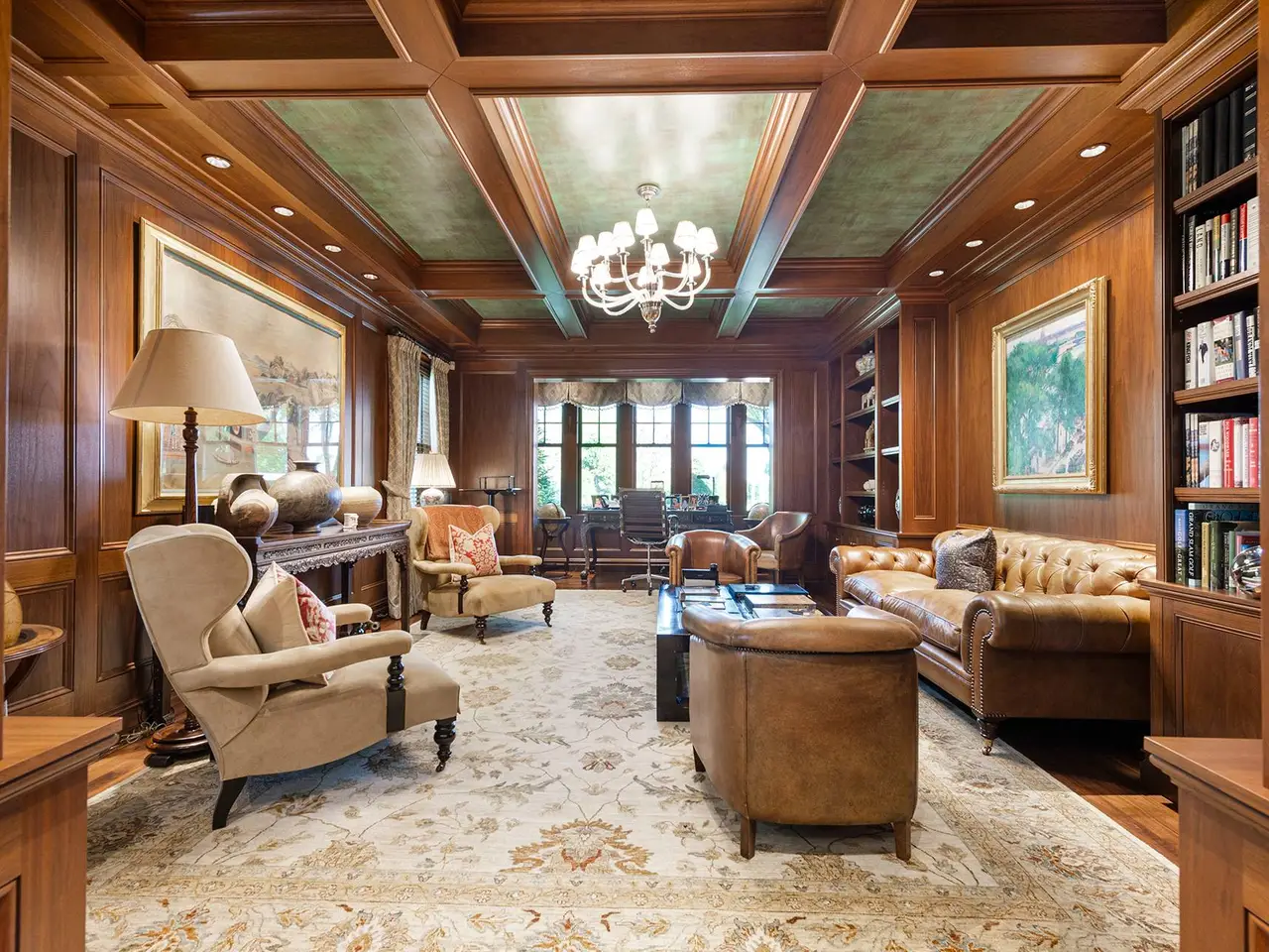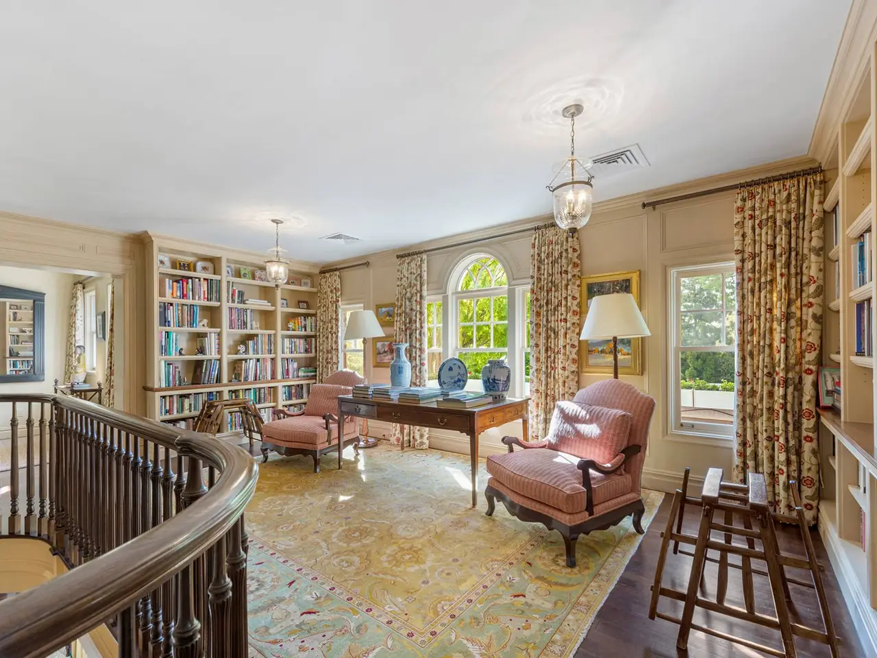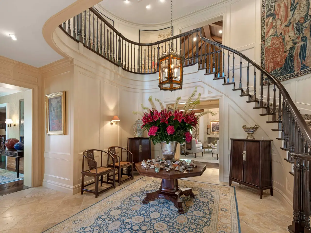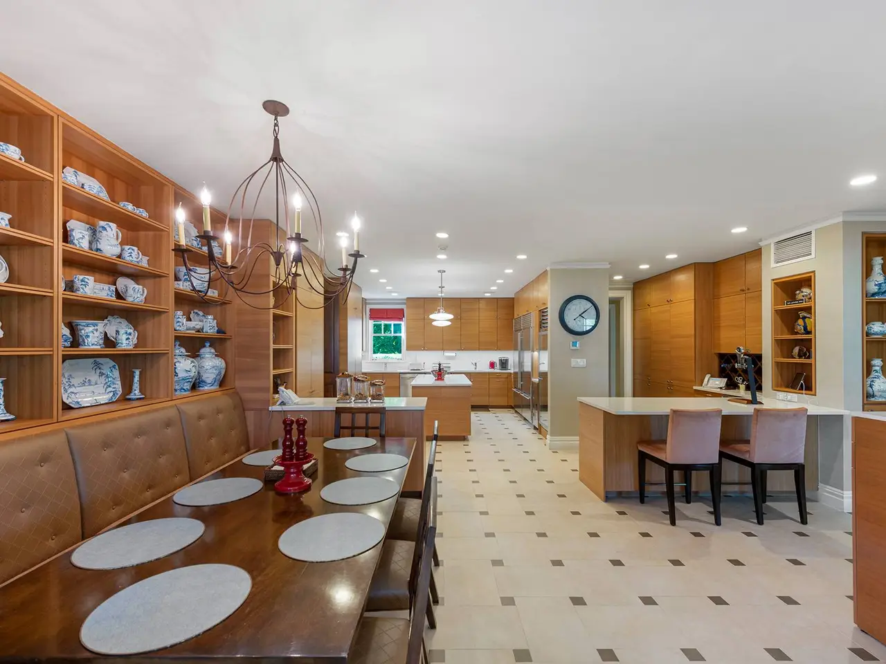 Located south of the highway in Southampton's prestigious Fordune Association and just moments from the ocean and very close to town, this exceptional estate represents the epitome of luxury living in the Hamptons. Spanning over 5.5 acres, the property boasts expansive lawns, meticulously-maintained gardens and millions of specimen plantings, ensuring unmatched privacy, tranquility and a parklike, amenity-rich environment. Built under the most rigorous commercial building standards/codes, every aspect of this turnkey estate, from its grand architectural design to its lavish interiors, showcases a dedication to excellence and sophistication. The compound includes a magnificent residence of approximately 20,000 square feet (including the finished lower level) and a 2,634 square foot accessory building that serves as a state-of-the-art fitness center with a gym, yoga studio with a 4-station yoga wall, massage room, spa and salon (for your private hair stylist). The grounds also feature a pool house, saltwater 40x60 swimming pool, tennis court with pavilion, basketball court and a 2-car garage/service building, primarily used for storing golf carts, which provide access to the ocean beach via the Fordune Association's beach access right of way. The main house is constructed with a combination of wood frame and structural steel, featuring western red cedar shingles and northeastern granite in a random pattern on parts of the façade, along with a recently replaced western red cedar roof. The home includes 13 bedrooms, 14 full baths and two half baths. The interior spaces are vast, with a grand foyer boasting 20-foot-high ceilings and a one-of-a-kind Natural American and Brazilian walnut staircase and wood flooring. Further on, the impressive 35 x 25 foot living room offers 21 foot ceilings. This sublime space includes a fireplace and walls of glass overlooking the expansive terraces and pool area. Off the living room, the east wing first floor houses a media room, a beautiful office/library with a stunning walnut finish and coffered ceilings, plus a bedroom suite. The second floor of the east wing, accessed by the main staircase in the foyer, includes a library and two bedroom suites, including the expansive primary bedroom. This suite features a sitting area, 4 closets, including a large walk-in, two bathrooms and a balcony overlooking the pool. The west wing first floor features two bedroom suites, plus a junior primary bedroom, a formal dining room and a professional kitchen that is both enormous and high-end, well-equipped and ideal for a private chef. The kitchen includes an expansive sitting area and a separate breakfast area. A second staircase leads to the very private guest wing with five bedroom suites. The generous lower level, accessible by two staircases, includes a state-of-the-art wine storage facility, a 400 square foot dedicated electrical, media, telephone and internet center, as well as a recreation room with a fireplace and media room. There is also a separate and private staff apartment with a living room, two bedrooms and two full baths.