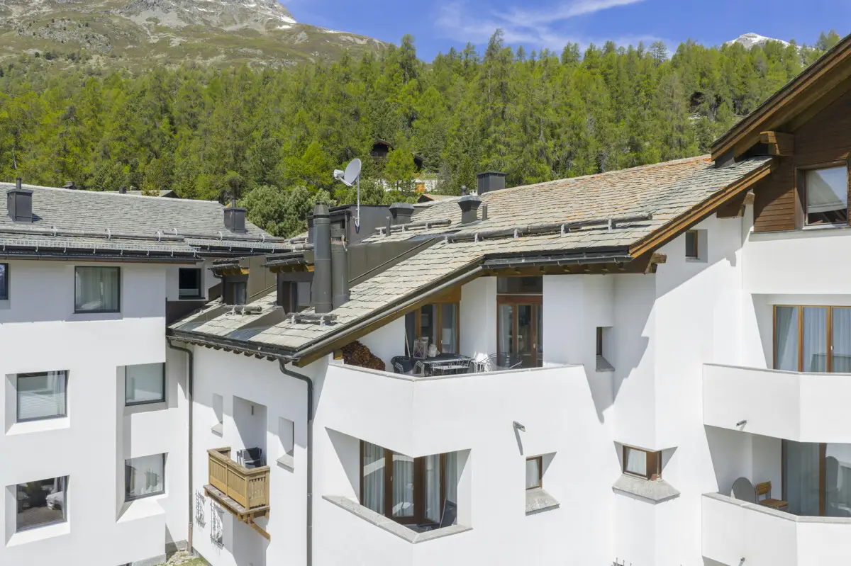 This exclusive 3.5-room maisonette apartment makes a distinct impression with its blend of sophisticated design and high-quality fixtures and finishes. The entrance area includes a practical cloakroom and a modern bathroom with a shower. The light-filled living area is open and spacious, while the ingeniously integrated kitchen, with its in-built dining area, flows seamlessly out onto the terrace, which boasts stunning views of the mountains and the Corvatsch peak. The result of the merger of two units, the apartment offers the benefit of a flexible layout with two separate entrances. The space is further enhanced by a compact additional kitchen, a separate bathroom with a bathtub, and an extra living area, ideal for accommodating guests. The gallery level houses two sleeping areas, practical built-in wardrobes, a dressing room, and a utility space with a washing machine and dryer. A standout feature is the association with the renowned Giardino Mountain Hotel. Residents enjoy first-class wellness and spa facilities, exquisite gastronomy, and a convenient shuttle service to nearby ski areas. Three garage spaces and two large cellar storage rooms complete the offering. Proximity to St. Moritz and Silvaplana makes this prospect an exclusive retreat for those used to the finer things in life. Key features: - Approx. 123m² living space - High-quality finishes - Two separate entrances - Hotel amenities including spa, restaurants, and shuttle service available - Terrace with panoramic views - Three garage spaces available for purchase - Two cellar storage rooms