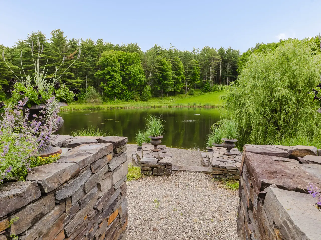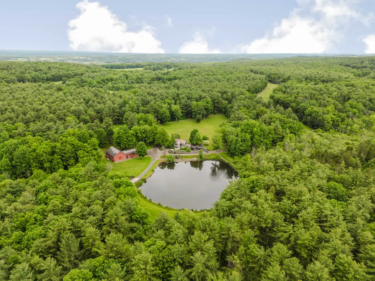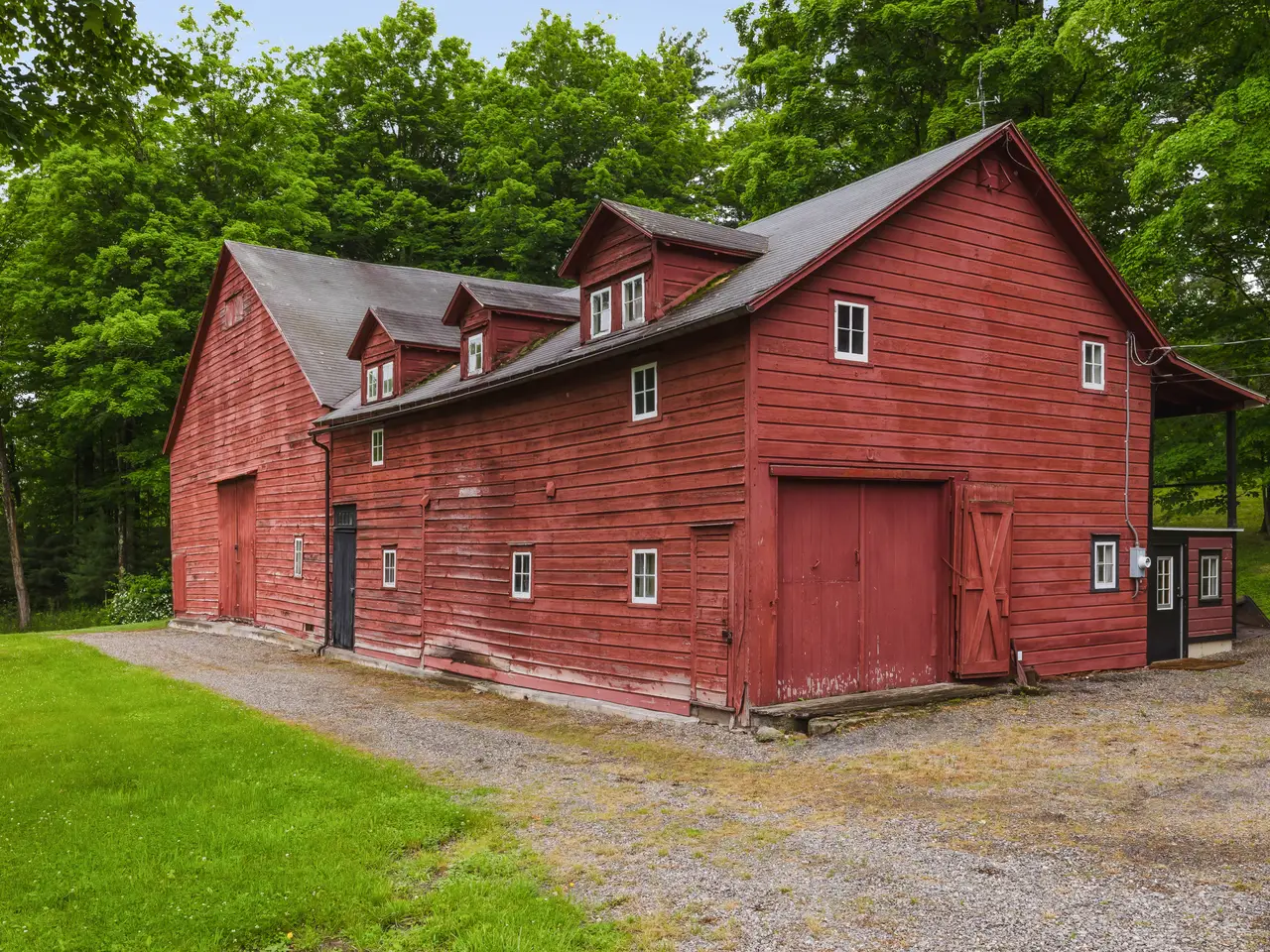 Welcome to Mac Brown Waterhouse, a storied 119-acre estate set within a hidden valley offering complete seclusion and timeless beauty. The original 1830s farmhouse is tucked away at the end of a private lane in Claverack, NY, where the road terminates in a round gravel driveway anchored by the property's original stone well. Two large ponds grace the land, one directly in front of the house that is aerated and swimmable. Sited among meadows and mature woodlands, the main house, upgraded barn, and charming studio shed are framed by terraced stonework, a network of trails, and thoughtfully designed gardens. The setting is peaceful, restorative, and deeply connected to the land, yet only a short drive to both Hudson and Great Barrington. The antique farmhouse offers four bedrooms and two bathrooms across 2,825 square feet, where original details like moldings, wood floors, and Dutch doors preserve its old-world charm. A generous double living room and an office nook outfitted with Vitsoe modular shelving, lead to a bright dining area, kitchen, and direct access to the patios and gardens. The layout encourages an easy indoor-outdoor rhythm, with covered porches, and multiple terraces for lounging, cooking, or gathering. Two staircases rise to the upper-level bedrooms, where the southern exposure fills each room with light, and the attic has been insulated to improve year-round comfort. Throughout the home an intentional color palette lends softness and cohesion. The overall design brings together European sensibility and Hudson Valley character, balancing utility with ease, warmth, and quiet sophistication. Across the garden sits a fully insulated, historic barn that has been transformed into a large-scale creative studio, complete with a bathroom with a clawfoot tub, kitchenette, updated electrical and HVAC. A detached potting shed offers another versatile space, ideal as a garden studio, writer's nook, or future guest cottage. It's connected to an outdoor bath deck that invites restorative soaks beneath the stars with its fireplace, clawfoot tub, and outdoor shower. Next to the house, a carport with EV charging and a full-property generator ensures comfort and continuity year-round.The primary pond is the centerpiece of the propertyaerated, swimmable, and bordered by a pebble beach and firepit. It's ideal for swimming, birdwatching, or evening gatherings. Cranes, herons, and even bald eagle sightings make it a birdwatching paradise. Terraced gardens by The Secret Gardener surround the home with a cottage-style blend of flowering plants, herbs and vegetables. Rewilded fields and meadows lead to two miles of maintained trails through native grasses and towering trees. The land qualifies for a forestry exemption and includes multiple cleared areas, offering potential for a guest house, horses, or even a helipad. Whether hosting music on the lawn, harvesting from the garden, or watching the changing sky reflect in the pond, Mac Brown Waterhouse is a rare legacy estate and true sanctuary.