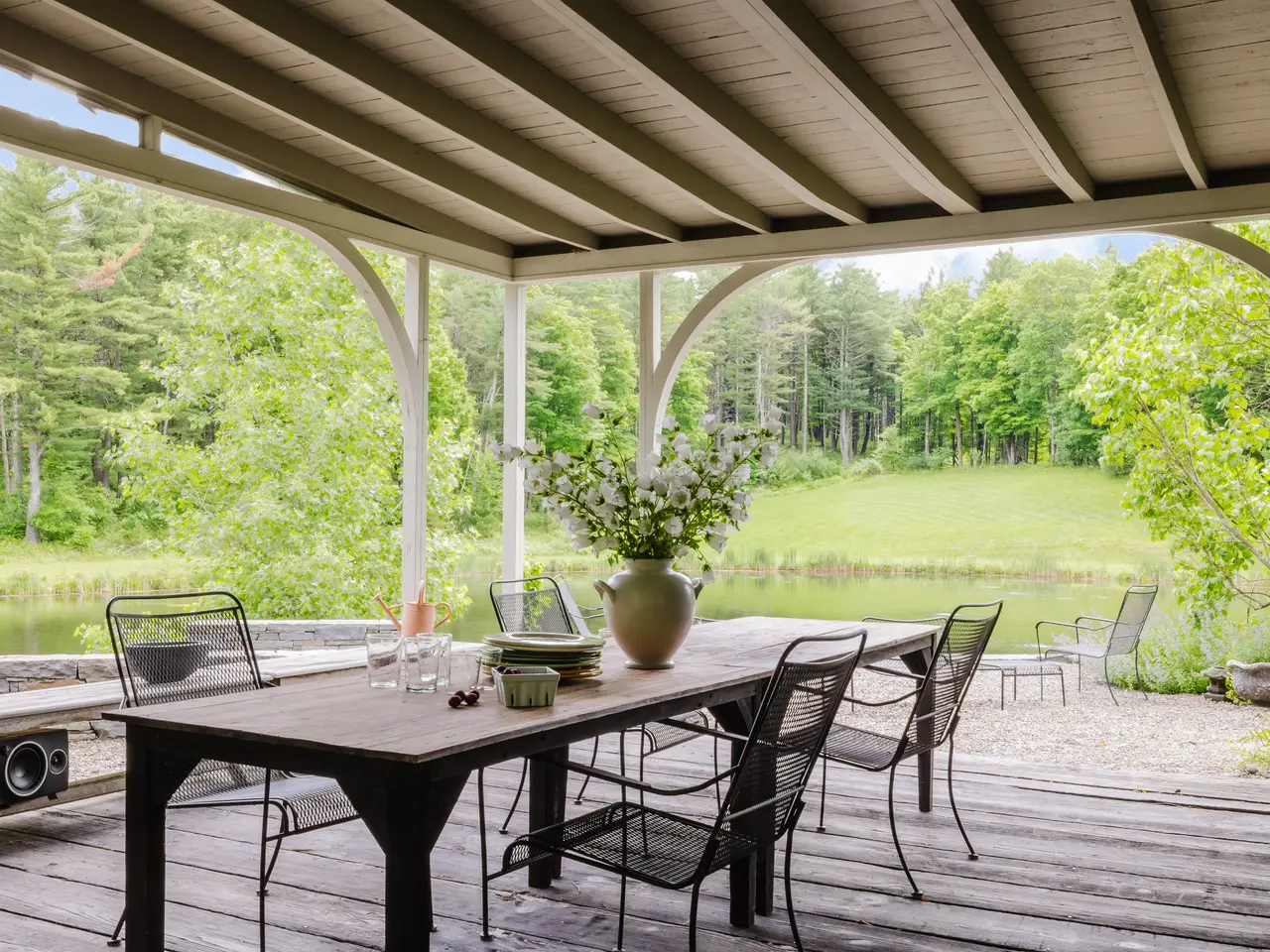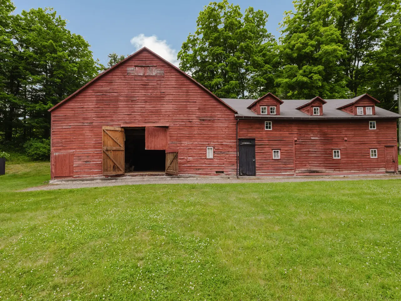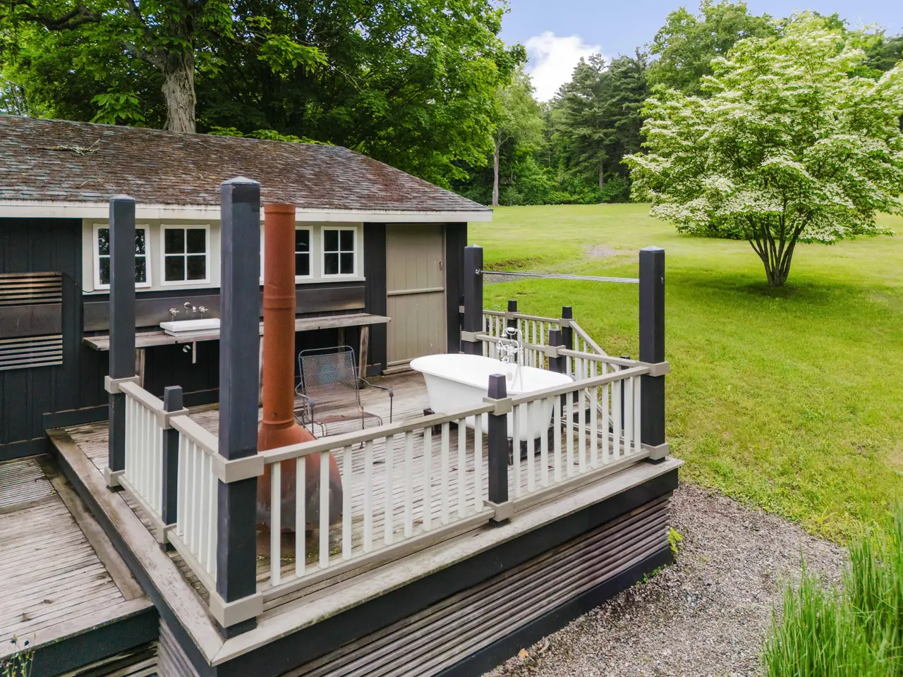 Welcome to Mac Brown Waterhouse, a storied 119-acre estate set within a hidden valley offering complete seclusion and timeless beauty. The original 1830s farmhouse is tucked away at the end of a private lane in Claverack, NY, where the road terminates in a round gravel driveway anchored by the property's original stone well. Two large ponds grace the land, one directly in front of the house that is aerated and swimmable. Sited among meadows and mature woodlands, the main house, upgraded barn, and charming studio shed are framed by terraced stonework, a network of trails, and thoughtfully designed gardens. The setting is peaceful, restorative, and deeply connected to the land, yet only a short drive to both Hudson and Great Barrington. The antique farmhouse offers four bedrooms and two bathrooms across 2,825 square feet, where original details like moldings, wood floors, and Dutch doors preserve its old-world charm. A generous double living room and an office nook outfitted with Vitsoe modular shelving, lead to a bright dining area, kitchen, and direct access to the patios and gardens. The layout encourages an easy indoor-outdoor rhythm, with covered porches, and multiple terraces for lounging, cooking, or gathering. Two staircases rise to the upper-level bedrooms, where the southern exposure fills each room with light, and the attic has been insulated to improve year-round comfort. Throughout the home an intentional color palette lends softness and cohesion. The overall design brings together European sensibility and Hudson Valley character, balancing utility with ease, warmth, and quiet sophistication. Across the garden sits a fully insulated, historic barn that has been transformed into a large-scale creative studio, complete with a bathroom with a clawfoot tub, kitchenette, updated electrical and HVAC. A detached potting shed offers another versatile space, ideal as a garden studio, writer's nook, or future guest cottage. It's connected to an outdoor bath deck that invites restorative soaks beneath the stars with its fireplace, clawfoot tub, and outdoor shower. Next to the house, a carport with EV charging and a full-property generator ensures comfort and continuity year-round.The primary pond is the centerpiece of the propertyaerated, swimmable, and bordered by a pebble beach and firepit. It's ideal for swimming, birdwatching, or evening gatherings. Cranes, herons, and even bald eagle sightings make it a birdwatching paradise. Terraced gardens by The Secret Gardener surround the home with a cottage-style blend of flowering plants, herbs and vegetables. Rewilded fields and meadows lead to two miles of maintained trails through native grasses and towering trees. The land qualifies for a forestry exemption and includes multiple cleared areas, offering potential for a guest house, horses, or even a helipad. Whether hosting music on the lawn, harvesting from the garden, or watching the changing sky reflect in the pond, Mac Brown Waterhouse is a rare legacy estate and true sanctuary.