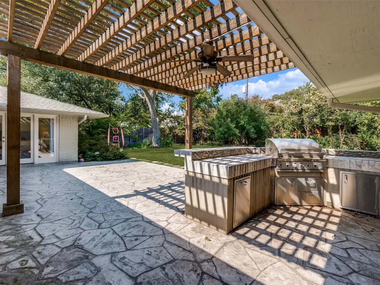 Nestled on a spacious 100' x 169' corner lot, this wonderful one-story home offers plenty of room to play, garden, or even add a pool the possibilities are endless! Inside, youll find three bedrooms, two-and-a-half baths, and two living areas filled with natural light, making it easy for everyone to find their favorite spot to relax. The beautifully updated kitchen opens to a breakfast area and living room overlooking the spacious backyard. Step outside to the backyard oasis, where theres plenty of space for kids, pets, and outdoor fun. The outdoor cooking area makes it easy to grill, entertain, and enjoy time with friends and loved ones. This home truly has it all space, comfort, and a welcoming atmosphere in a fantastic location.