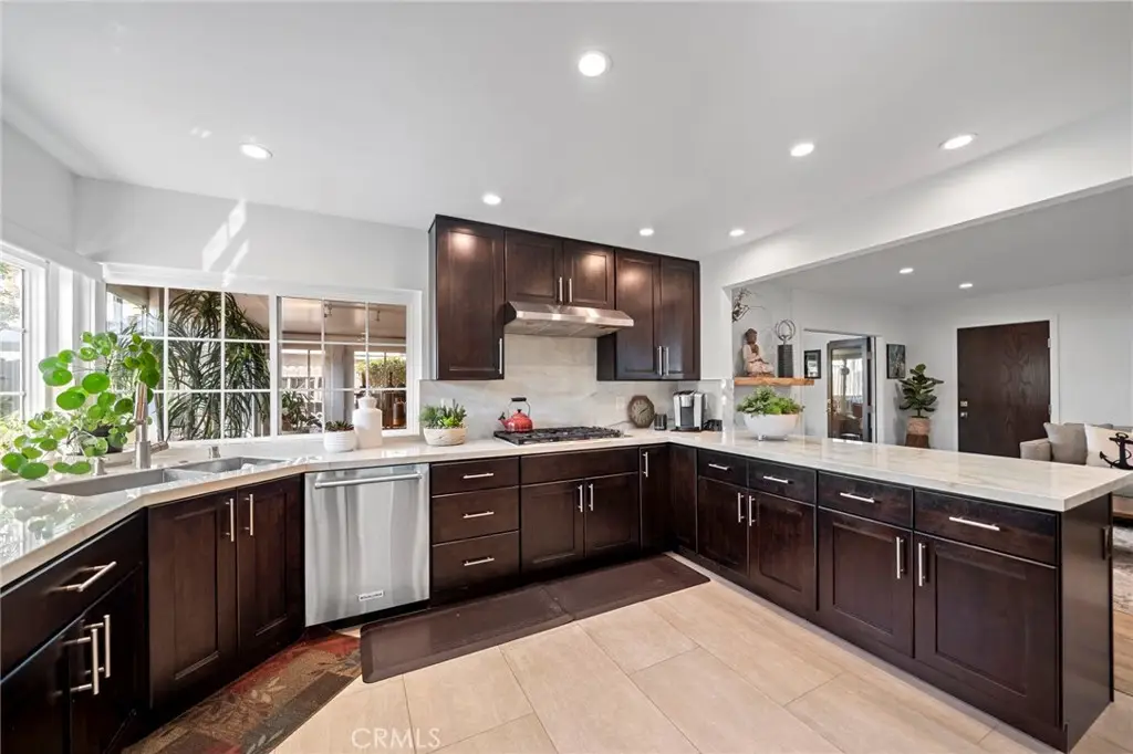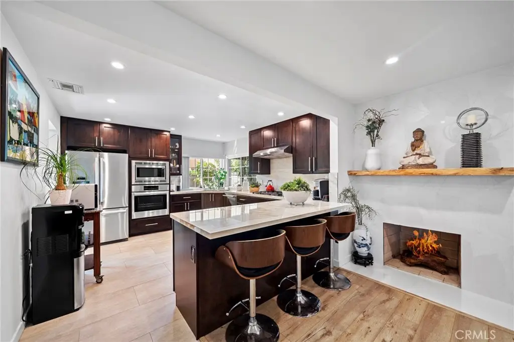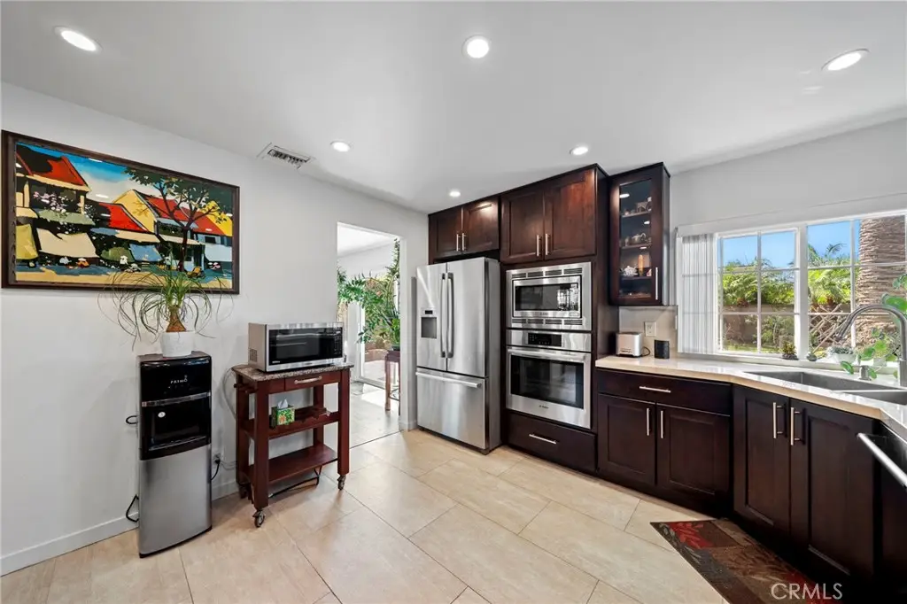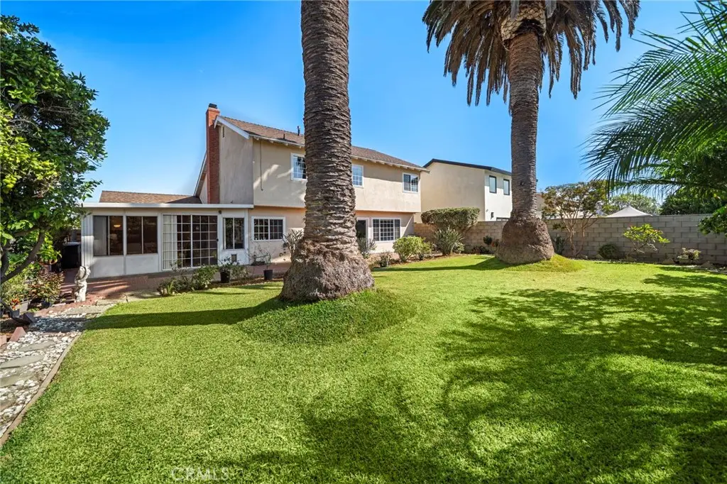 Absolutely stunning and completely remodeled with modern luxury finishes, this show-stopping 4 Bedroom, 3 Bath executive home boasts 2,006 square feet of living space plus a huge 448 square foot enclosed patio for additional living and entertaining, a Brand New Roof and a "finished" 3-car garage with custom storage cabinets; ideally situated on an interior lot in a sought-after neighborhood just steps to award-winning Allan Elementary School and Mile Square Park, it offers central A/C, dual pane French-style windows and sliders, crown molding, extensive recessed lighting, wood laminate flooring, rich dark wood raised-panel interior doors, custom frosted glass closet doors, and dramatic clear-glass staircase railings, while the completely remodeled oversized chef's kitchen is a dream with polished stone countertops and backsplash, breakfast bar, custom dark wood cabinetry with stainless hardware, and stainless appliances including a DCS 5-burner cooktop with vent hood, Bosch oven, built-in microwave, and dishwasher; all 3 bathrooms have been reimagined with modern vanities, designer tile with mosaic inlay surrounds, and frameless glass enclosures, with the primary bath showcasing dual sinks and the downstairs bath a stylish glass vessel sink; the four spacious bedrooms include a primary suite with retreat area and private balcony patio; this exceptional home boasts beautiful curb appeal with manicured landscaping, brick raised planters with flowering gardens, brick-accented driveway and walkway leading to double entry doors with beveled glass, and inside the open flowing floorplan features a formal living room with dining area, spacious family room with fireplace and breakfast nook, all open to the kitchen and the enclosed patio making it perfect for entertaining, while the park-like backyard is an oasis with a huge lawn, brick patio, block wall fencing, stately palms, and lush gardens--all centrally located near shopping, restaurants, top schools, parks, golf, the beach, and with easy freeway access.