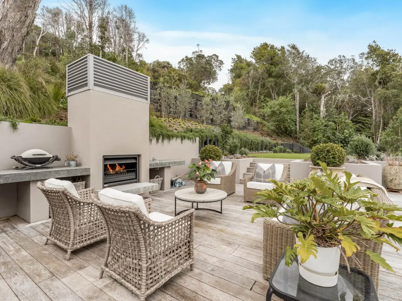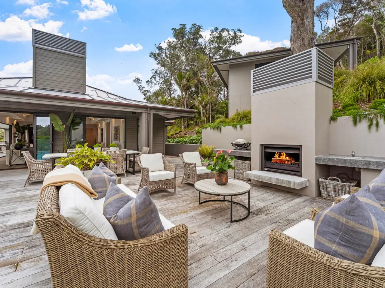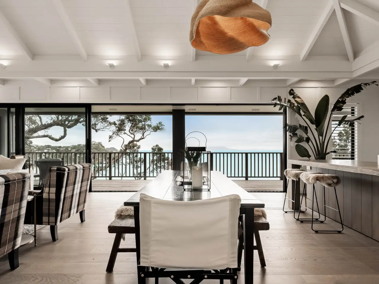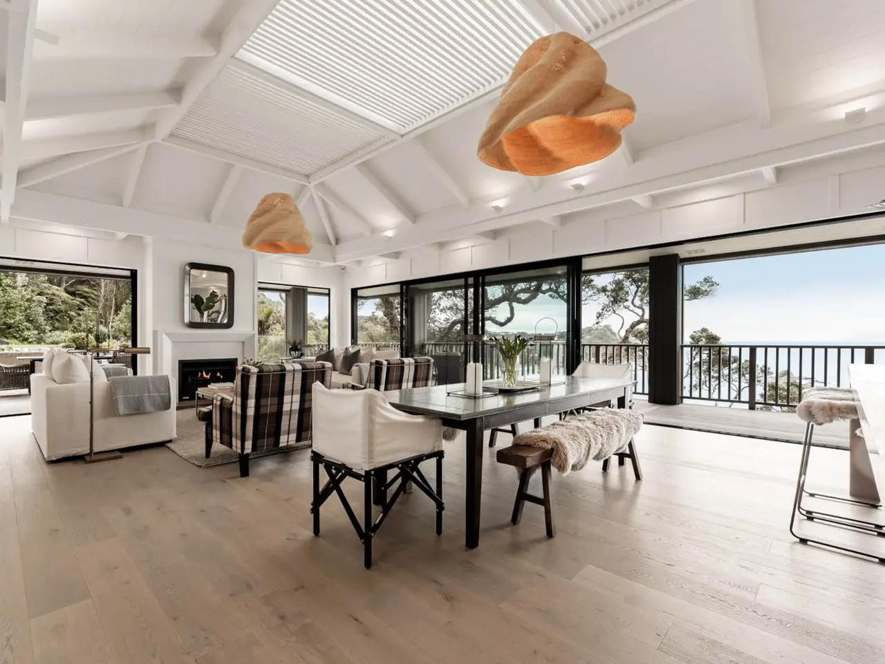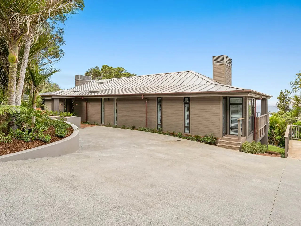 Commanding one of Ti Point’s most dramatic coastal headlands, this contemporary lodge-style home combines natural beauty with refined comfort - a rare sanctuary where everyday life feels like a holiday. Crafted from stone, cedar and glass, the residence sits perfectly within its landscape, surrounded by native bush and framed by panoramic ocean views stretching across Whangateau Harbour to Little Barrier, Great Barrier and the Coromandel beyond. It’s a place where whales and dolphins can often be seen from the terrace - a constant reminder of the extraordinary setting. Set on a large but low-maintenance parcel of land, the home is enveloped by covenanted native bush that ensures total privacy while remaining self-managing. The design brings the outdoors in, with wide terraces, generous glazing and open-plan living that invites light, sea air and the rhythm of the coastline into every room. Inside, the aesthetic is relaxed yet elegant - a sophisticated blend of lodge warmth and coastal calm. The main living area connects seamlessly with the outdoors, while a second lounge provides a quiet retreat for television or reading. There are four bedrooms in the main house, each designed for comfort and positioned to capture the view. A separate bunk room and detached studio provide ideal accommodation for guests, teenagers or staff. Practicality matches beauty, with ample garaging and on-site parking, all discreetly integrated into the landscape. A private cable car glides through the native bush to the water’s edge below, offering effortless access for swimming, kayaking or launching a small boat. Just minutes from Matakana Village and Omaha Beach, and around an hour from Auckland, this is coastal living at its most elevated - contemporary, calm and connected to nature. A home that feels luxurious yet entirely effortless. A true Coastal Icon. This is a Sole Agency listing by James Doole and Kellie Bissett. Contact us to view today.