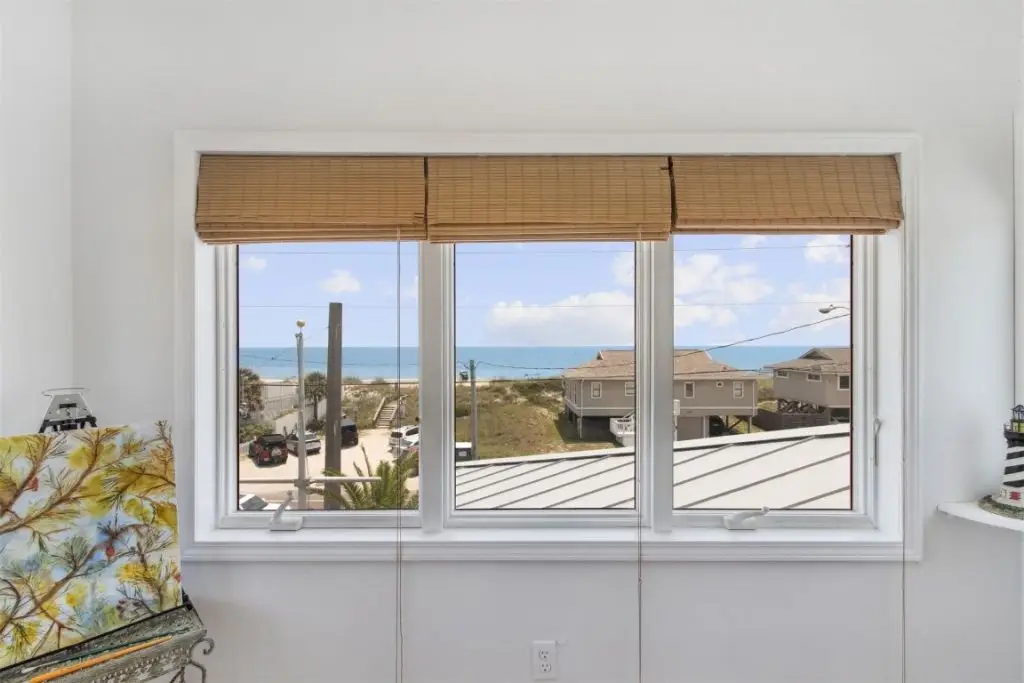 STEPS TO THE BEACH AND SPECTACULAR OCEAN VIEWS from this ULTIMATE ISLAND GETAWAY. This is the Beach House you have been waiting for!! Closer to the ocean than many oceanfront homes, this custom-built home has upgraded features such as concrete block ground floor construction, metal roof, and Anderson windows. 3 bedrooms and 3 full bathrooms (so there is no need to share bathrooms). On the first level is a bedroom and full bathroom suite. On the main level you have a large living room with spectacular views of the ocean. Large kitchen with dining area and a wall of windows, Silestone countertops and Kraft Maid Oak cabinets. Main level spacious master suite with soaking tub and separate shower. Plus, another large bedroom and bathroom on the main level. French doors lead to a screened front patio to enjoy ocean breezes. Spiral stairs take you up to the Captains Watch where the views are even more impressive. It is a great space for whatever you decide: art studio, relaxation area, yoga studio. Low maintenance luxury bamboo flooring extends throughout the house. Ample closet space in the home. Huge garage over 1000 sq. ft., large enough for 3 cars plus extra workshop areas. Low maintenance landscaping with 3 specimen Canary Date Palms; enclosed private outdoor shower. Fenced yard with koi pond and gated parking area. Freshly painted inside and out. Newer metal roof. This central island location cannot be beat... Egan's Creek Greenway with its miles of walking/biking trails is only 2 blocks away. Walk or bike to several beachside restaurants. Minutes to historic downtown Fernandina Beach with dining, arts, shopping, and festivals. Come and claim your beachside treasure on Amelia Island.