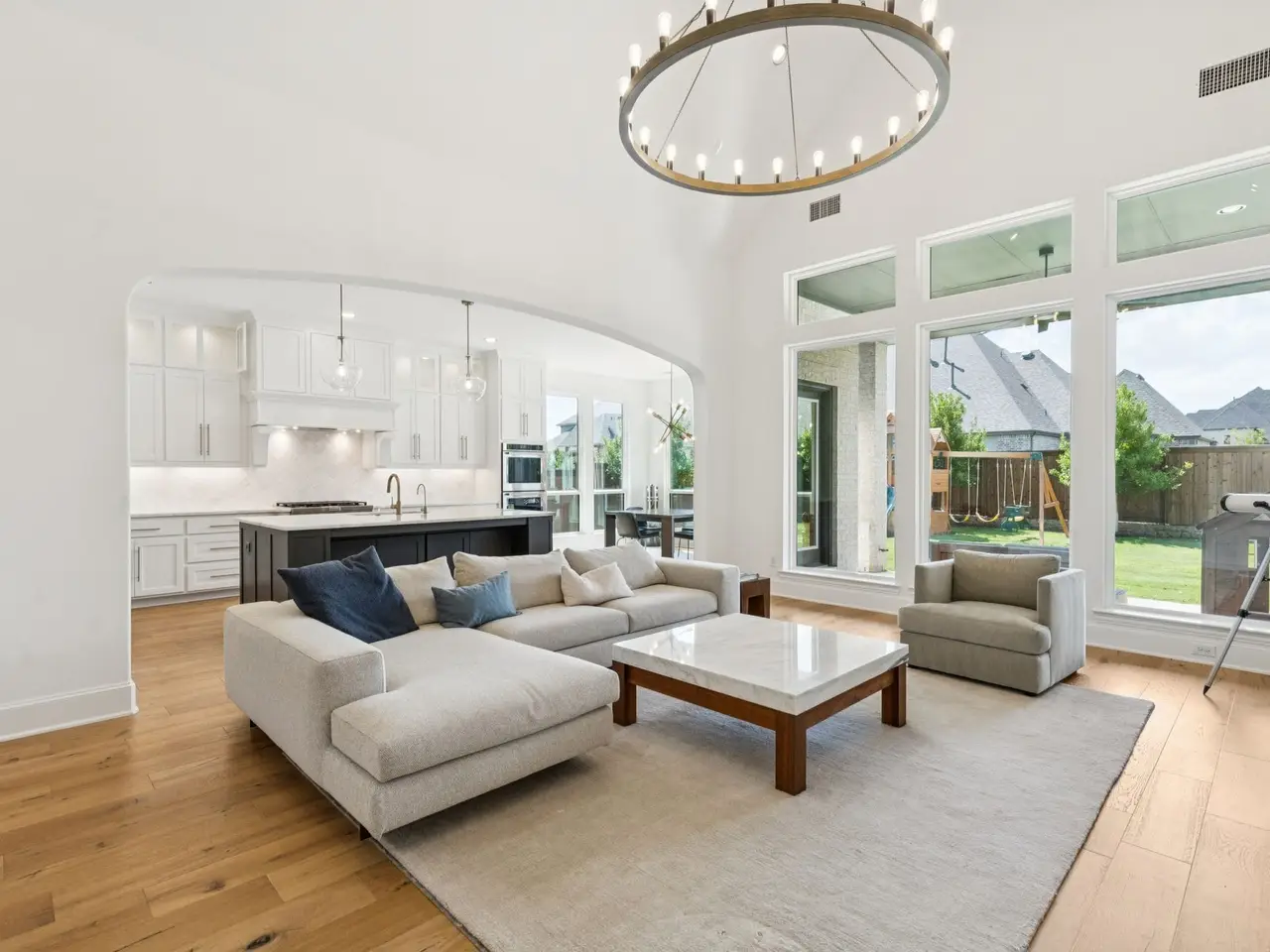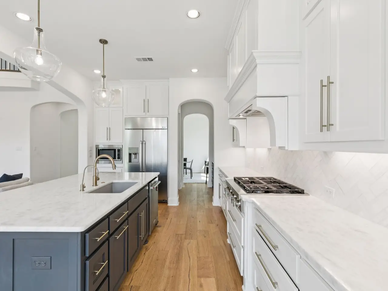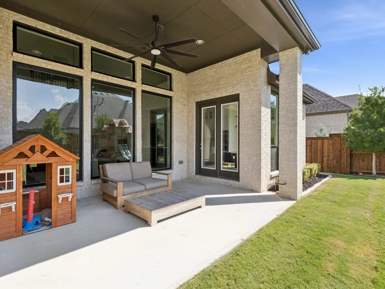 Gorgeous home in Windsong Ranch! From the moment you enter through the iron front door, youre greeted by a striking wood-and-iron staircase and hardwood floors. Complete with a whole home generator, the main level offers a private study with French doors, an elegant dining room with a butlers pantry, and a chef-inspired kitchen with white cabinetry, marble countertops, glass-front upper cabinets with lighting, 6-burner gas cooktop, double ovens, built-in refrigerator, and walk-in pantry. The living area boasts vaulted ceilings and designer lighting, creating an inviting space for entertaining. The main level also has a guest suite, primary bedroom with his and hers closets and a beautiful bath. Upstairs youll find a spacious game room, separate media room with barn doors, and three generously sized bedrooms each with their own ensuite bath. Enjoy the large backyard with covered patio, a 4-car garage, and countless upgrades throughout. Taxes for ISD are paid to Denton.