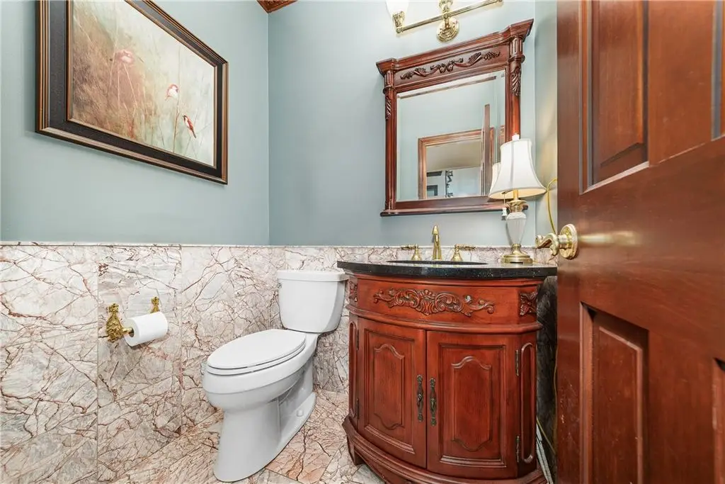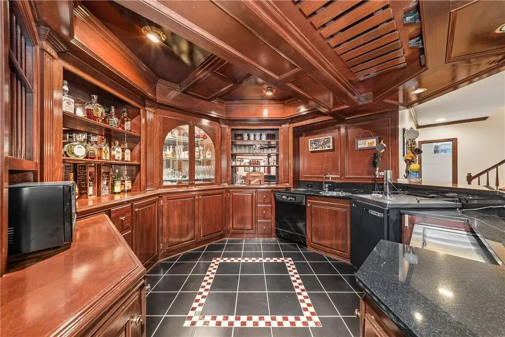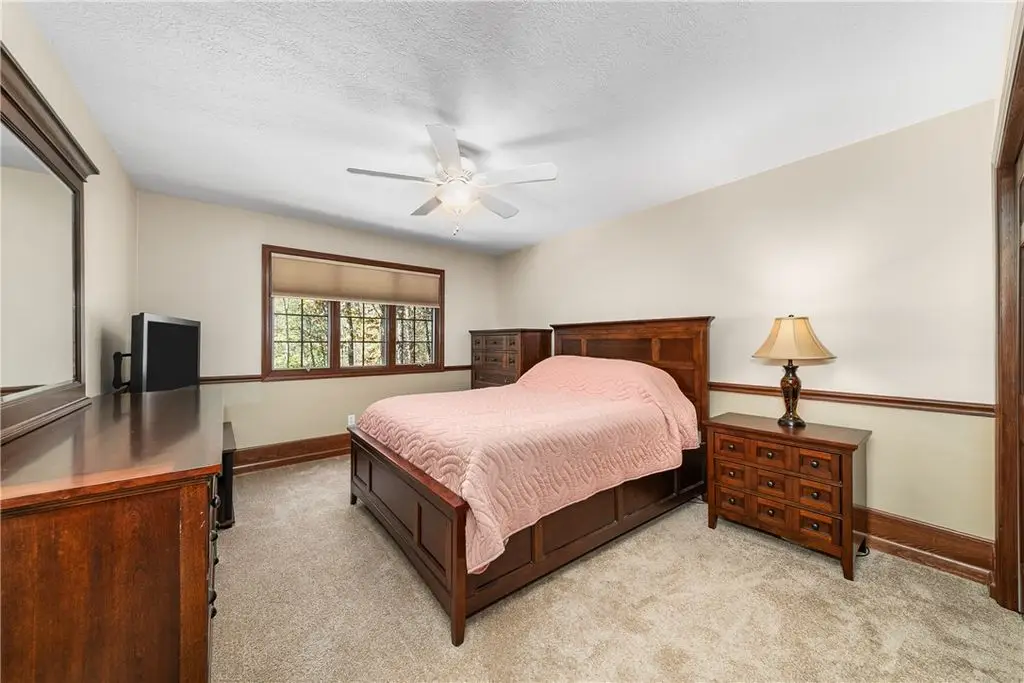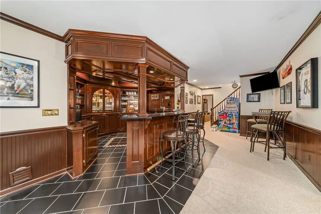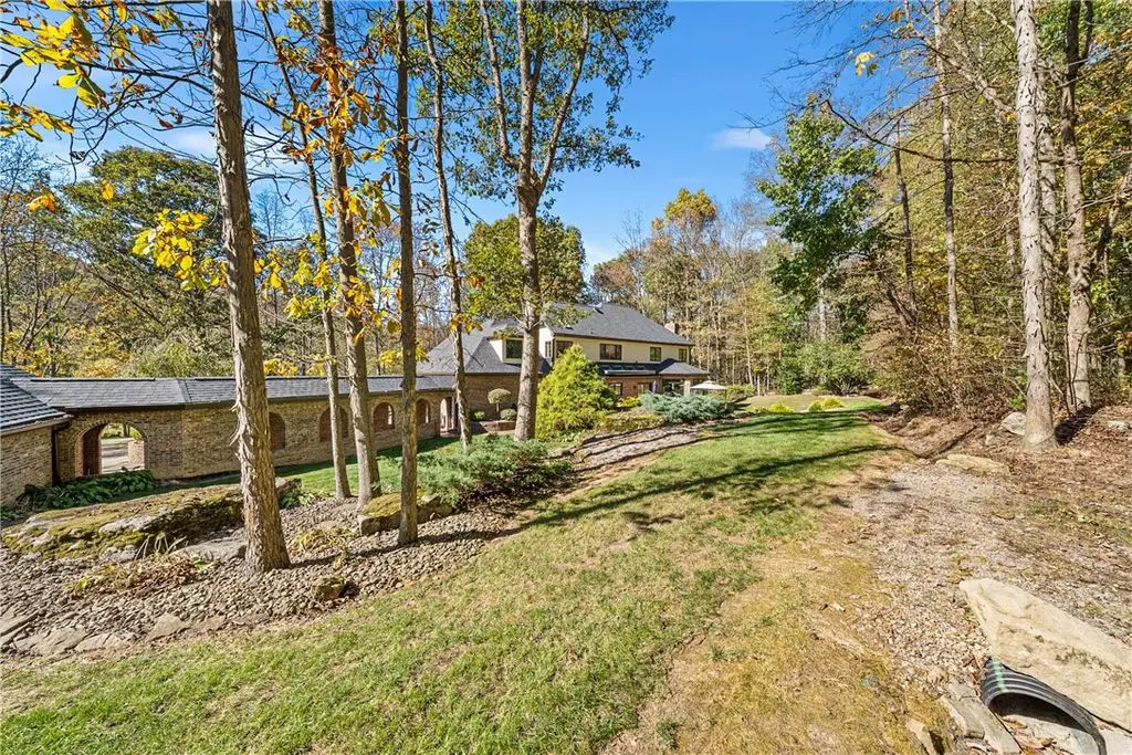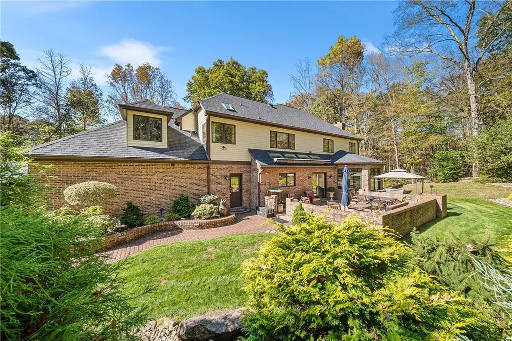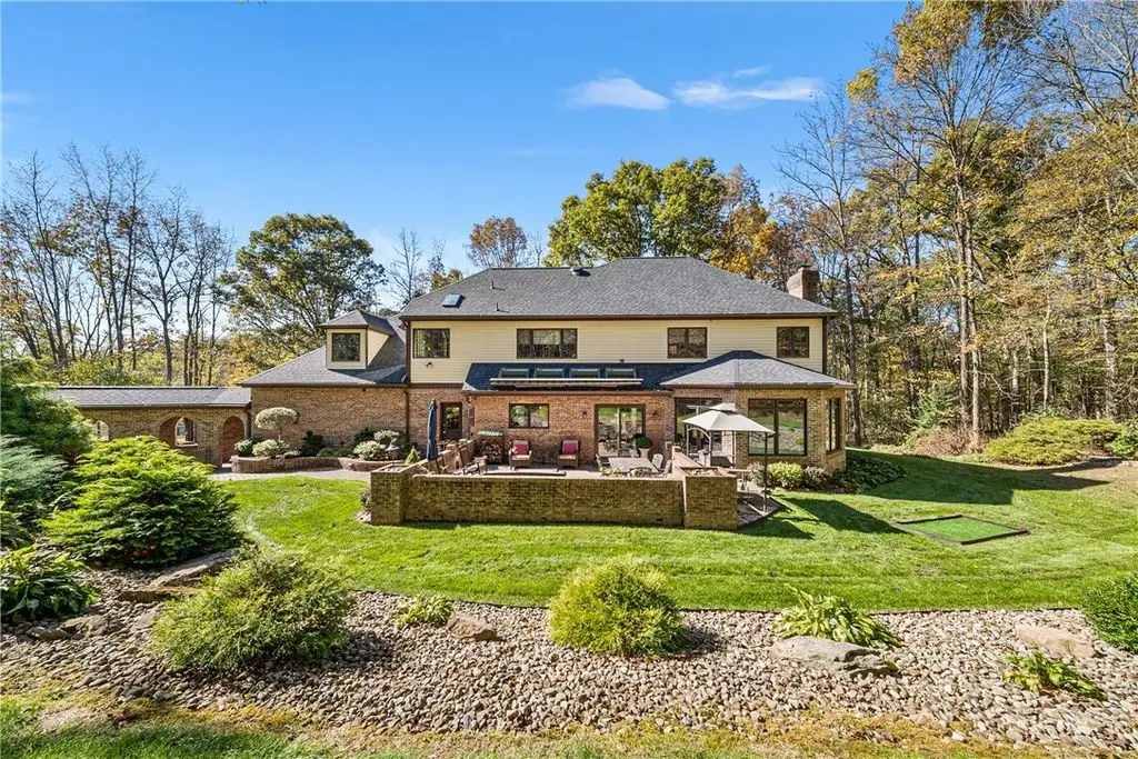 Perfectly situated on 3.6 secluded acres, 340 Fassinger Road is perched on the hill like a fortress. This all-brick estate offers 5 bedrooms, including two primary suites - one on the main level and another upstairs - plus 4 full and 2 half baths. The home's high-end kitchen features custom cabinetry, premium appliances, and seamlessly flows into the massive living and entertaining space. Other perks include a finished lower level with a full bar (and kegerator!), wine cellar, and a dog-washing station. Outside, the serenity continues: a sprawling yard bordered by mature trees creates a natural retreat, complete with a backyard patio with motorized retractable awning ideal relaxation or gatherings. Sportmens or Car Enthusiasts will love the two-story garage with ample storage and workspace. This fortress has a new roof and was designed for comfort, function, and quiet luxury - total privacy, modern upgrades, and timeless strength is just minutes from Cranberry's conveniences.
