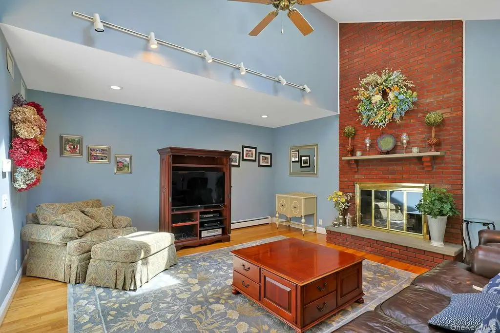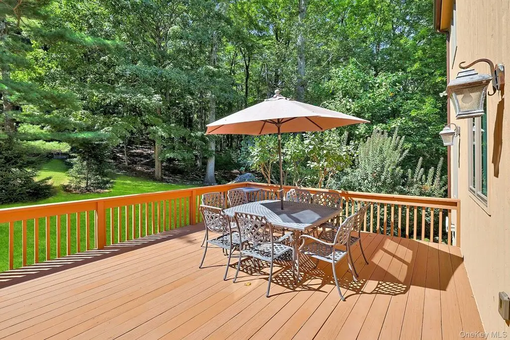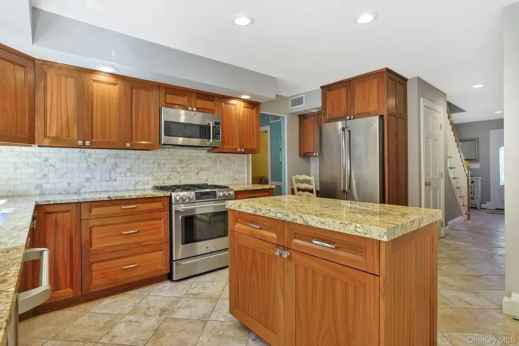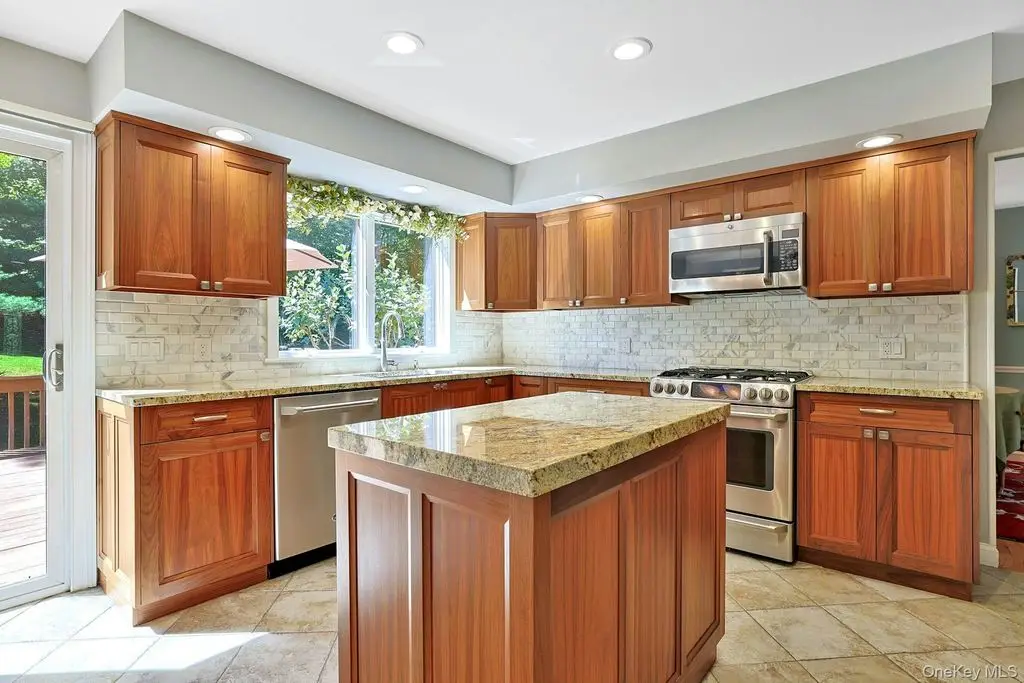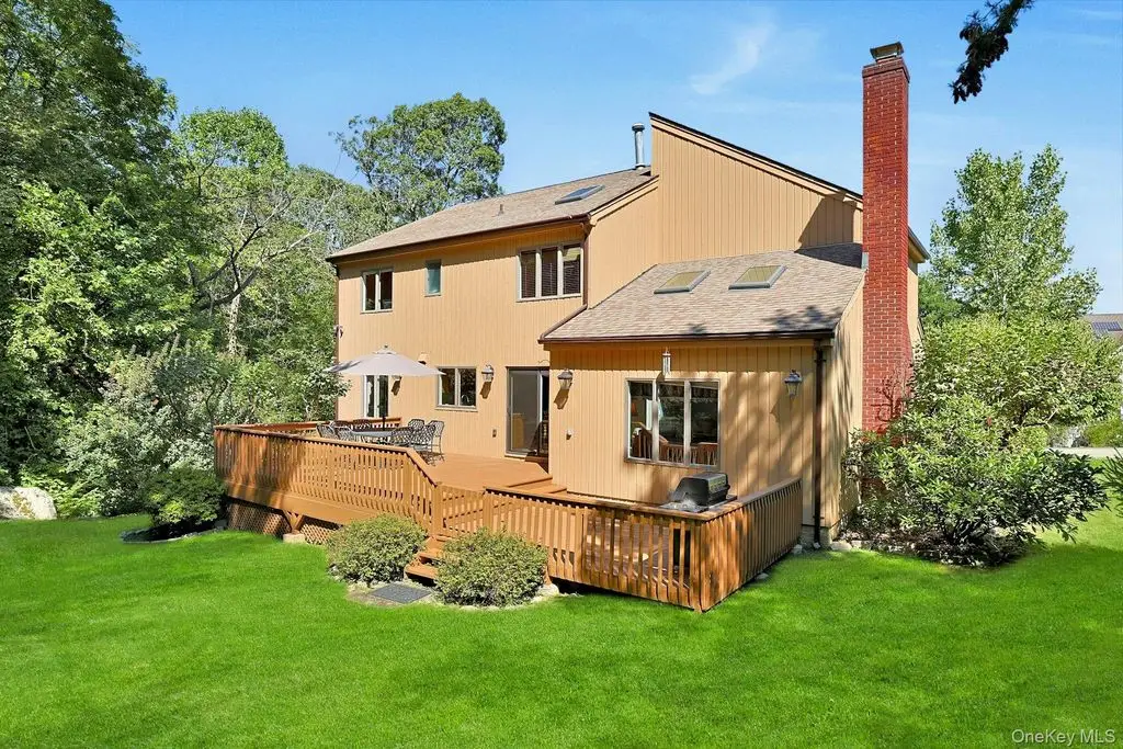 AO, contracts out. 9/15. This custom-built Contemporary Colonial offers the best of modern luxury, elegant amenities with attention to detail all in this private park like setting at the end of a cul-de sac. This lovely home is impeccably maintained and shows pride of ownership with an expansive yet intimate environment for comfortable family living, and great flow for entertaining. As you enter you will notice tiled entry hall, gleaming hardwood flooring, powder room, updated kitchen (2016) with custom built walnut cabinets, stainless steel appliances, granite counters, and large pantry. Additionally, there is an eat-in area with sliders to a 2-tier deck-great for family gatherings. Inviting family room offers soaring cathedral ceilings, 2 skylights with a focus on the gas fireplace and brick facade floor to ceiling. Enjoy holidays in the spacious formal dining room and well portioned living room with a large picture window. On the second level you will find a primary bedroom with high ceilings, 3 closets, and jacuzzi bath, separate shower, cathedral ceilings and skylight. There are 3 additional bedrooms, (one bedroom used as an office with built in desk), and hall bath. The basement offers recreation room, utilities, and washer/dryer, and a door out to yard. There are many upgrades including AC compressors, and 1 air handler-2 years old, kitchen (2016), hot water tank, roof and skylights 2013, hall bath and primary bath-2008, 1/2 bath-2016, windows in primary bedroom, and slider in eat-in area. Peaceful setting, but yet close to train, bus, major highways, restaurants, Jacob burns film center, bike trails and adjacent to Graham Hills Park. A must see!