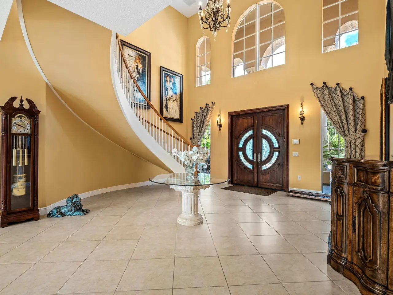 On more than an acre of meticulously maintained landscaping, the paver driveway leads to the impressive front entrance creating a welcoming first impression. Inviting outdoor living, the loggia and summer kitchen overlook the expansive patio centered on a sparkling resurfaced saltwater pool with an overflow spa.Discover this exceptional five-bedroom, 7,621+/- square-foot masterpiece in Pine Tree Estates, Parkland, perfect for luxury living, privacy and hosting. A tribute to elegance, the dramatic two-story foyer, with a gracefully curving staircase, introduces the grand two-story living room, with a fireplace and bank of sliding glass doors adorned with arched windows, revealing pool and garden views. Enjoy special gatherings in the formal dining room or opt for casual comfort in the