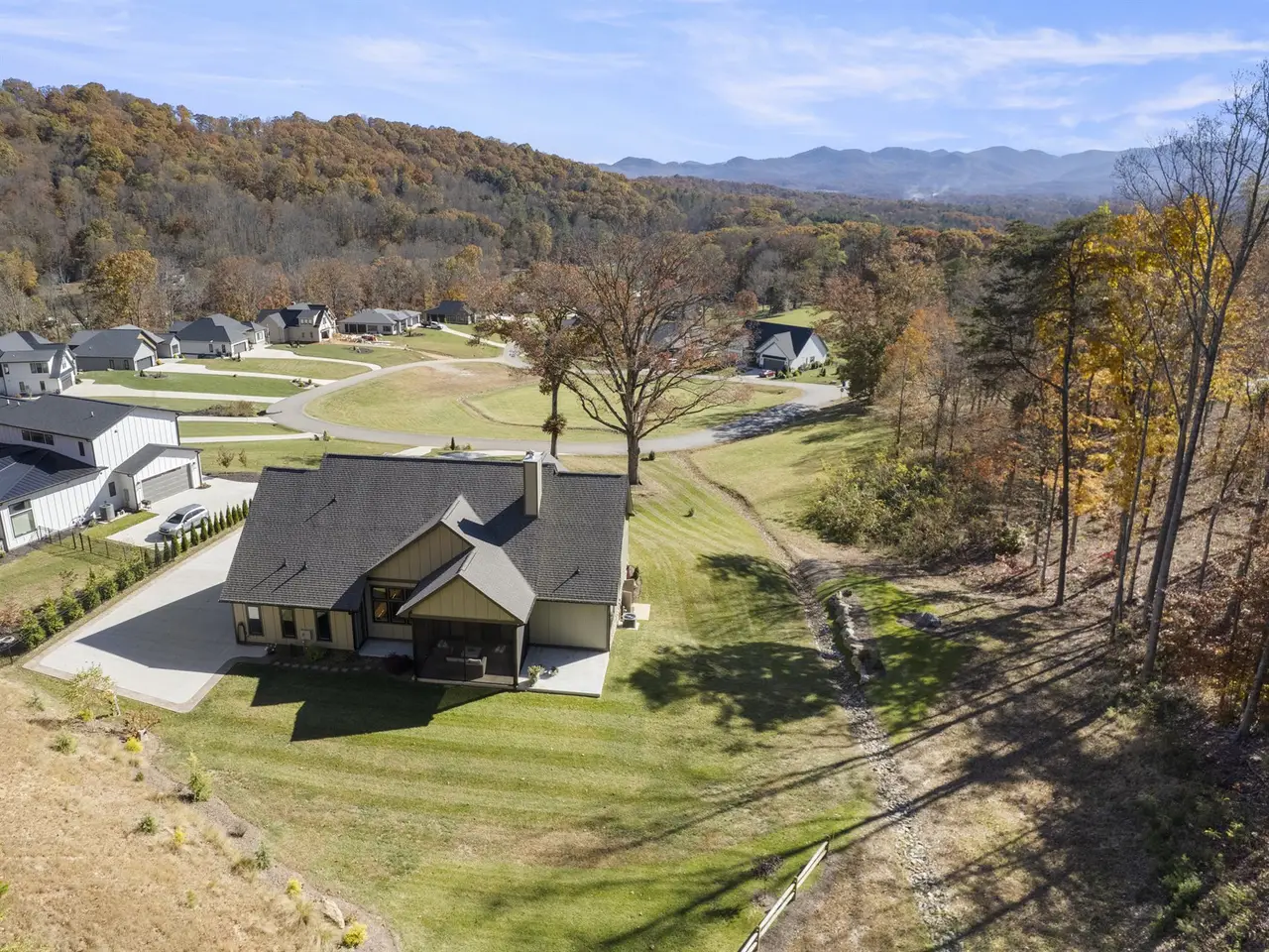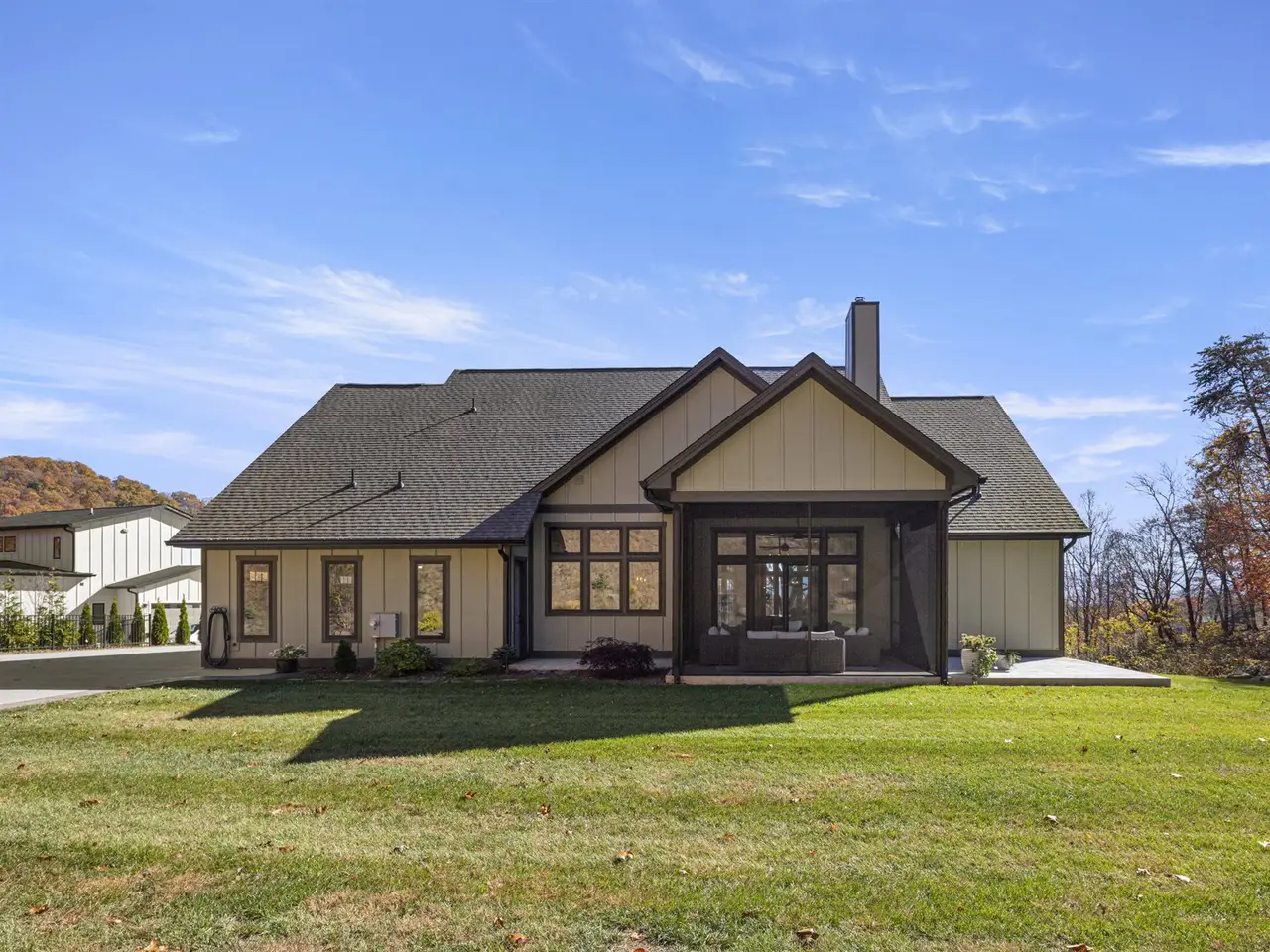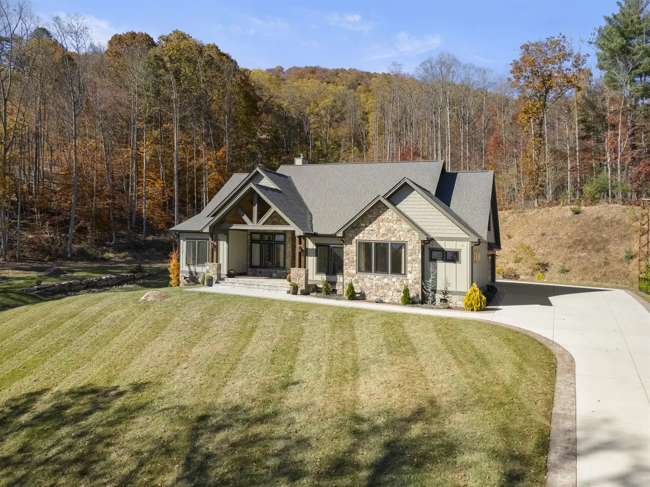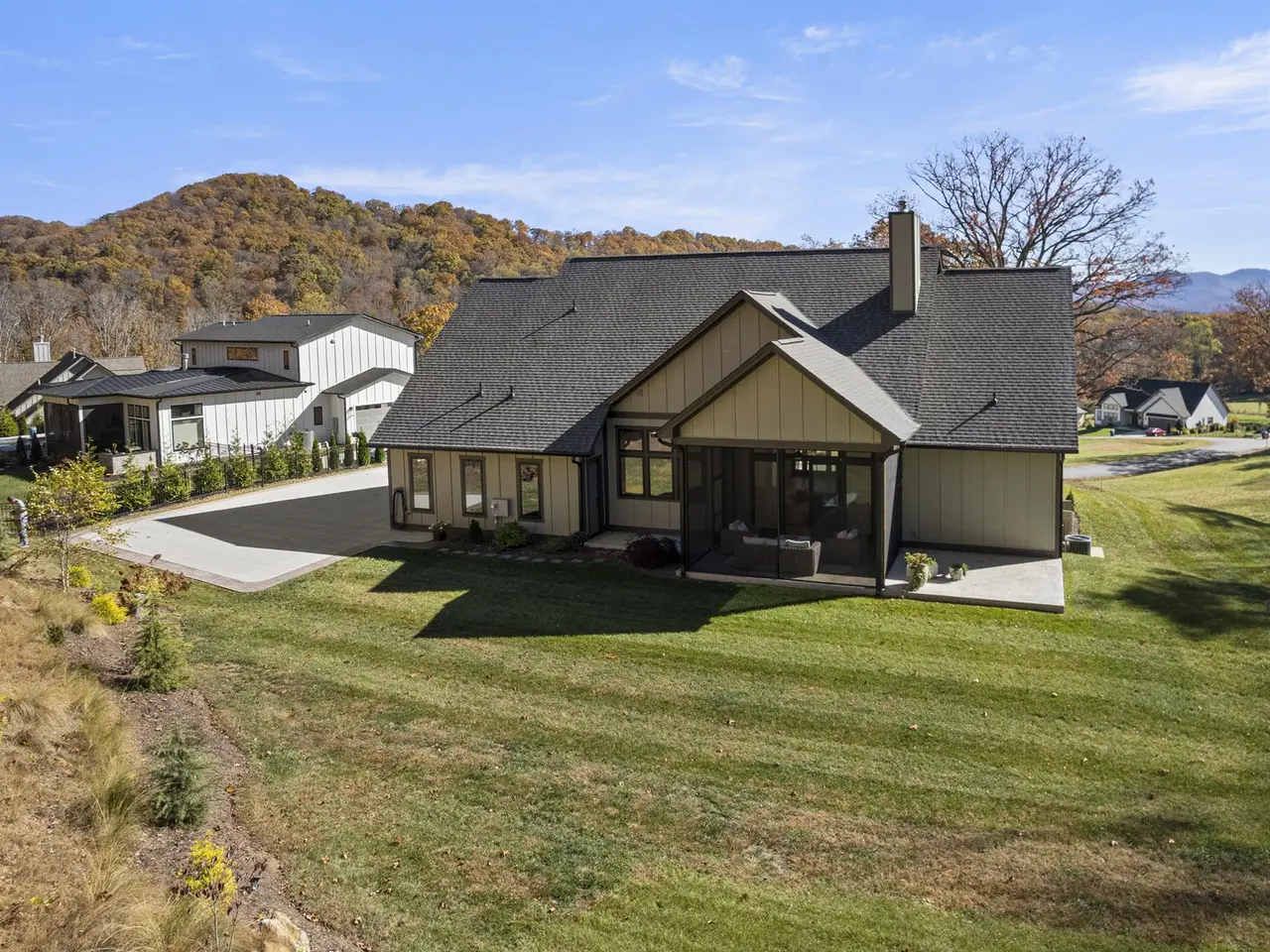 Welcome to Candler's newest premier gated community, featuring large mountain views and rolling hills. This stunning, modern 3,100+ sq ft home offers the perfect blend of luxury, comfort, and functionality. Includes 2,616 sq. ft. of main level living space, plus an additional non-continuous 540 sq. ft. ensuite guest bedroom above the garage, complete with a full bath and coffee bar (with beverage frig), which is perfect for guests, family or a private studio. When you step inside the front door, you'll find 12-ft ceilings, abundant natural light and an open-concept living area, including a soaring floor-to-ceiling Green Start Apex wood-burning fireplace with push-button start and adjustable digital controls, capable of efficiently heating the main living space and beyond. The gourmet kitchen is a chef'sdream, featuring a walk-in pantry with an undercounter beverage refrigerator, an oversized island with Taj Mahal Quartz countertops and additional custom touches throughout. The primary suite is a serene retreat offering stunning mountain views, a spa-inspired bath with a large soaking tub, walk-in shower and a spacious custom walk-in closet. Additional highlights include: Heated floors in the main level bathrooms and laundry room, custom built-in cabinetry in the office, central vacuum system and three-zone HVAC for year-round comfort, large walk-in closets with custom built-ins, screened-in back porch overlooking a large private backyard and a 662 sq. ft. basement/crawlspace which includes space for a workshop, storage area, or wine cellar. Enjoy the tranquility and breathtaking views of the Blue Ridge Mountains from this meticulously crafted home that perfectly blends modern style, technology, and mountain living.