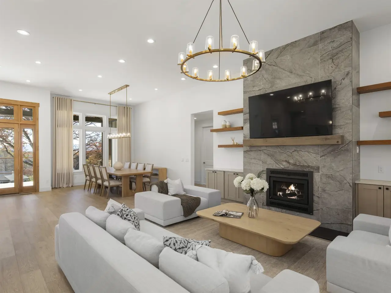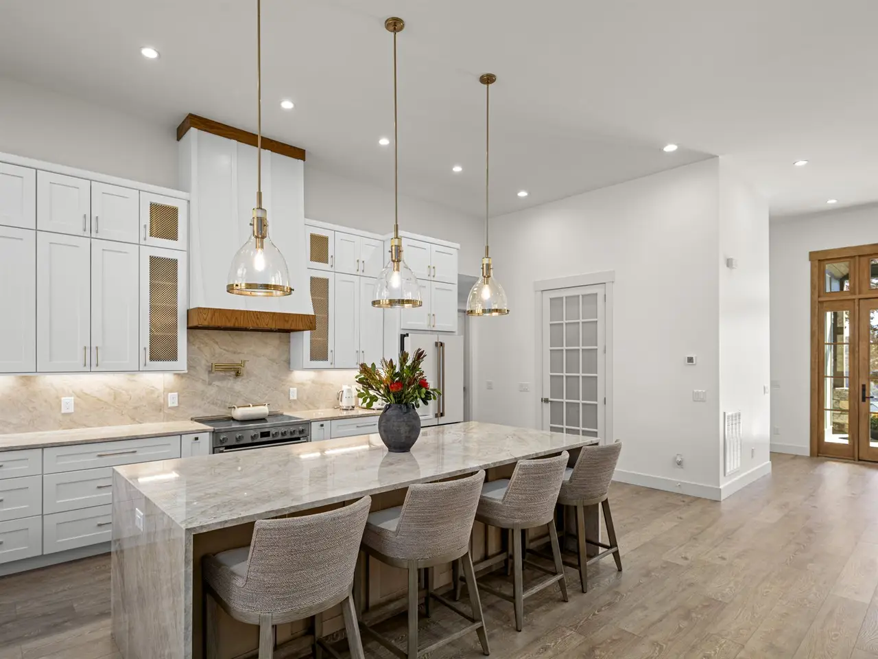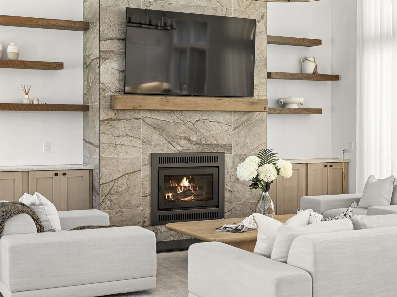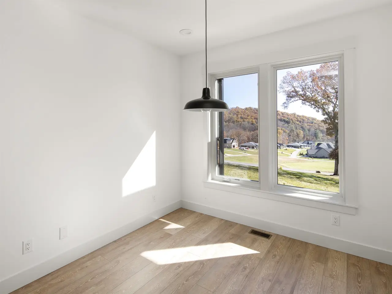 Welcome to Candler's newest premier gated community, featuring large mountain views and rolling hills. This stunning, modern 3,100+ sq ft home offers the perfect blend of luxury, comfort, and functionality. Includes 2,616 sq. ft. of main level living space, plus an additional non-continuous 540 sq. ft. ensuite guest bedroom above the garage, complete with a full bath and coffee bar (with beverage frig), which is perfect for guests, family or a private studio. When you step inside the front door, you'll find 12-ft ceilings, abundant natural light and an open-concept living area, including a soaring floor-to-ceiling Green Start Apex wood-burning fireplace with push-button start and adjustable digital controls, capable of efficiently heating the main living space and beyond. The gourmet kitchen is a chef'sdream, featuring a walk-in pantry with an undercounter beverage refrigerator, an oversized island with Taj Mahal Quartz countertops and additional custom touches throughout. The primary suite is a serene retreat offering stunning mountain views, a spa-inspired bath with a large soaking tub, walk-in shower and a spacious custom walk-in closet. Additional highlights include: Heated floors in the main level bathrooms and laundry room, custom built-in cabinetry in the office, central vacuum system and three-zone HVAC for year-round comfort, large walk-in closets with custom built-ins, screened-in back porch overlooking a large private backyard and a 662 sq. ft. basement/crawlspace which includes space for a workshop, storage area, or wine cellar. Enjoy the tranquility and breathtaking views of the Blue Ridge Mountains from this meticulously crafted home that perfectly blends modern style, technology, and mountain living.