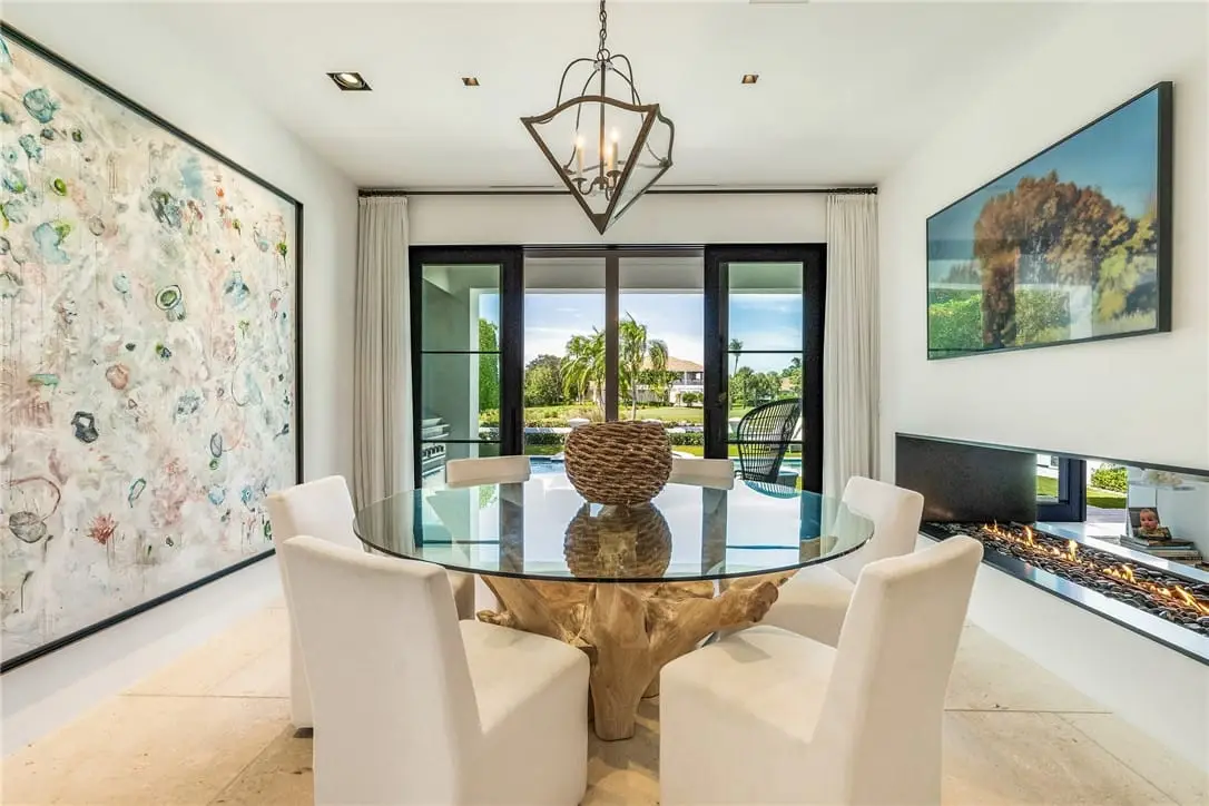 Stunning Orchid Island home with beautiful golf view of the 14th fairway. Remodeled updates include impact glass, Imported Turkish limestone floors throughout, oak interior doors and an open kitchen with top-tier appliances and Quartzite counters. A beautiful cathedral wood ceiling accents the light and airy living room and a modern gas fireplace opens to the living and dining rooms. The spacious primary suite offers golf views. An expansive electric-heated pool with new spa, built-in grill adjoins a shaded patio and gas firepit perfect for entertaining and relaxing at home. Sizes approximate/subject to error.