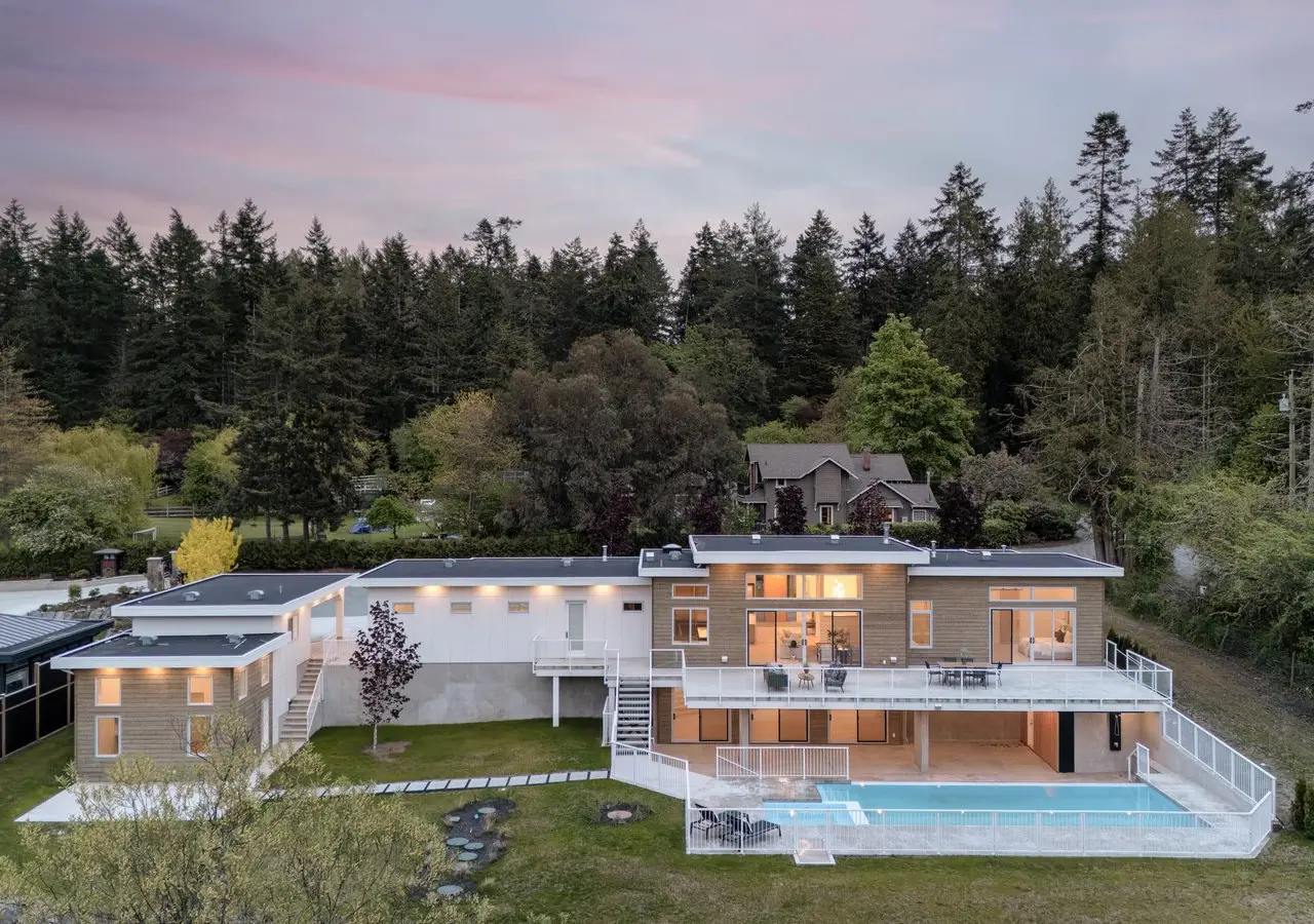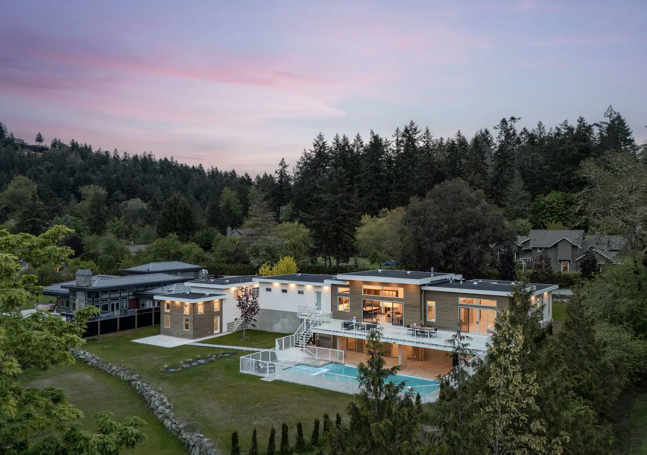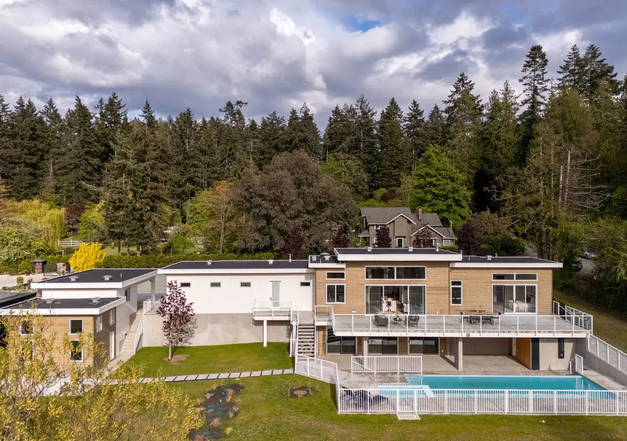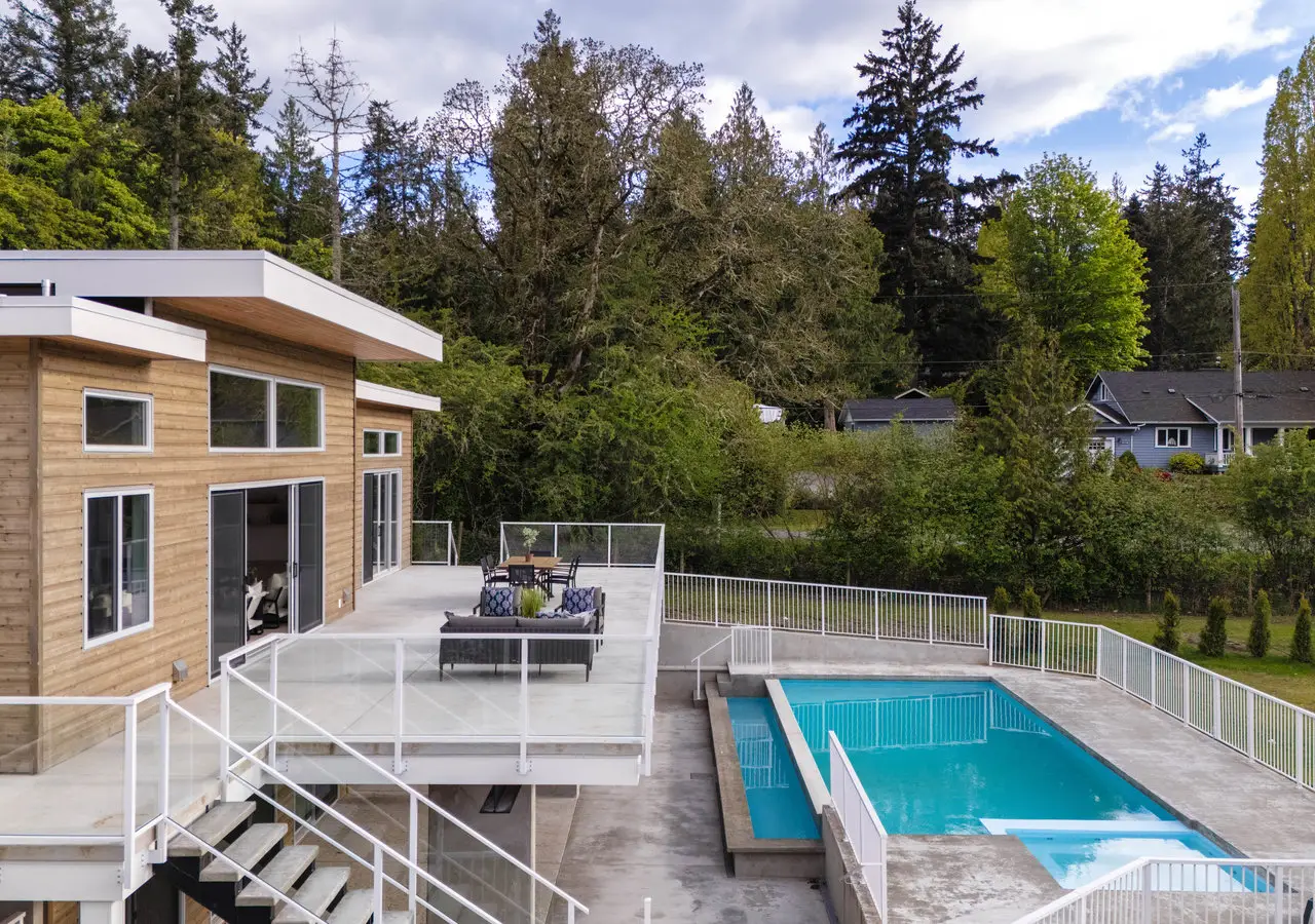 Designed for entertaining, inside and out, this 5,377 square foot estate offers a luxurious look with a laidback feel. Custom built in 2023, the property features a four-bed, six-bath, 4,500-square foot main house as well as a two-Bed, one-Bath carriage house, ideal for multi-generational living. Ten-foot ceilings, picture windows, and an open floor plan play into the home’s Palm Springs design, perfectly blending mid-century modernism with effortless indoor-outdoor living. An open-concept kitchen and living area, marked by light wood tones and custom cabinetry, offer an aesthetic that’s as impressive as it is functional. Enjoy a gas range, double ovens, and a full pantry, along with a bar area and beverage fridge. Pano-inspired patio doors connect the outdoors, offering another 2,500 square feet of entertaining space as well as a saltwater, infinity-edge pool. Located in beautiful Deep Cove, the home is just a five-minute stroll from the local schools, parks, and market.