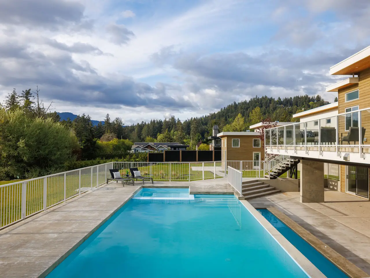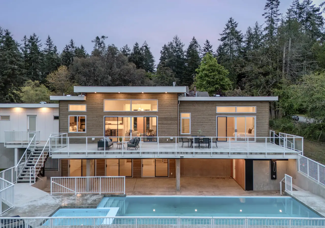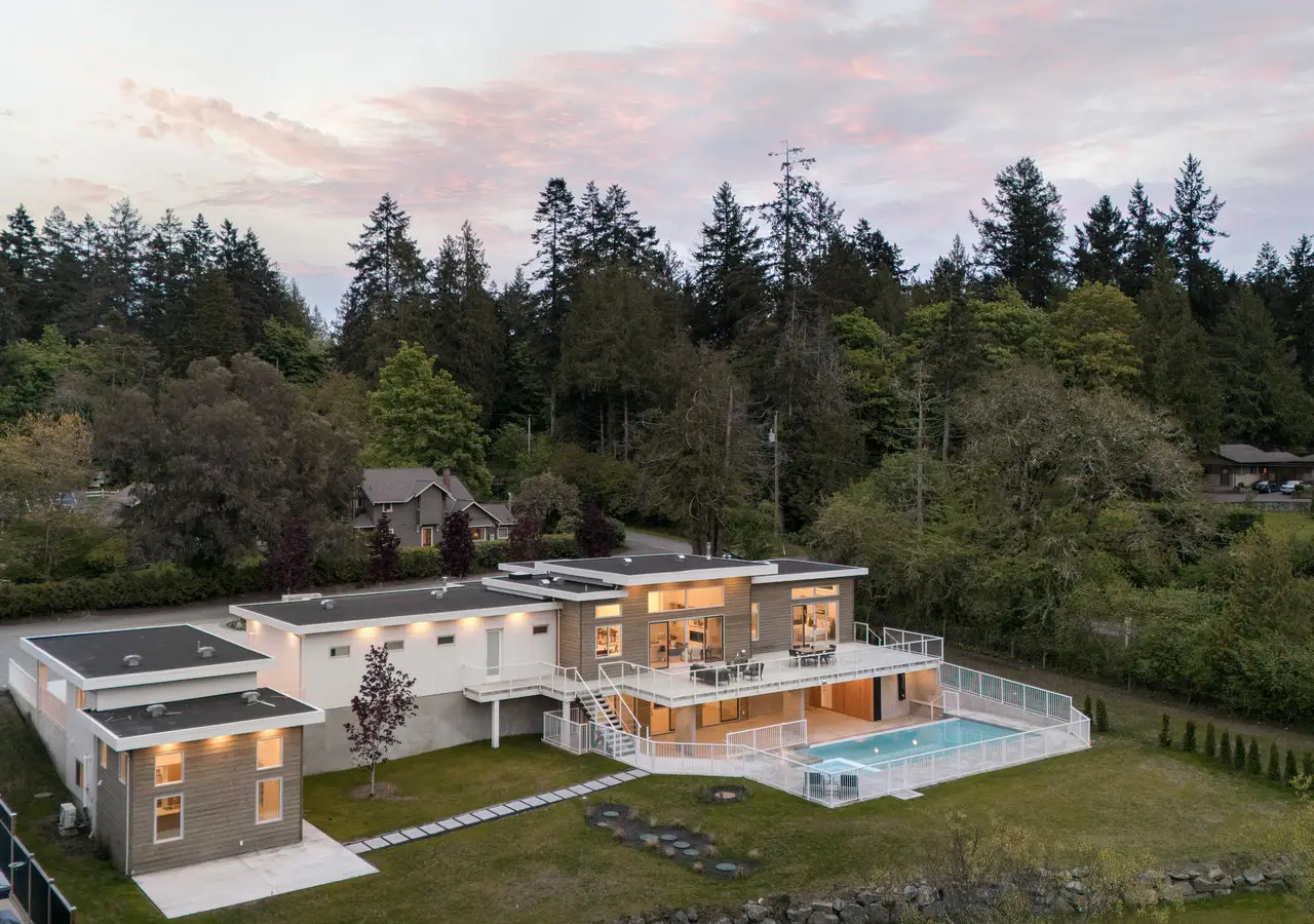 Designed for entertaining, inside and out, this 5,377 square foot estate offers a luxurious look with a laidback feel. Custom built in 2023, the property features a four-bed, six-bath, 4,500-square foot main house as well as a two-Bed, one-Bath carriage house, ideal for multi-generational living. Ten-foot ceilings, picture windows, and an open floor plan play into the home’s Palm Springs design, perfectly blending mid-century modernism with effortless indoor-outdoor living. An open-concept kitchen and living area, marked by light wood tones and custom cabinetry, offer an aesthetic that’s as impressive as it is functional. Enjoy a gas range, double ovens, and a full pantry, along with a bar area and beverage fridge. Pano-inspired patio doors connect the outdoors, offering another 2,500 square feet of entertaining space as well as a saltwater, infinity-edge pool. Located in beautiful Deep Cove, the home is just a five-minute stroll from the local schools, parks, and market.