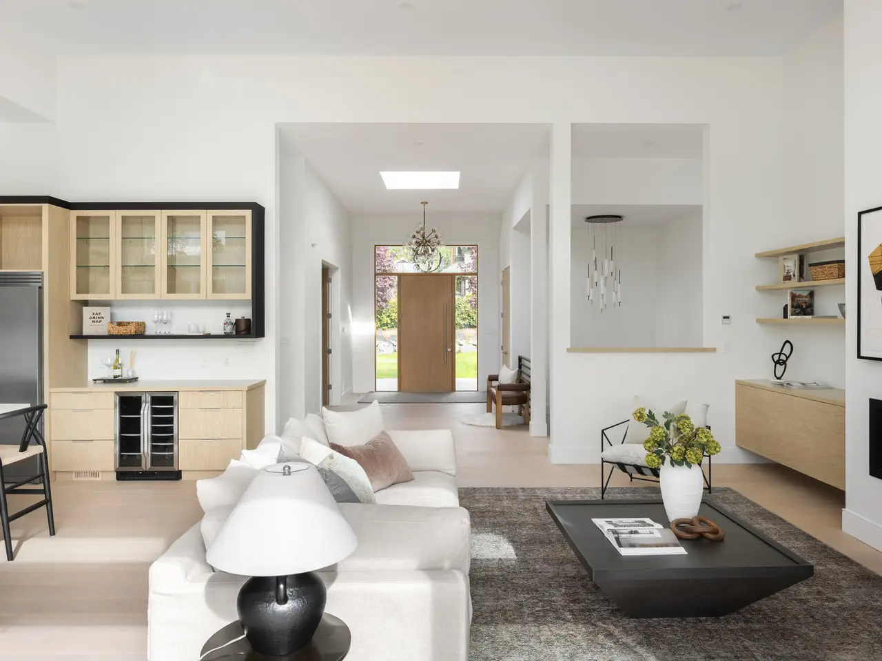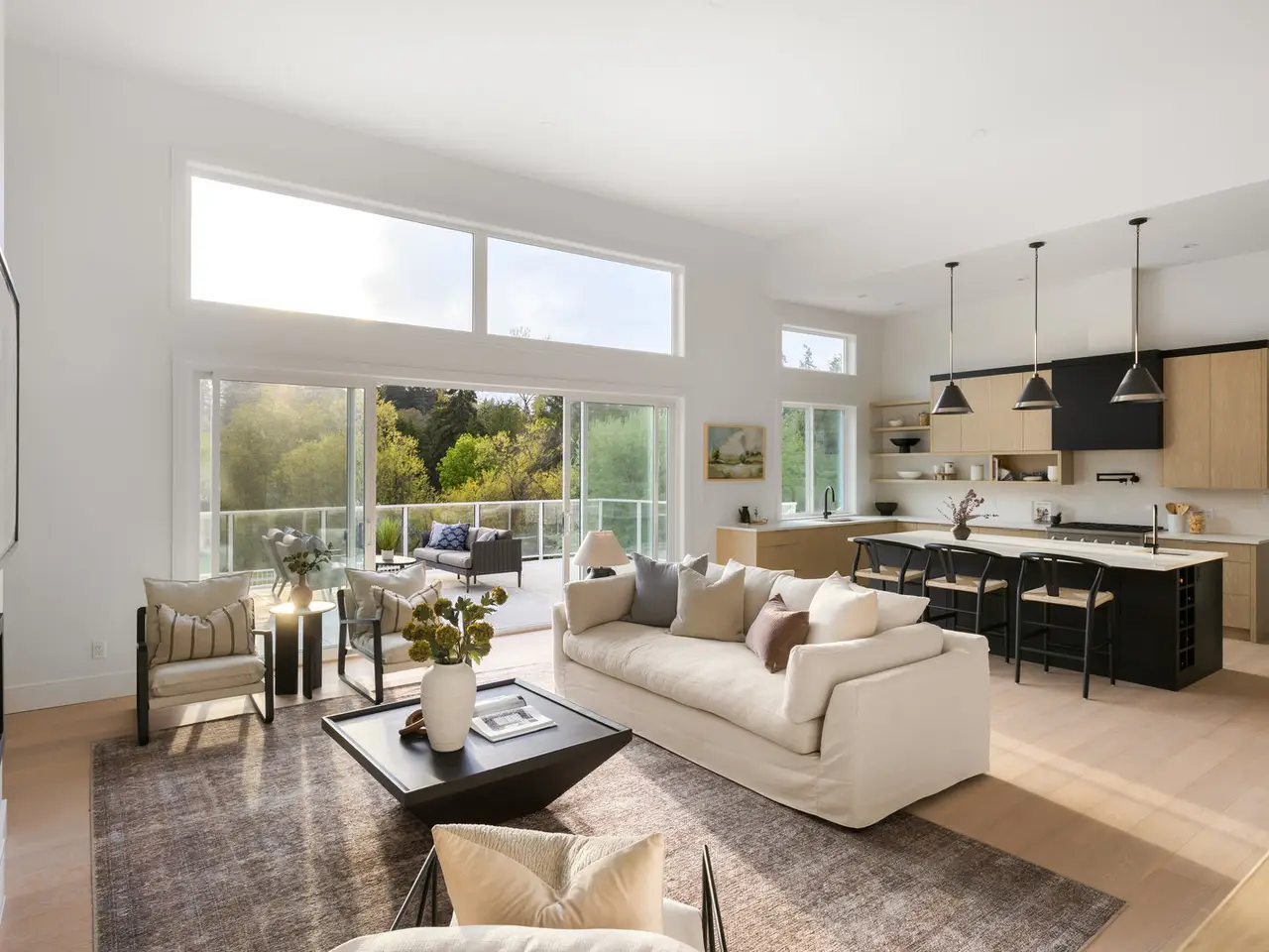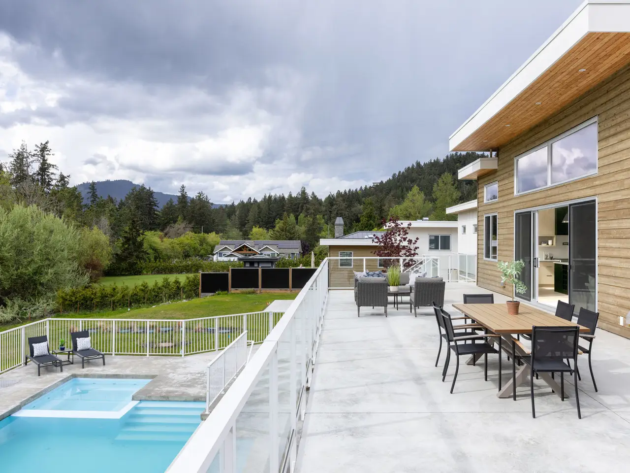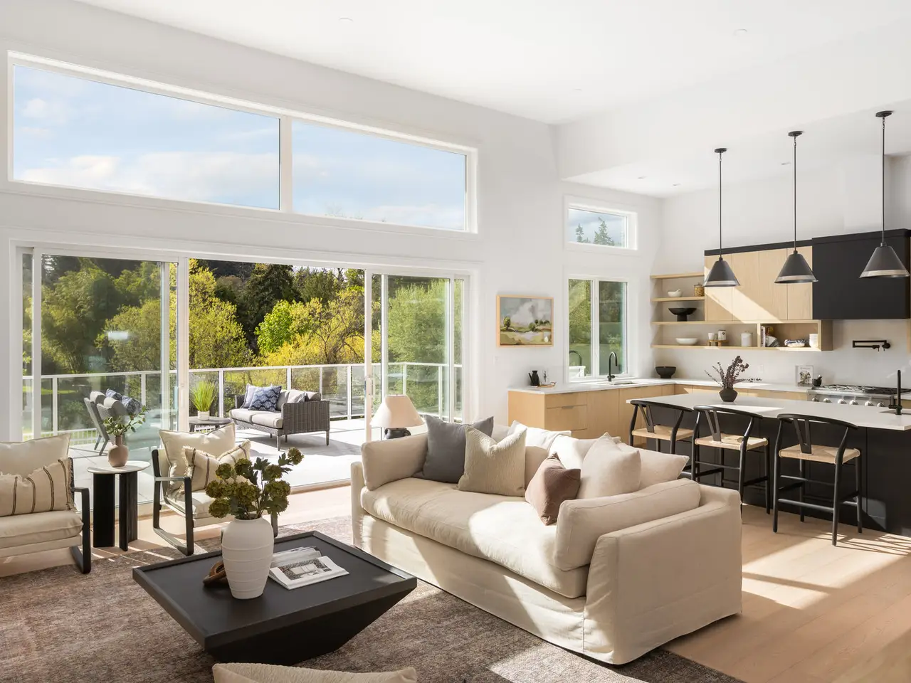 Designed for entertaining, inside and out, this 5,377 square foot estate offers a luxurious look with a laidback feel. Custom built in 2023, the property features a four-bed, six-bath, 4,500-square foot main house as well as a two-Bed, one-Bath carriage house, ideal for multi-generational living. Ten-foot ceilings, picture windows, and an open floor plan play into the home’s Palm Springs design, perfectly blending mid-century modernism with effortless indoor-outdoor living. An open-concept kitchen and living area, marked by light wood tones and custom cabinetry, offer an aesthetic that’s as impressive as it is functional. Enjoy a gas range, double ovens, and a full pantry, along with a bar area and beverage fridge. Pano-inspired patio doors connect the outdoors, offering another 2,500 square feet of entertaining space as well as a saltwater, infinity-edge pool. Located in beautiful Deep Cove, the home is just a five-minute stroll from the local schools, parks, and market.