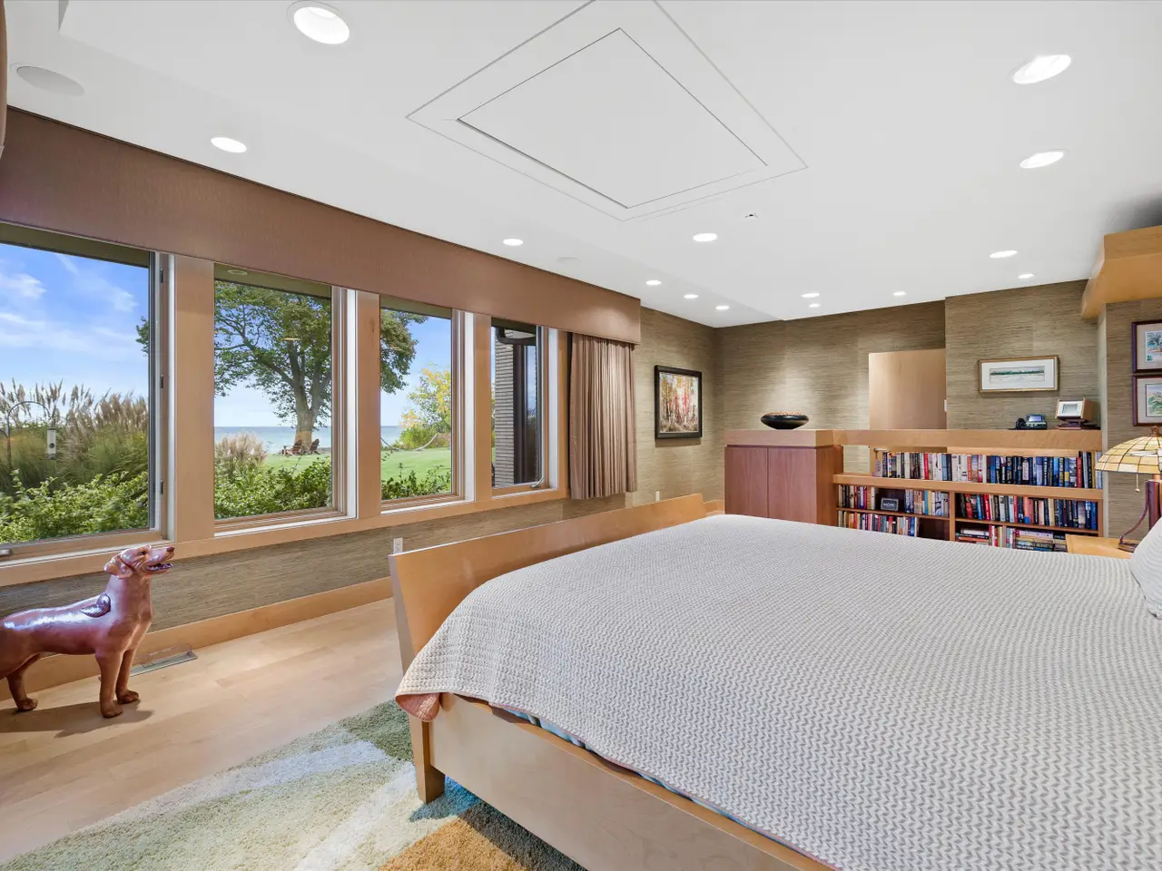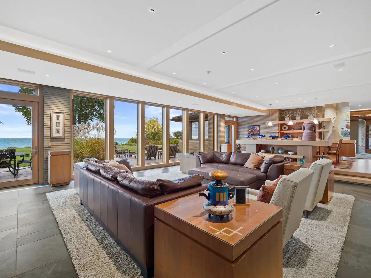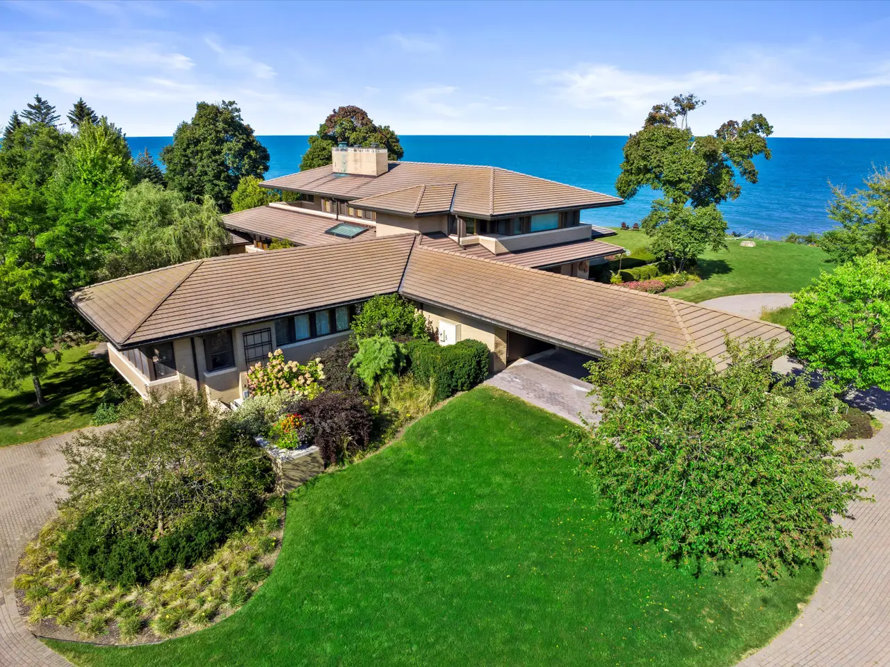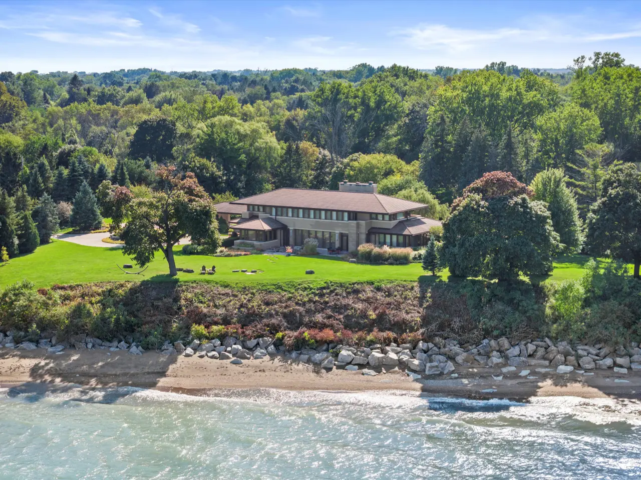 This world class, Frank Lloyd Wright-inspired estate is a masterpiece of architectural design and private, luxurious living. This modern Prairie style five bedroom, 6.5 bath home spanning over 13,000 square feet is nestled on nearly four acres with over 600 feet of Lake Michigan frontage. Every inch of the residence is thoughtfully designed by renowned architect, Ken Dahlin, using the very finest of materials and craftsmanship. Upon entering, you’ll be captivated by the seamless integration of indoor and outdoor spaces designed to maximize the breathtaking lake views and natural beauty. Indulge in a wealth of amenities including commissioned art glass, indoor pool, sauna, tennis court and elevator. This remarkable property presents a once in a lifetime opportunity to the next owner.