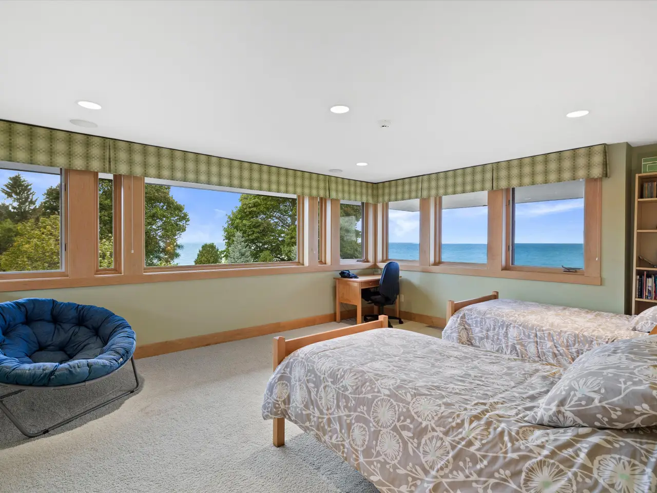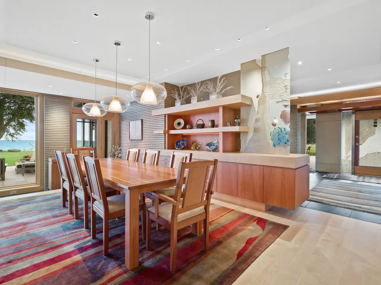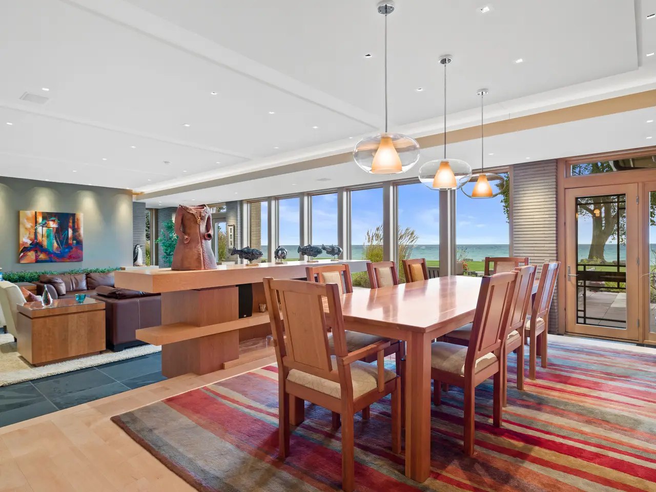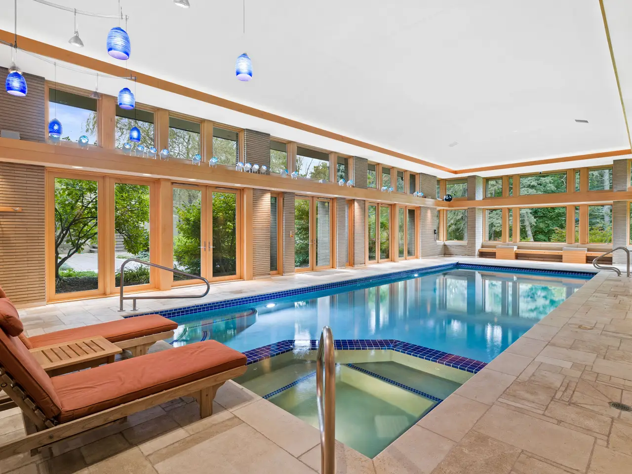 This world class, Frank Lloyd Wright-inspired estate is a masterpiece of architectural design and private, luxurious living. This modern Prairie style five bedroom, 6.5 bath home spanning over 13,000 square feet is nestled on nearly four acres with over 600 feet of Lake Michigan frontage. Every inch of the residence is thoughtfully designed by renowned architect, Ken Dahlin, using the very finest of materials and craftsmanship. Upon entering, you’ll be captivated by the seamless integration of indoor and outdoor spaces designed to maximize the breathtaking lake views and natural beauty. Indulge in a wealth of amenities including commissioned art glass, indoor pool, sauna, tennis court and elevator. This remarkable property presents a once in a lifetime opportunity to the next owner.
