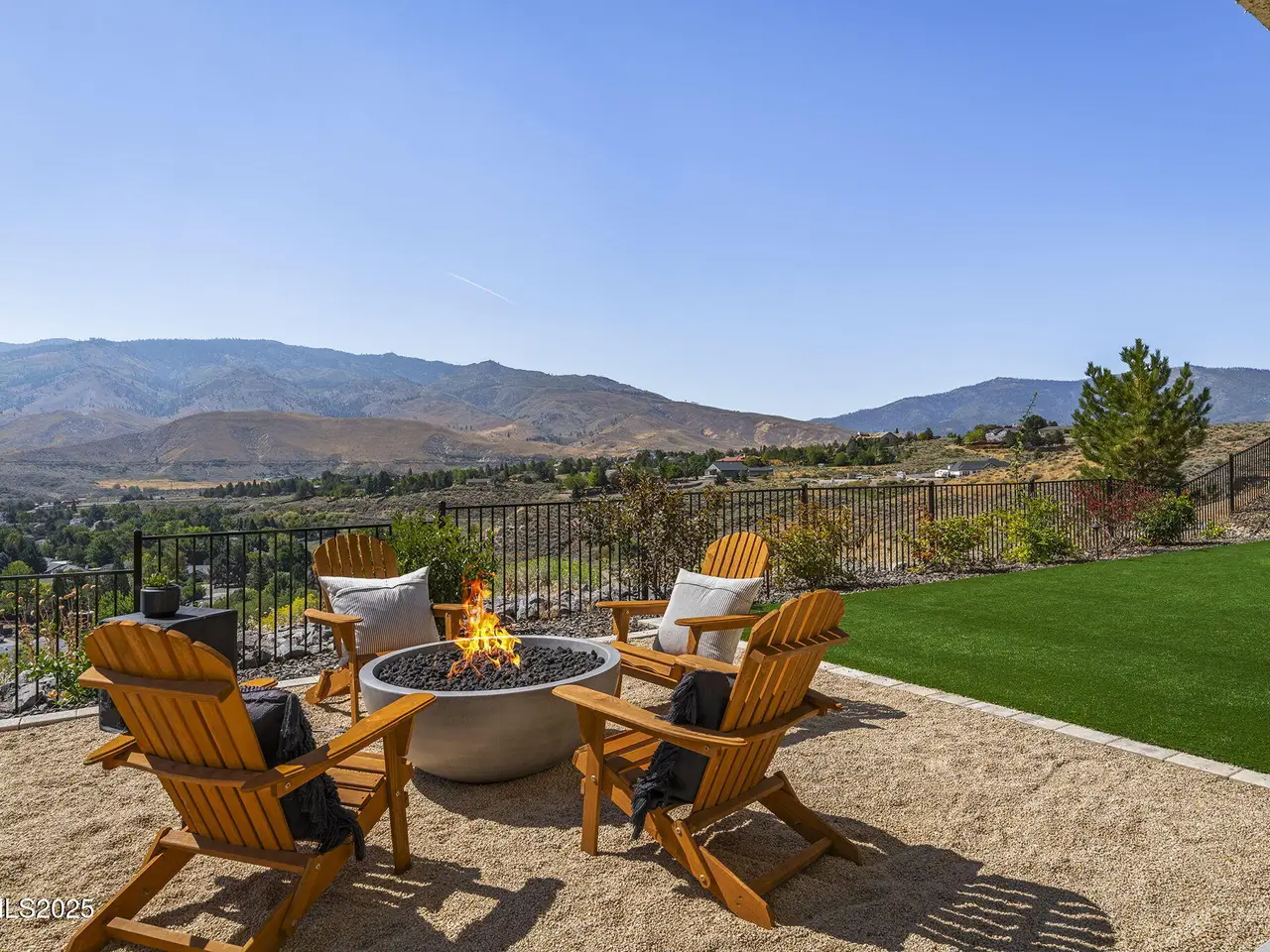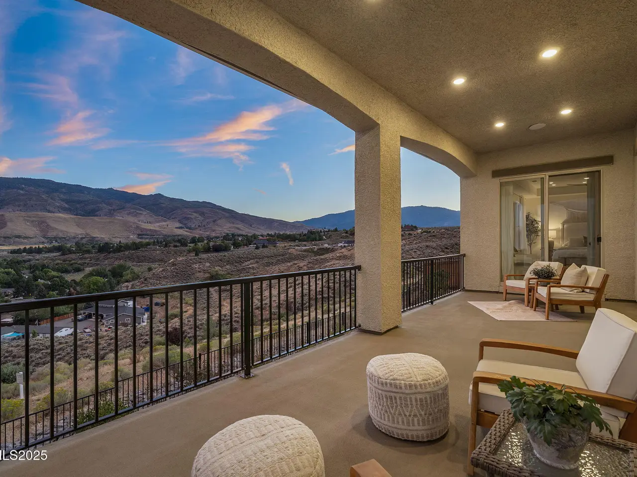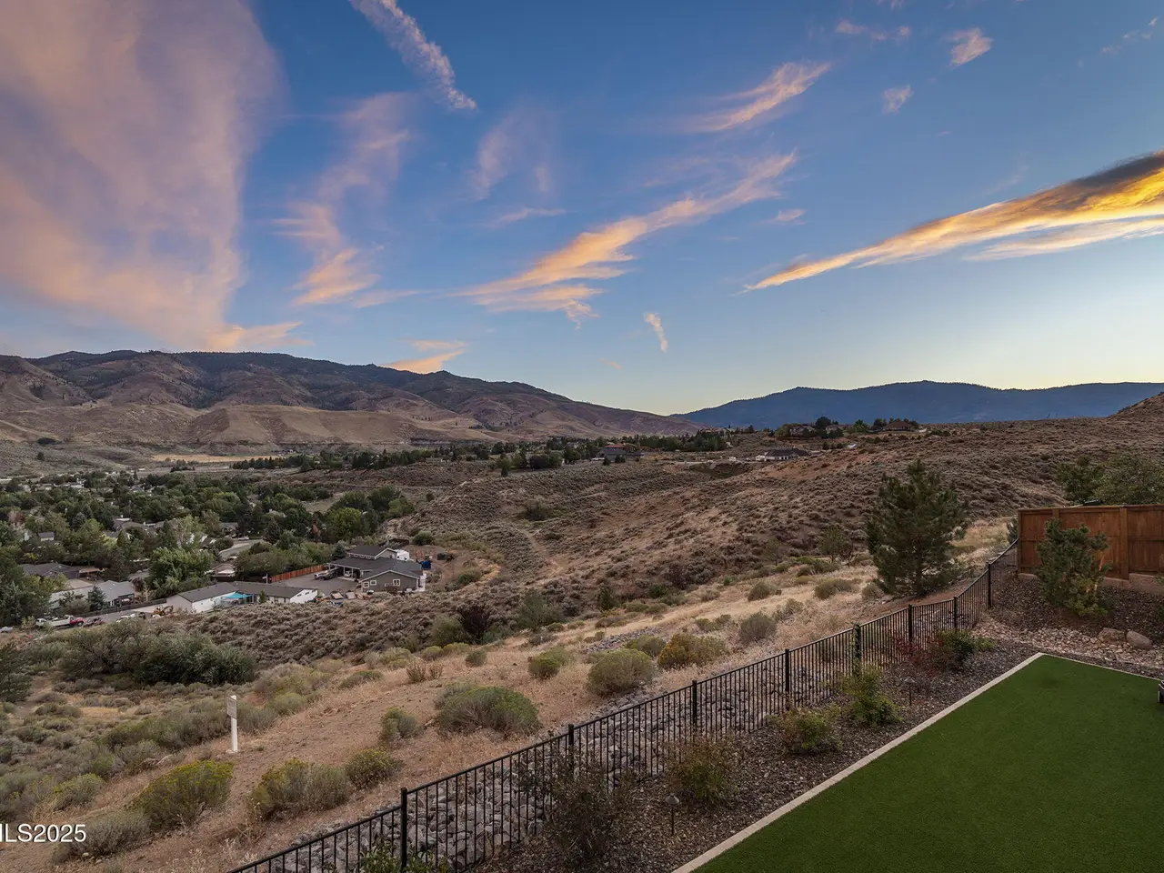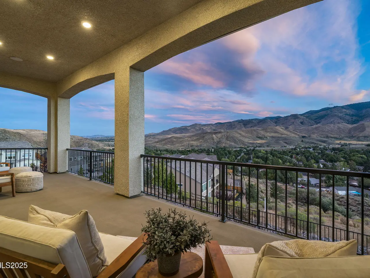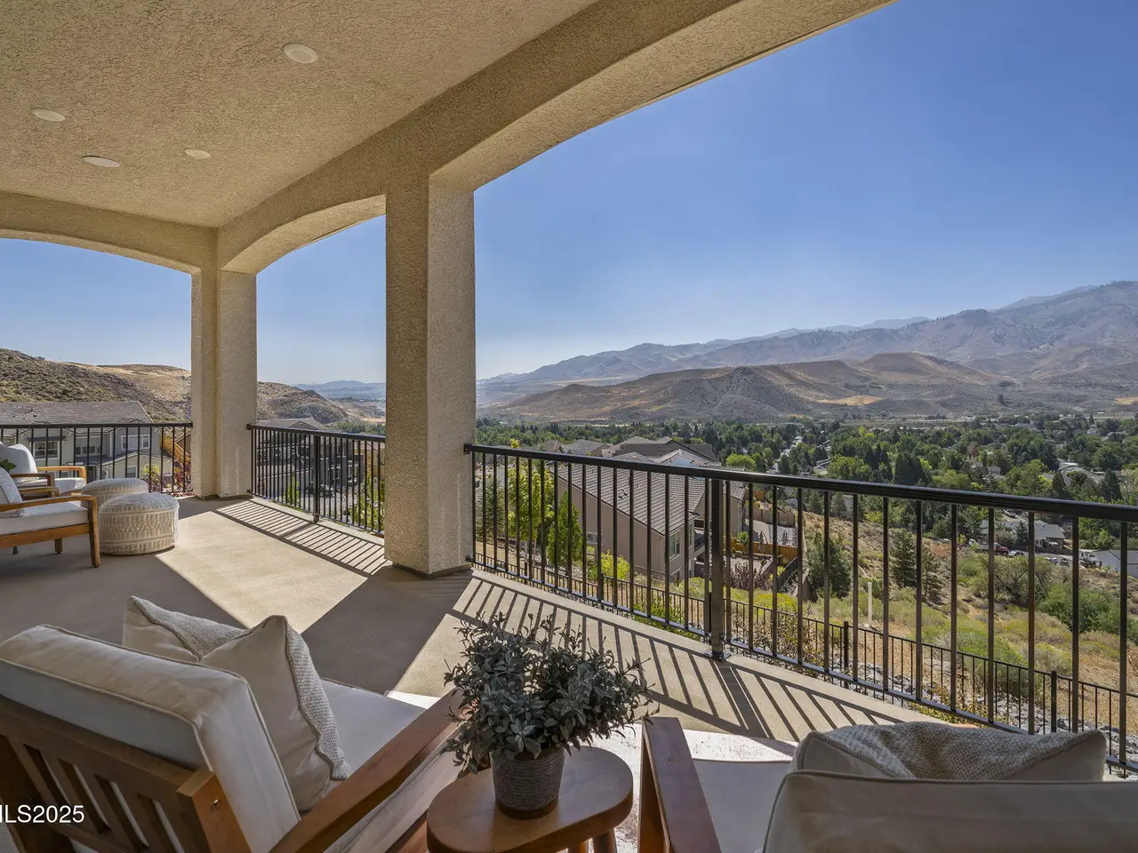 Opportunities like this don't come often. Tucked within Sunset Bluffs —an intimate hillside community in Northwest Reno of only 41 homes— this luxurious residence offers a lifestyle and is more than just a home, it displays model home perfection with unmatched, breathtaking views. Perched on a premier lot with no immediate rear neighbors, no neighbors on one side, and none directly across, it offers a level of privacy and serenity you simply won't find elsewhere. From the moment you step inside, your eyes are drawn to majestic, sweeping views of the Sierra Nevada mountains. Whether you're preparing a meal in the gourmet kitchen, relaxing by the great room fireplace, waking in your private primary suite, or unwinding on the oversized covered deck, the vistas are breathtaking—and unforgettable. Designed for main level living, the layout showcases dramatic 9' ceilings and rich hardwood flooring throughout. The open-concept great room centers around the 45" linear fireplace with floating beam mantel and full tile surround while flowing seamlessly into the chef's dream kitchen, complete with a Kitchen Aid stainless steel appliance package featuring a 48" six burner commercial-style gas range with griddle and double oven, Quartz counters, farmhouse style apron-front cast iron sink, under-cabinet lighting, roll-out shelving, walk-in pantry, coffee bar/prep area, and sleek designer finishes. Every detail has been thoughtfully curated for both style and function. The generous dining area completes this entertainer's dream space. Expansive 3-panel Western Sliders in both the great room and kitchen erase the boundary between indoor and outdoor living, framing nightly sunsets and wildlife sightings right from your own home. The split primary suite feels like a personal retreat, offering large windows that capture the morning light, direct deck access, and a spa-like bath with dual vanities, upgraded Kohler vessel sinks, a luxurious walk-in frameless glass shower and spacious walk-in closet. Two additional bedrooms share a beautifully upgraded full bath with dual Quartz vanities, drop-in sinks and a fully tiled tub/shower. A separate den/office with a glass-panel door, powder room, and fully appointed laundry room, including cabinets and laundry sink, complete the main level. The walk-out lower level is a world of its own and expands the home's versatility—complete with a large living area, flex space, and fully finished kitchenette, complete with sink, microwave and beverage fridge. Perfect for entertaining, extended guest stays, or multi-generational living, it even includes a bedroom, full bath, and direct access to the outdoor spaces. Additional features - • In-ceiling audio system • Automatic interior lighting in some locations • Central data panel • Three-car insulated garage with epoxy flooring and upgraded openers • Hardwood flooring on both levels, including the primary suite • Expansive covered deck & professionally designed outdoor living spaces • Rare private lot with uninterrupted views and unmatched seclusion • Numerous upgraded details and additional features throughout the home This is not just a home—it's a chance to live elevated, every single day. Homes with this level of privacy, luxury, and sweeping views rarely come available.