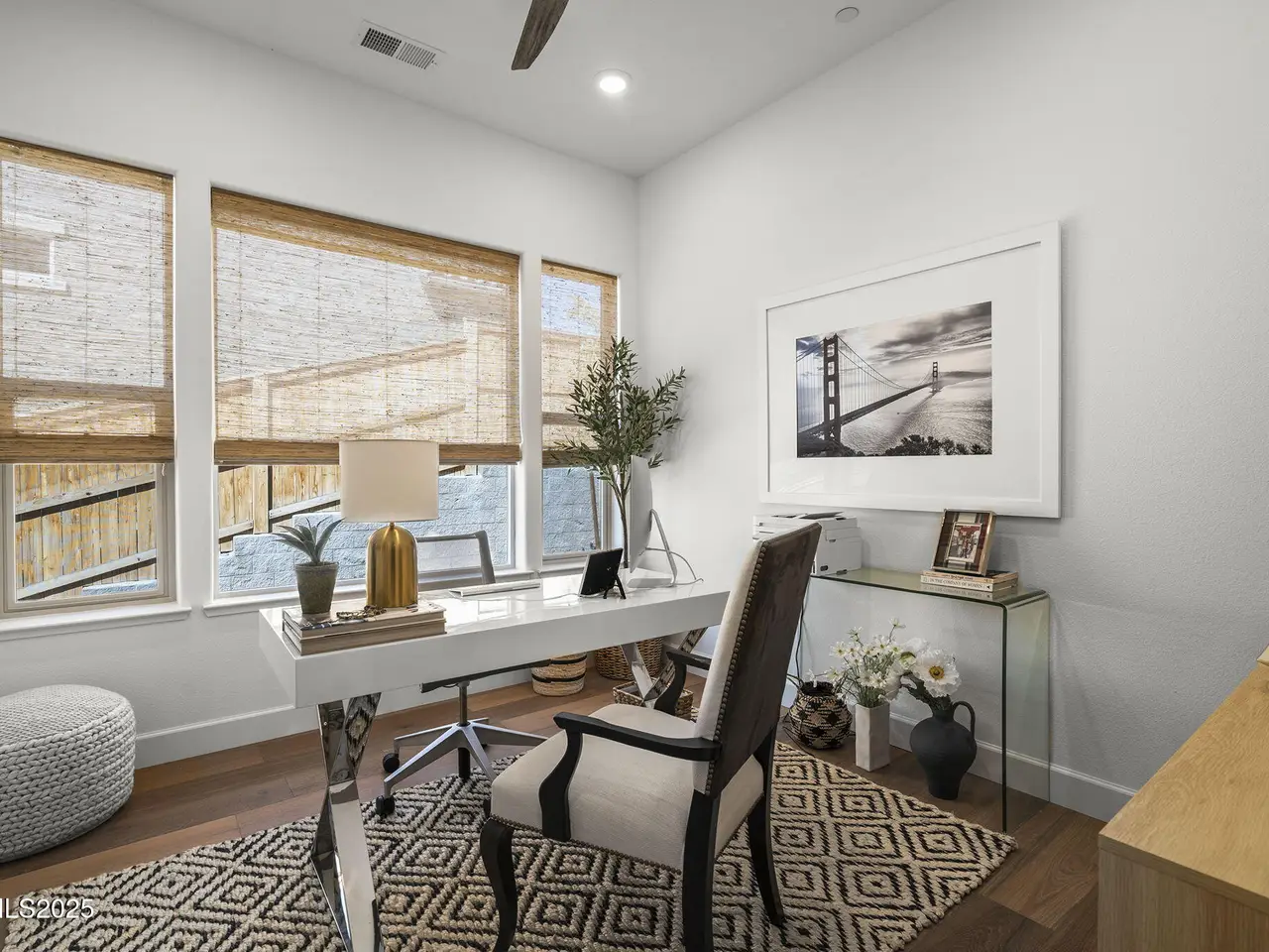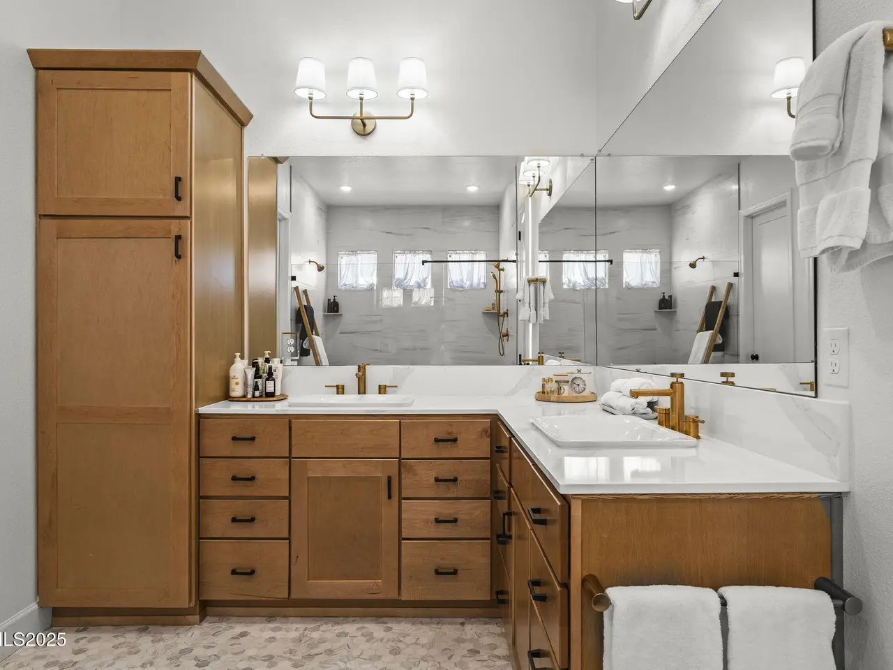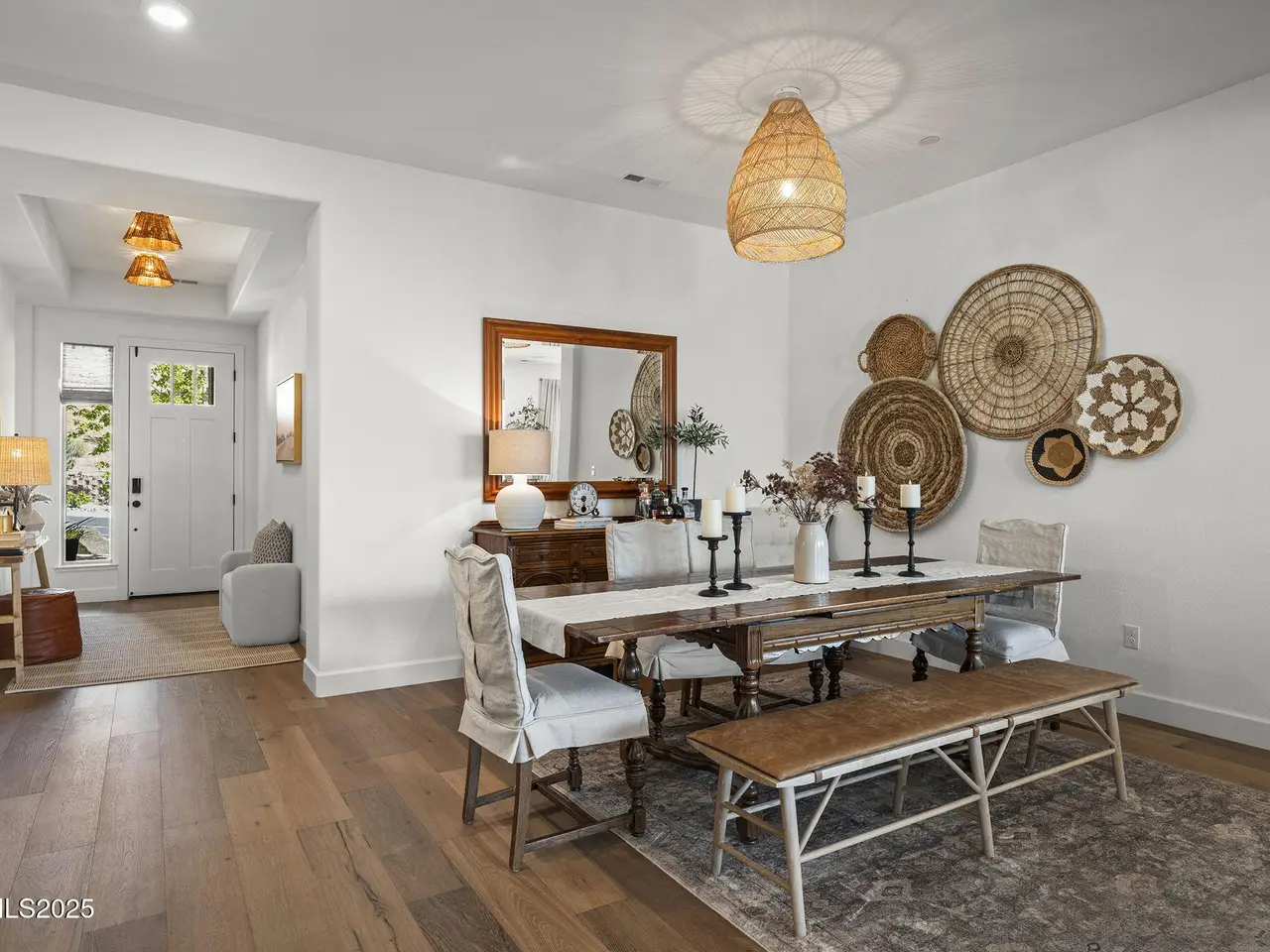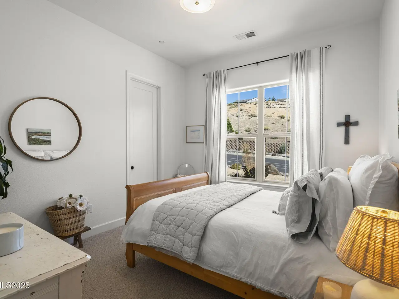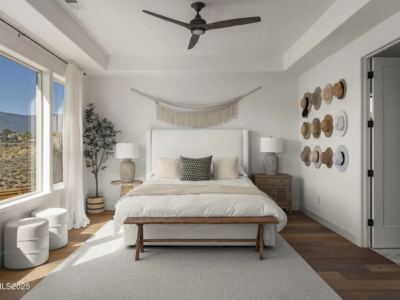 Opportunities like this don't come often. Tucked within Sunset Bluffs —an intimate hillside community in Northwest Reno of only 41 homes— this luxurious residence offers a lifestyle and is more than just a home, it displays model home perfection with unmatched, breathtaking views. Perched on a premier lot with no immediate rear neighbors, no neighbors on one side, and none directly across, it offers a level of privacy and serenity you simply won't find elsewhere. From the moment you step inside, your eyes are drawn to majestic, sweeping views of the Sierra Nevada mountains. Whether you're preparing a meal in the gourmet kitchen, relaxing by the great room fireplace, waking in your private primary suite, or unwinding on the oversized covered deck, the vistas are breathtaking—and unforgettable. Designed for main level living, the layout showcases dramatic 9' ceilings and rich hardwood flooring throughout. The open-concept great room centers around the 45" linear fireplace with floating beam mantel and full tile surround while flowing seamlessly into the chef's dream kitchen, complete with a Kitchen Aid stainless steel appliance package featuring a 48" six burner commercial-style gas range with griddle and double oven, Quartz counters, farmhouse style apron-front cast iron sink, under-cabinet lighting, roll-out shelving, walk-in pantry, coffee bar/prep area, and sleek designer finishes. Every detail has been thoughtfully curated for both style and function. The generous dining area completes this entertainer's dream space. Expansive 3-panel Western Sliders in both the great room and kitchen erase the boundary between indoor and outdoor living, framing nightly sunsets and wildlife sightings right from your own home. The split primary suite feels like a personal retreat, offering large windows that capture the morning light, direct deck access, and a spa-like bath with dual vanities, upgraded Kohler vessel sinks, a luxurious walk-in frameless glass shower and spacious walk-in closet. Two additional bedrooms share a beautifully upgraded full bath with dual Quartz vanities, drop-in sinks and a fully tiled tub/shower. A separate den/office with a glass-panel door, powder room, and fully appointed laundry room, including cabinets and laundry sink, complete the main level. The walk-out lower level is a world of its own and expands the home's versatility—complete with a large living area, flex space, and fully finished kitchenette, complete with sink, microwave and beverage fridge. Perfect for entertaining, extended guest stays, or multi-generational living, it even includes a bedroom, full bath, and direct access to the outdoor spaces. Additional features - • In-ceiling audio system • Automatic interior lighting in some locations • Central data panel • Three-car insulated garage with epoxy flooring and upgraded openers • Hardwood flooring on both levels, including the primary suite • Expansive covered deck & professionally designed outdoor living spaces • Rare private lot with uninterrupted views and unmatched seclusion • Numerous upgraded details and additional features throughout the home This is not just a home—it's a chance to live elevated, every single day. Homes with this level of privacy, luxury, and sweeping views rarely come available.