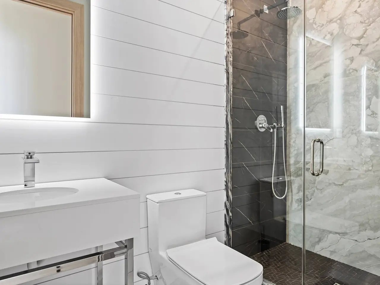 This stunning modern home offers luxurious living on 1.17+- acres with 7 spacious bedrooms and 9.5 elegant bathrooms; a rare opportunity to own an expansive, newly constructed, custom-built home in the Village of Southampton. A grand entrance unfolds into a double-height foyer that transitions into an open living room, formal dining area, and eat-in gourmet kitchen with top-of-the line appliances. A junior primary suite with floor-to-ceiling pocket doors, a full bath, and laundry/mudroom completes the first floor. Upstairs, a primary suite with private balcony, two walk-in closets also includes a spa bath with tub, glass shower, and double vanity; three additional generously sized en-suite bedrooms finishes the second floor. The fully finished lower level is an ideal retreat for relaxation and entertainment. A separate entryway leads to the state-of-the-art fitness center with a sauna, a den, and two ensuite bedrooms. Outdoors, a stunning heated gunite 20x60 pool is surrounded by a bluestone patio and overlooks a lush, rolling lawn. Other features include three fireplaces, a three-car garage, built-in sound system, extra high ceilings, and the finest level of luxury finishes. All overflowing with natural light, this home is ideal for the Hamptons lifestyle. Conveniently located close to ocean beaches as well as Southampton Village restaurants and shops. Listing ID#915313