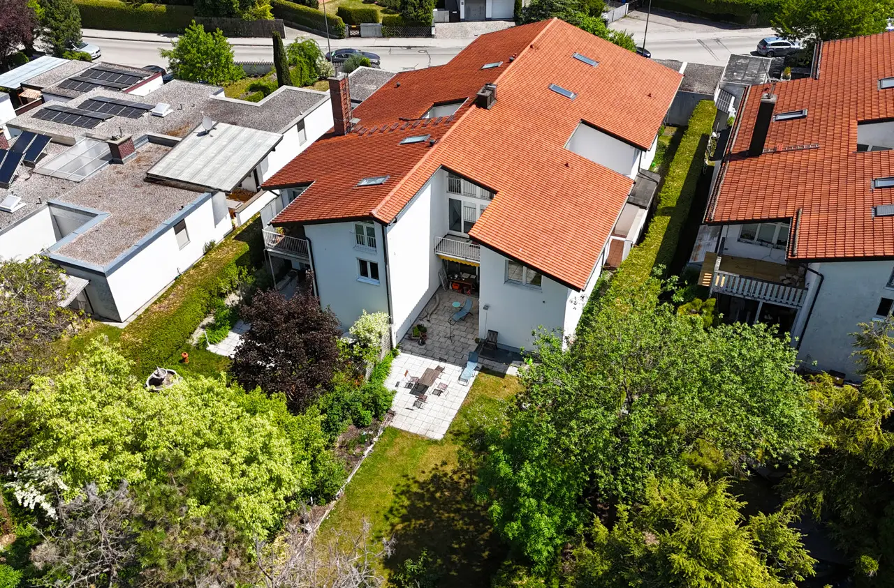 This well-kept and versatile semi-detached house is for sale in a quiet residential area of Munich-Untermenzing. The house was built in two phases - the first floor around 1970, the upper floor around 2000. Today it offers two separate residential units with a total living space of approx. 317 m² on a spacious plot of approx. 750 m². Thanks to the well thought-out room layout with a total of 10.5 rooms, two open-plan living and dining areas, four bathrooms, six bedrooms, a dressing room and two fully equipped kitchens, the property is ideal for multi-generational concepts, large families, communal living or as an attractive investment. Versatile use, well thought-out furnishings: The two residential units are each separately accessible and offer spacious floor plans with plenty of natural light. The open-plan living and dining area on the first floor impresses with its spaciousness and view of the greenery - an ideal living space. The upper floor apartment also impresses with a light-flooded gallery and two sunny balconies. The basement and cellar offer additional hobby rooms and plenty of storage space - ideal for a home office, guests, hobbies or as additional usable space. The outdoor area includes two terraces and a well-kept, large garden with plenty of scope for design - whether for relaxing, gardening or playing with the family. For convenient parking, there is also a garage with a double parking space and two outdoor parking spaces. Modernization and condition: The property is in a well-kept condition and investments have been made on an ongoing basis. For example, a new kitchen including an electric stove and fridge-freezer combination was installed on the upper floor in 2024. The shower on the upper floor was also replaced in 2022. In 2020, the façade was partially repainted and a particulate filter was installed for the chimney system. A new valance awning was installed in 2019. The façade was insulated around 2000 as part of the extension. The house is heated by an efficient central heating system, which was renewed in 1996. The two residential units are currently very well rented and together generate a monthly basic rent of € 4,410.00 plus ancillary costs of € 690.00 - a solid rental yield in a sought-after location. The building also offers an interesting model for owner-occupiers with vision: one residential unit can be occupied by the owner, while the other remains rented out - a concept that can noticeably ease the burden on the financing thanks to the solid rental income that can be achieved and can partially contribute to it. This spacious semi-detached house combines a variety of rooms, flexible usage options and sustainable rentability. It is ideal for families, as a multi-generational home or as an investment. The quiet location in Untermenzing, the well-kept condition and the contemporary furnishings make this a property with a stable long-term value. We would be happy to arrange a viewing for you and look forward to receiving your inquiry!