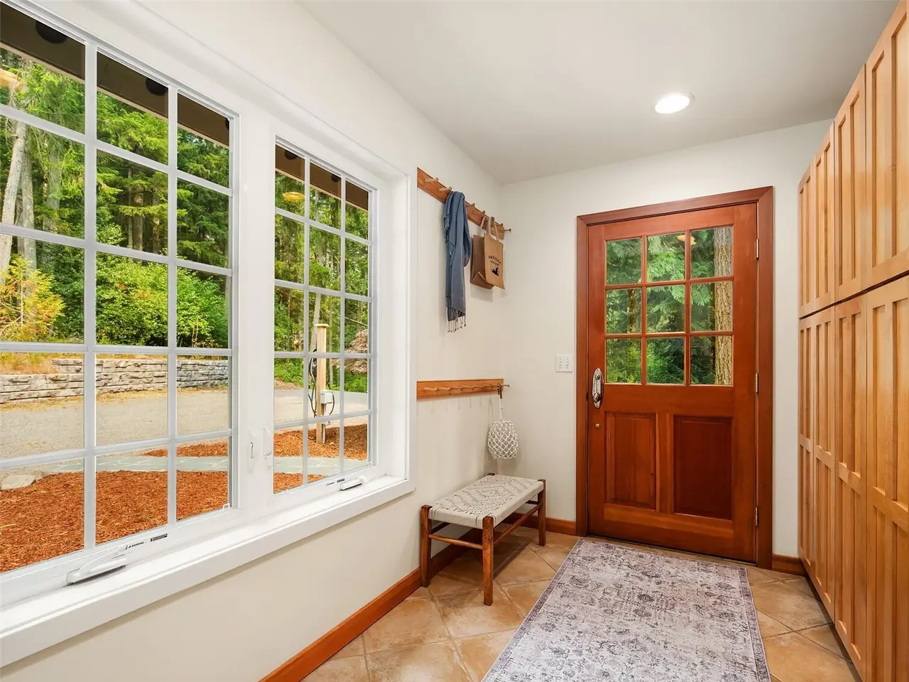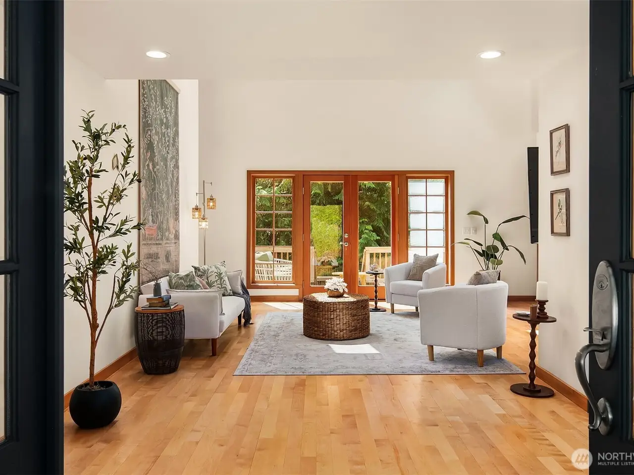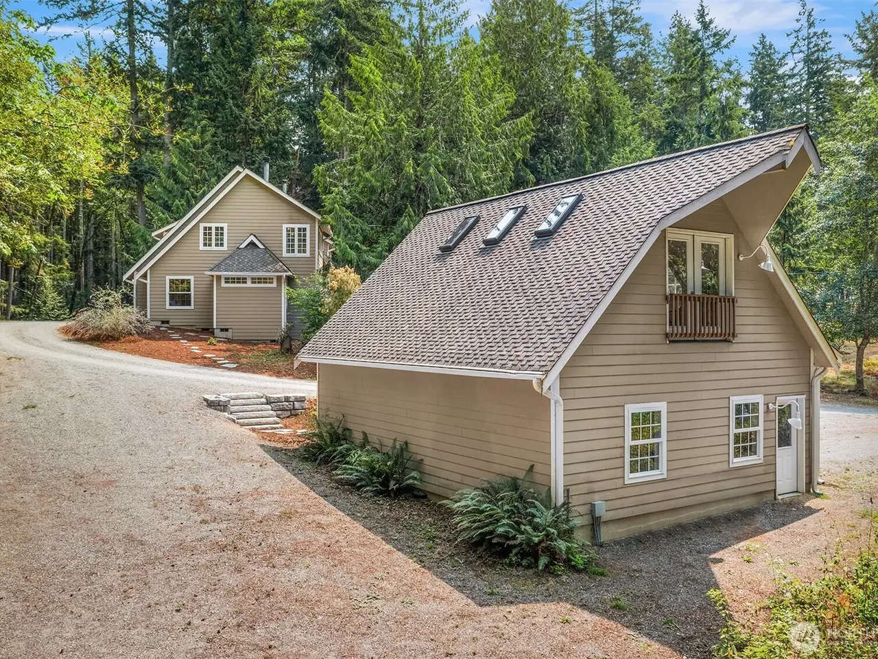 Tucked away on 5 serene acres along Vashon's west side, this retreat-like home blends elegance w/ privacy. Enjoy the sun-filled LR where madrone floors, a cozy fireplace,& soaring vaulted ceilings create a warm, welcoming ambiance. A hidden door reveals the primary suite w/ dual walk-ins, tiled bathroom & FR doors to the deck. A kitchen designed for both beauty & function, showcasing quartz counters, custom cabinetry, & premium appliances including a Liebherr fridge & Bertazzoni range. Upstairs boasts spacious bedrooms, a bonus room & full bath. Radiant floor heating runs throughout for comfort in every season. A 2-car garage & EV charging completes this peaceful island sanctuary--an inspiring place to live, entertain & recharge.