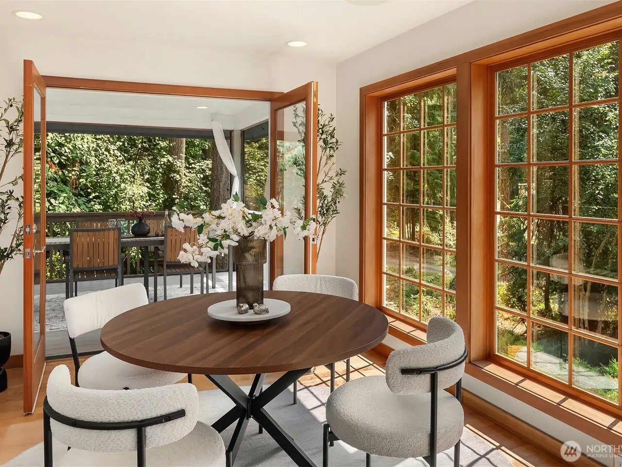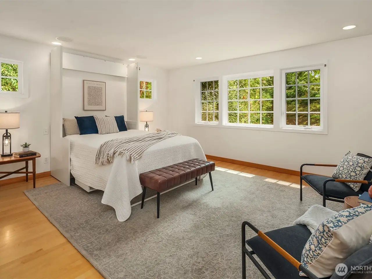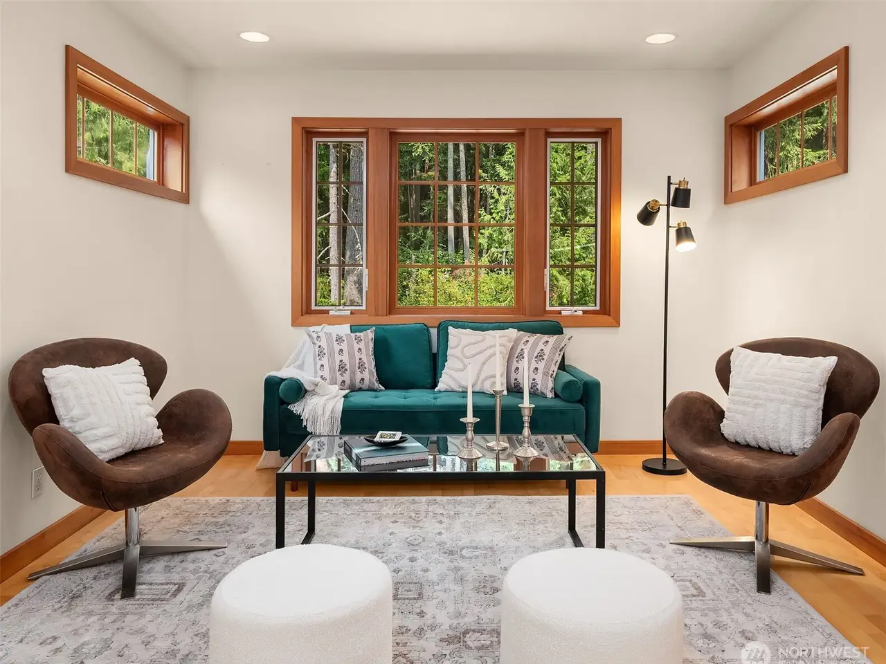 Tucked away on 5 serene acres along Vashon's west side, this retreat-like home blends elegance w/ privacy. Enjoy the sun-filled LR where madrone floors, a cozy fireplace,& soaring vaulted ceilings create a warm, welcoming ambiance. A hidden door reveals the primary suite w/ dual walk-ins, tiled bathroom & FR doors to the deck. A kitchen designed for both beauty & function, showcasing quartz counters, custom cabinetry, & premium appliances including a Liebherr fridge & Bertazzoni range. Upstairs boasts spacious bedrooms, a bonus room & full bath. Radiant floor heating runs throughout for comfort in every season. A 2-car garage & EV charging completes this peaceful island sanctuary--an inspiring place to live, entertain & recharge.
