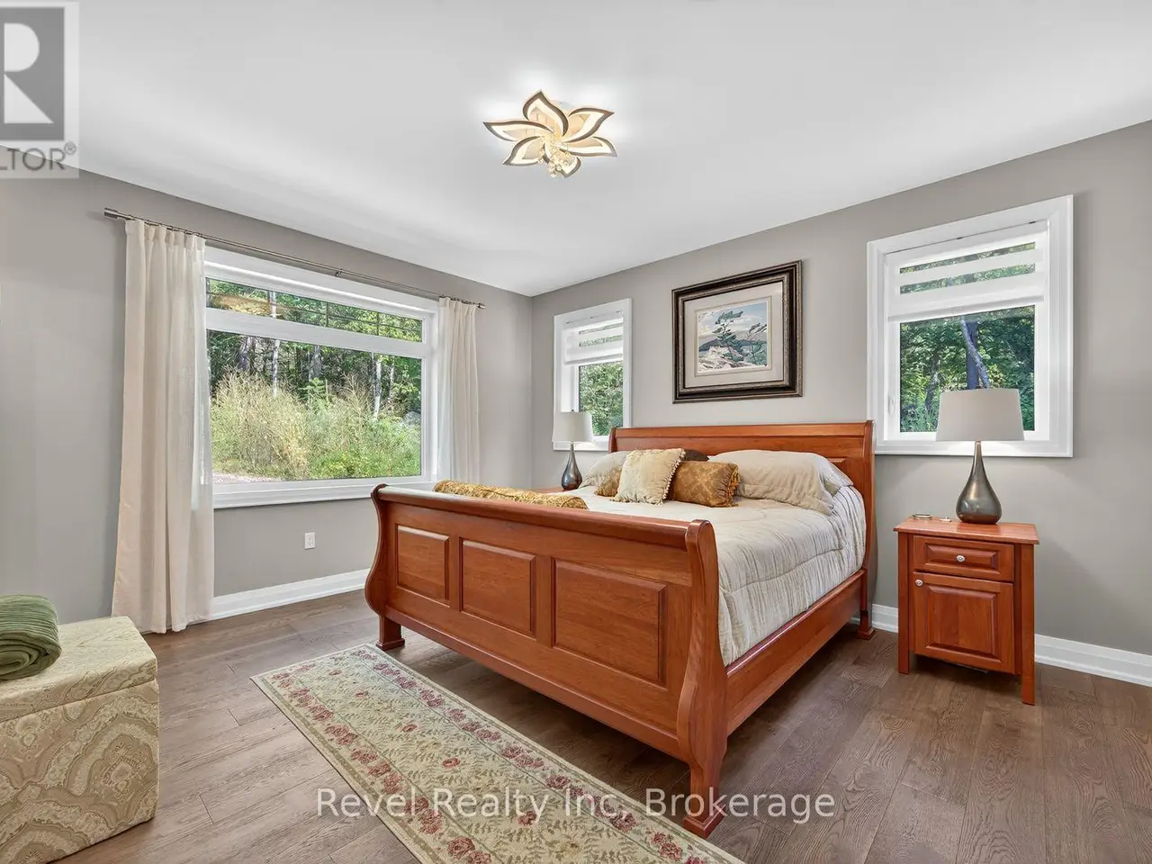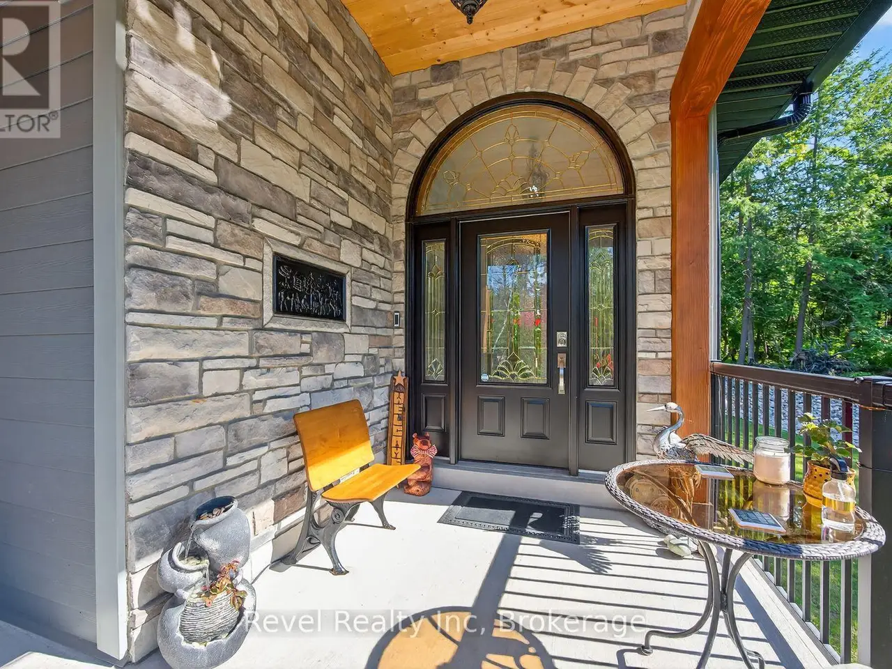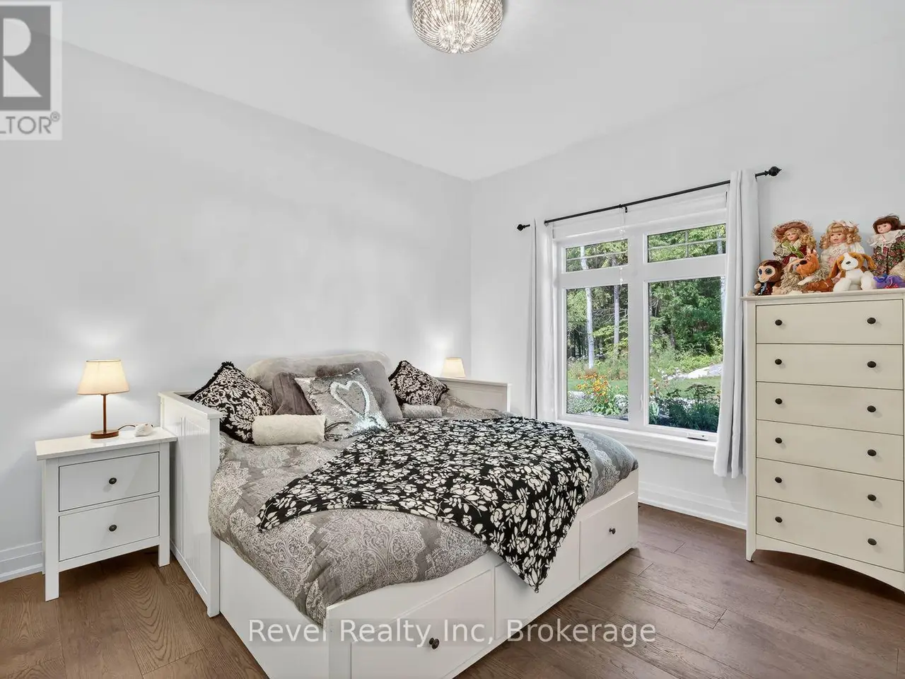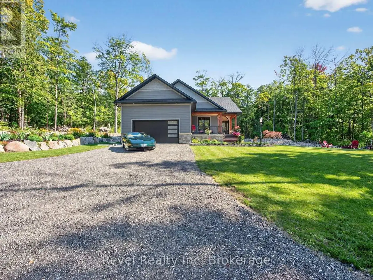 Luxury Living in Exclusive Thunder Beach! Imagine waking up beneath the serene Nipissing Ridge on 1.7 acres of landscaped privacy, with turquoise waters of Georgian Bay just steps away. This nearly new executive bungalow is a rare opportunity to call one of Georgian Bays most prestigious communities home. Every detail of this residence speaks to quality and craftsmanship. Built with ICF foundation and French drains for lasting comfort and energy efficiency, it also showcases rich hardwood floors, custom cabinetry, and spa-inspired bathrooms. The covered porch welcomes you into an airy, open-concept design where a chefs kitchen, featuring a Thor stove, pot filler, walk-in pantry, and multimedia bar, seamlessly connects to the dining area and covered deck. Every window frames tranquil views of trees, never neighbors. The primary suite offers a walk-in closet and a serene ensuite with an oversized glass shower equipped with multiple showerheads for your private spa retreat. Two additional bedrooms and a second full bath complete the main level. The finished lower level extends the lifestyle: radiant in-floor heating, a custom bar, built-in media surround, and oversized windows create a sophisticated entertaining space. Two more bedrooms, a full bathroom, and a walk-up to the heated garage ensure versatility perfect for an in-law suite. Beyond the home, the Thunder Beach lifestyle awaits. Ownership here means more than just a property its belonging to a community. Enjoy access to tennis courts, a private golf club, and a vibrant social scene that has defined this enclave for generations. And as the day closes, watch the horizon light up with sunsets that paint the sky in breathtaking shades of pink and gold. This is not just a home. It is an invitation to live exceptionally where luxury, lifestyle, and Georgian Bays natural beauty come together in perfect harmony. (id:7434)