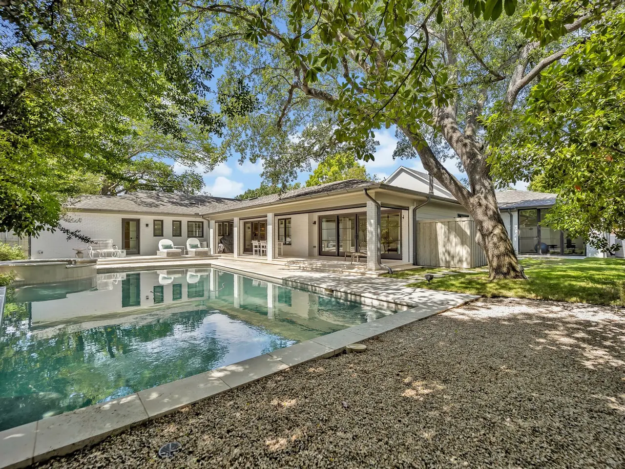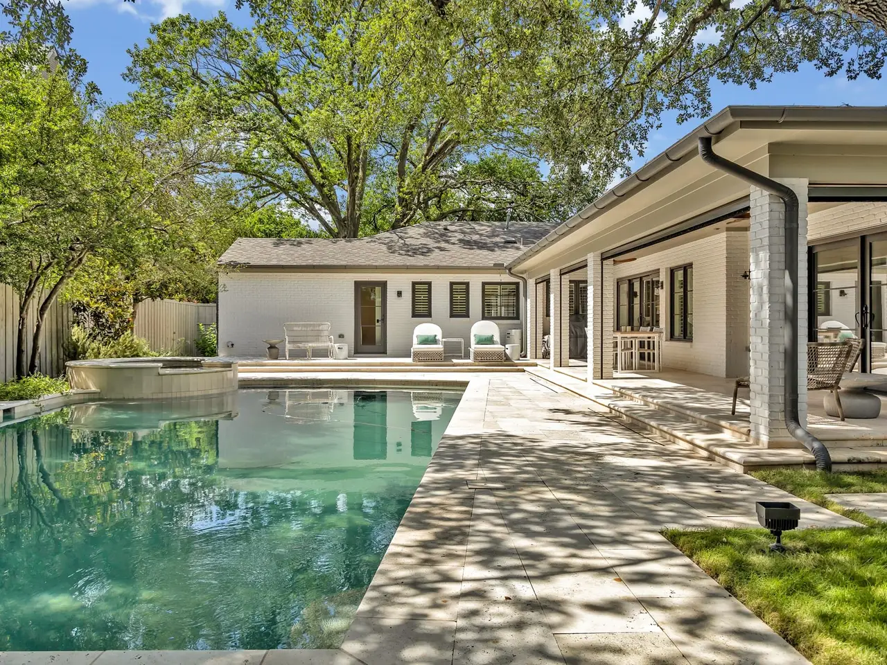 A true Lakewood masterpiece, this one-of-a-kind residence was completely reimagined and expanded in 2023, offering an unparalleled combination of modern sophistication and timeless design. Nestled on an expansive .335-acre lot, this rare single-story ranch is framed by lush landscaping and bathed in natural light from walls of windows that blur the line between indoors and out. At its center, the chefs kitchen serves as both a statement of style and a culinary dream, showcasing Taj Mahal quartzite countertops, top-of-the-line appliances including a built-in refrigerator, an oversized pantry, and a sunlit breakfast nook. The primary suite defines luxury living with its own fireplace, French doors leading to the backyard, and a spa-inspired bath with soaking tub, standalone shower, and custom-designed closet system. No detail was overlooked in the redesign, with exquisite finishes including designer lighting and tile, rich wood flooring, exposed beams, and three fireplaces that add warmth and character. The floor plan was thoughtfully curated for flexibility, offering multiple living areas, a dedicated office, an exercise room, and a custom-built bonus room currently serving as an art studio. Outdoors, this private sanctuary is designed for both intimate gatherings and grand entertaining with a resort-style pool and spa, expansive covered patio with ceiling fan, and manicured grounds secured by a board-on-board privacy fence. An oversized two-car garage adds practicality without compromising elegance. Perfectly positioned and zoned to Lakewood Elementary, this home is more than a residenceit is a statement of refined living in one of Dallas' most coveted neighborhoods.