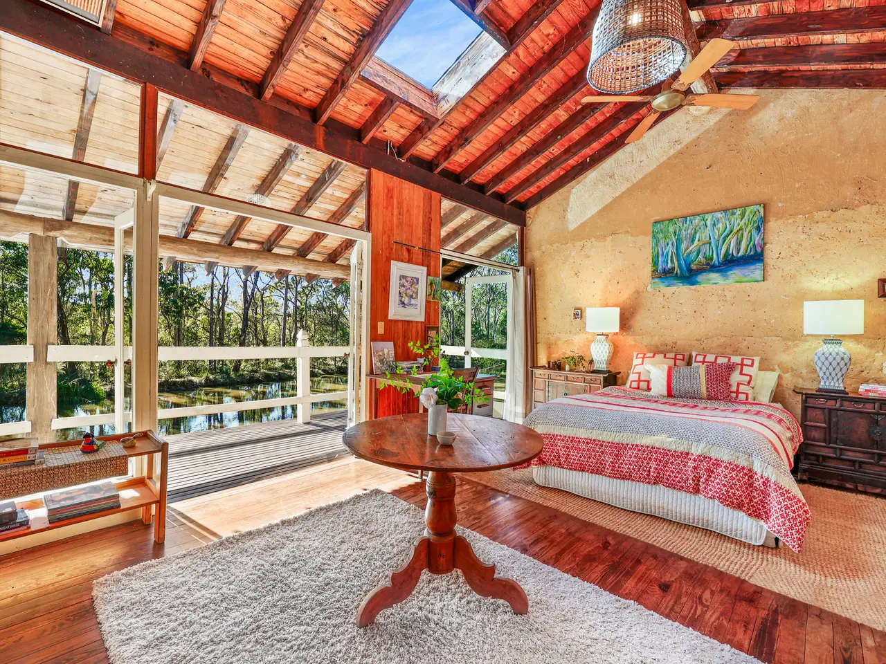Embrace a world of tranquil serenity just 50 minutes from Sydney's CBD at this iconic acreage estate. This is a rare opportunity to secure a private haven surrounded by approximately 30 acres. Featured in numerous lifestyle magazines and labelled as Home Beautiful magazine's 'Home of The Year', this mesmerising Balinese/Sulawesi inspired home is like no other. Positioned to embrace north facing views and sunshine over its very own waterlily adorned lake abundant from the main deck, the ground level living and bedroom areas, and the private deck off the master bedroom upstairs. Enjoying full sun most of the day, the main house sits within a partially walled compound that includes the four separate sandstone pavilions, gardens, pagoda and two courtyards all linked via timber decking, cobblestones and covered walkways. At the centrepiece of this sanctuary is the garden courtyard which draws you towards the stunning water views and nature beyond. Complete with creative and meditative spaces to relax and reenergise, this is a unique opportunity to secure an approx. 30 acre haven away from life's hustle and bustle. Showcasing artisan sandstone, sculptural features, stain-glass windows and skylights throughout, this family home includes three large bedrooms, each with ensuites and walk-in robes, a light filled art studio and, at its heart, the kitchen and living spaces each adorned with inviting wood fireplaces providing warmth and comfort. Allow your creativity to flow in the detached art studio featuring timber cathedral ceilings or relax in the Balinese-style courtyard with signature ornamental tiling. During summer the lake is a delightful place for swimming or just floating by starlight to the sound of frogs. Pristine native flora around the homestead offers gorgeous seasonal wildflowers and attracts birds, wallabies, echidnas and sugar gliders to this tranquil setting. The large open paddock space is perfect for a sustainable vegetable garden or horse paddock. A self-sufficient shed is located 100 metres from the main dwelling making it ideal for separating work from home, or simply as a second retreat. The shed hosts a large rainwater tank, and its solar panels service the entire property. Its separate workshop is perfect for sculpting or handiwork whilst drawing inspiration from the natural surrounds. Property - 30 acre property - 2 dams (both with pumps) provide water to main residence and second dwelling - Fire pump with sprinkler system around both houses - 500m long driveway - Partially fenced paddocks with post and rail fencing - Oversized double carport Main Residence - Northeast facing bungalows influenced from Balinese/Sulawesi architecture - 4 separate sandstone pavilions with two courtyards, linked via 171sqm decking and covered walkways - Striking lime and sand rendered walls - Two sewage pumps and tanks on either side of house - Gas (bottled) cooking, large walk-in pantry - Filtered drinking water supplied from top dam - 3 Bedrooms all with ensuites and walk in robes Shed/workers accommodation Shed/Workers Accomodation - East facing - Solar power (services the entire property) - 3 bedrooms main with walk-in robe - Polished concrete flooring - Water tank 25,000 litres - Bottled gas - Aquaclarus water management system - Fully fenced - Separate shed/workshop with built in workbench and three phase power Property History - Featured in Home Journal, 1976 - Featured in 26 Best Homes, 1977 - Good Housekeeping, 1983 - Home Beautiful. 1994 labelled Home of the Year - Appear in TV advertisements for popular household brands and two feature length films Just 25 minutes' drive from both Hornsby and Cherrybrook Metro, this unique property offers the perfect escape while staying conveniently connected. Whether you are looking for your own private paradise, room for the family to grow, an Airbnb, or investment, this oasis is sure to impress. Elevate your everyday at 18-20 Bloodwood Road, Fiddletown (Arcadia) - where sophisticated design meets breathtaking natural beauty.