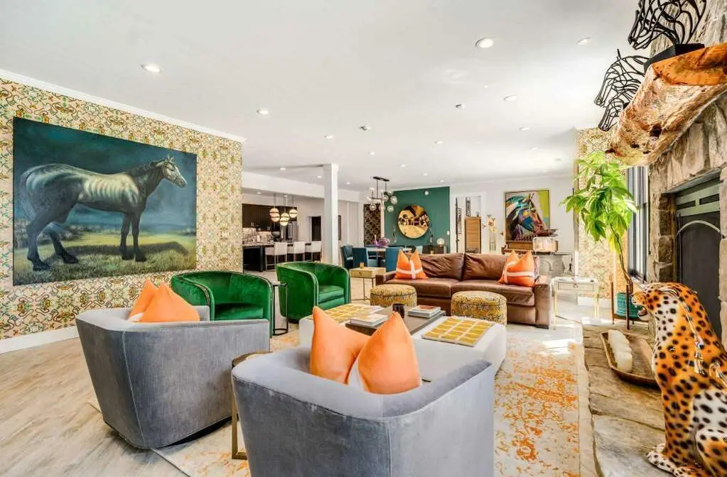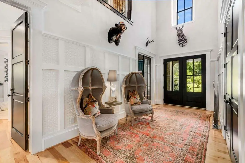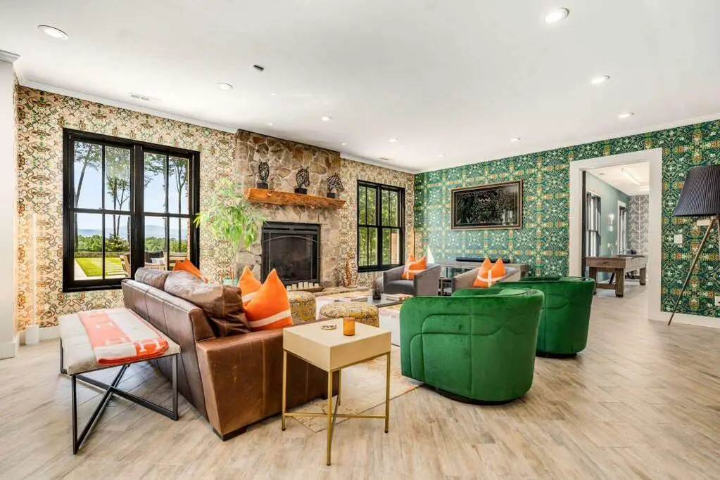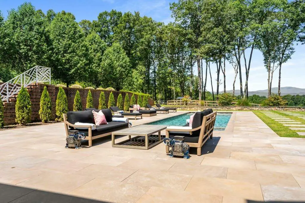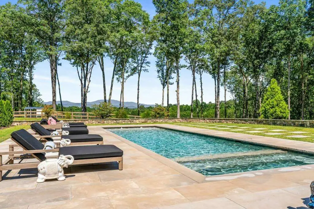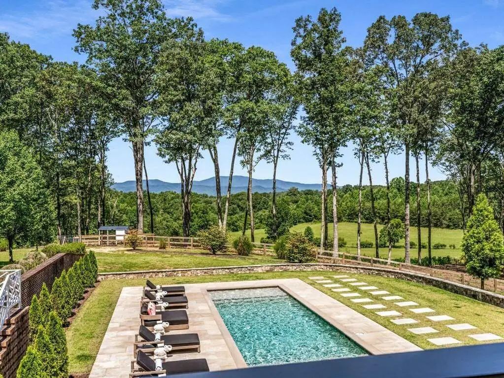 Welcome to Meadow Creek Manor, a timeless private mountain estate on 23 acres in Blue Ridge, Georgia. Located just minutes from downtown Blue Ridge on all flat paved roads, enter though automated gates down the private tree-lined driveway unveiling the four-bay car barn (additional three-car attached) and stunning 10,000 square foot completely renovated and fully furnished home. Take in the incredible scenery of the pool, landscape, pasture, creek and beyond to the endless mountain views of the Cohutta Wilderness. The home and grounds underwent a significant renovation and enhancement over the past year including: exquisitely furnished with high end designer furniture, art, lighting, rugs, wallpaper, and decor, new basement level custom kitchen and bar, full gym and game room, spa room with infrared sauna, updated main level chef's kitchen, updated bathrooms, new paint throughout, custom wallpaper treatments, all new light fixtures, LED can lights and ceiling fans, Sonos system, new spring fed well pump and pipes with whole house water filtration, two electric car chargers, and new powered entry gates with camera and app control. Exterior and grounds underwent a significant transformation as well, including a complete re-staining and painting the exterior, tree removal and landscaping design to gain complete privacy and spectacular views of the Cohutta Mountain Wilderness, new Sport Court with pickleball, volleyball, badminton, basketball that could also be used as a helicopter pad.