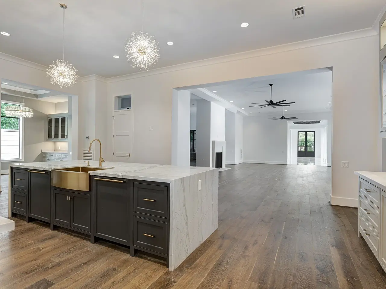 New construction by Stacey Fine Homes is underway on a 27,000+ SF (per builder) corner lot in Tanglewood! This elegant, custom 11,300+ SF (per Builder) home will include 6 bedrooms, 7 full and 3 half baths, indoor/outdoor living and an open floor plan that is an entertainer’s dream! A spacious living room opens into a sitting area equipped with a bar and a wine room on either end. The formal dining room is attached to the butler’s pantry which leads you into the chef’s kitchen. The kitchen will include KitchenAid and Thermador appliances, a large kitchen island with breakfast bar and a breakfast nook for family dining. The expansive indoor/outdoor living area is equipped with a wet bar, barbecue area, a fireplace, and an approximate 17' x 32' pool. Other amenities include an oversized 4-car garage, a whole house generator, an elevator, 2 staircases, and 4 gas log fireplaces. Completion expected July 2025. All per Seller.