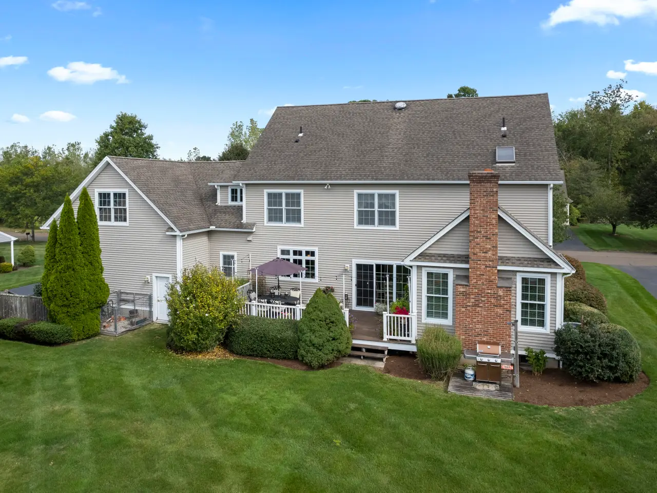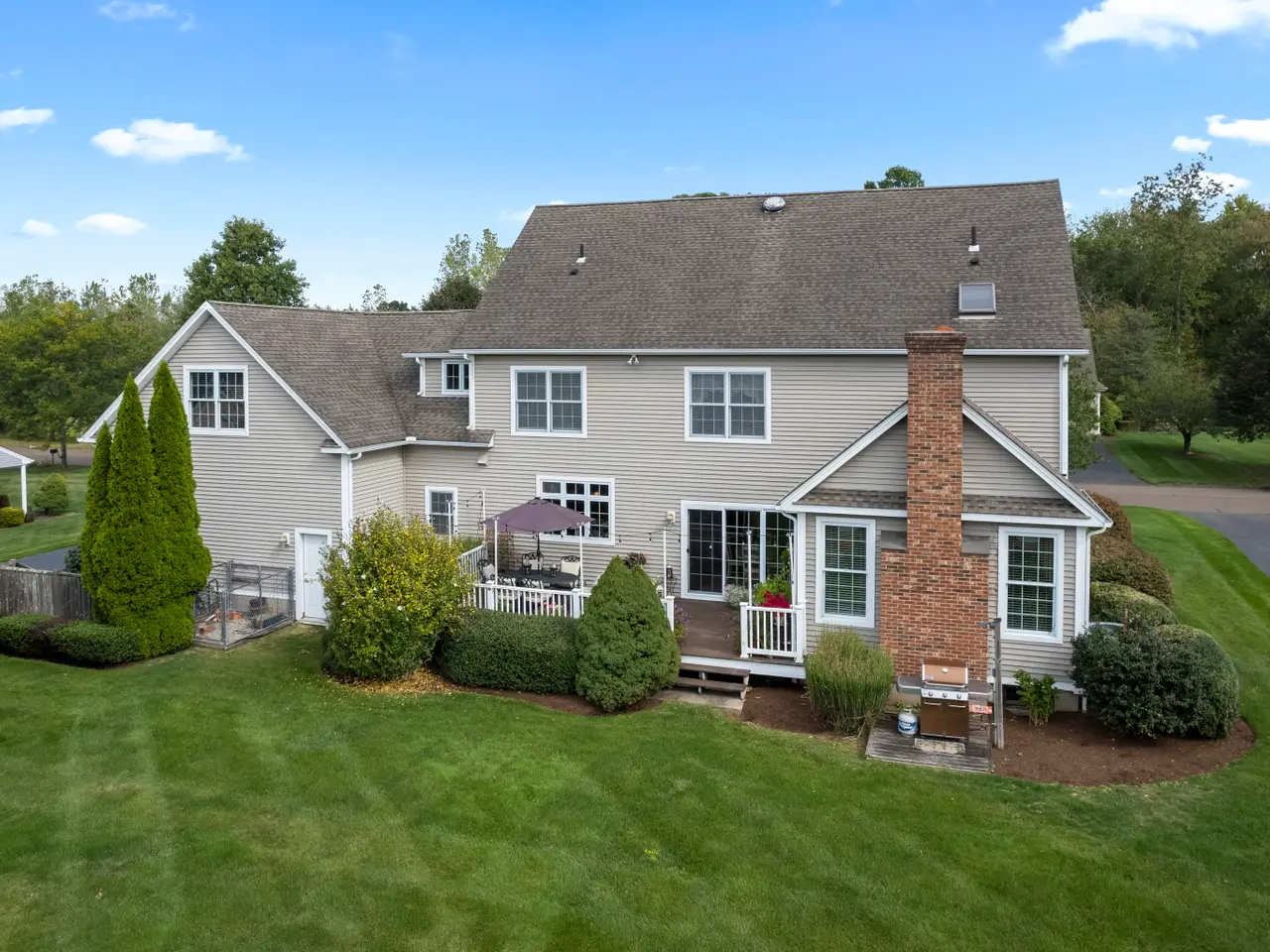 Nestled in one of Branford's most sought-after neighborhoods, this meticulously maintained colonial offers the perfect blend of space, style and comfort. With 4 spacious bedrooms, 3 bathrooms and plenty of living space, this home is move-in ready and thoughtfully designed for today's lifestyle. The main floor features an elegant entryway with hardwood floors throughout, a gourmet eat-in kitchen with granite countertops, a center island, top of the line appliances and a custom backsplash of the beautiful scenes of Tuscany created by a local artist. There are multiple living spaces on the first floor, including a family room, living room and formal dining room. Additional first floor features include a private laundry room and access to the deck. Upstairs you'll enjoy a primary suite with vaulted ceilings, a large walk in closet, a luxurious bathroom including a double sink vanity, walk-in shower and soaking tub. Three additional bedrooms are upstairs, as well as a bonus room, ideal for a rec room, workout space, or home office. This home also offers a large 3 car garage, expansive deck that overlooks a beautifully landscaped private backyard and an underground irrigation system. Whether you are hosting a dinner party, working from home, or enjoying a night in, 8 Autumn Ridge Road has the space and features you are looking for.