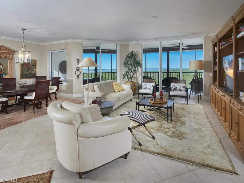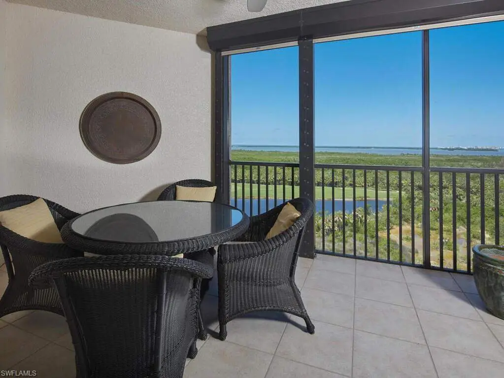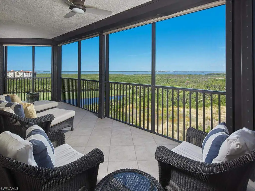 Experience elevated living in The Colony's Florencia tower-one of Southwest Florida's most exclusive and amenity-rich high-rises. Step from your private elevator lobby into this sophisticated 8th-floor corner residence, offering breathtaking panoramic views of the golf course, lake, Estero Bay, and the Gulf of Mexico.Enjoy awe-inspiring sunsets from the expansive screened lanai, where indoor-outdoor living reaches new heights. The light-filled primary suite features floor-to-ceiling picture windows and direct lanai access, while the spa-inspired bath is bathed in natural light and designed for serenity. A thoughtfully designed split-bedroom layout ensures privacy for both owners and guests, den opens to the main living area through elegant double doors and features a private balcony-perfect place to enjoy morning coffee! Spacious guest suites share a third balcony overlooking a lake and the Colony community. The abundant kitchen impresses with lots of countertop space, rich wood cabinetry, and stainless steel appliances. Florencia welcomes you with an impressive main lobby and offers a host of upscale amenities, including a social room, private theater, state-of-the-art fitness center, and resort-style pool/spa. A dedicated privacy officer greets you and your guests, while live-in management ensures seamless service and peace of mind. Community amenities include the Bay Club on Estero Bay with elegant dining and views, a 34-acre private island beach park and community/tennis center as well as a host of other court sports including pickle ball and bocce, sailing, canoe and kayaking, as well. Golf is optional.