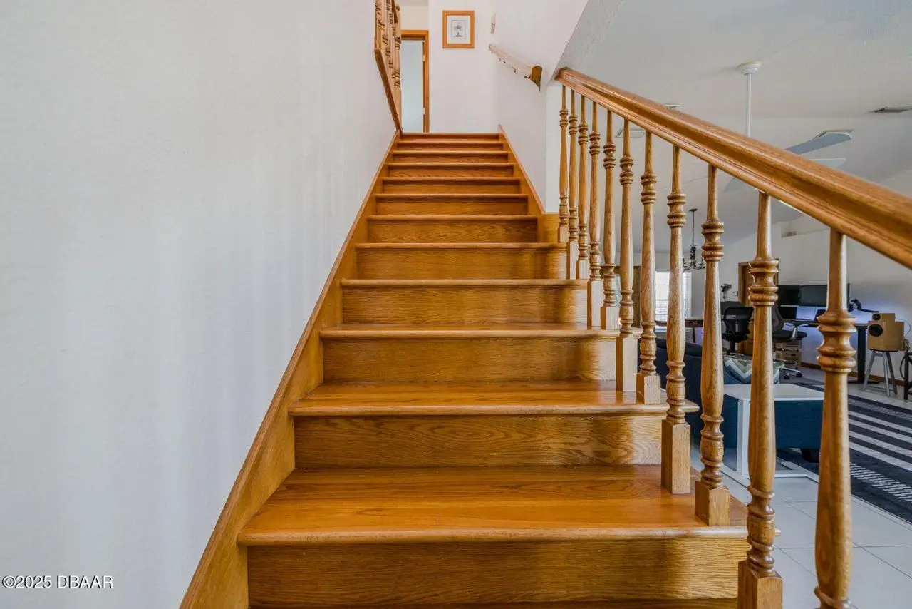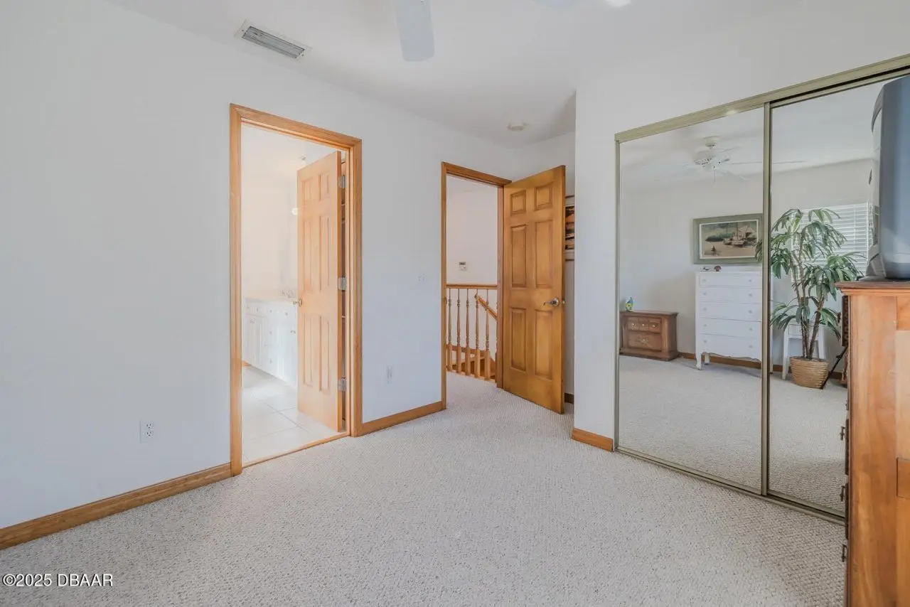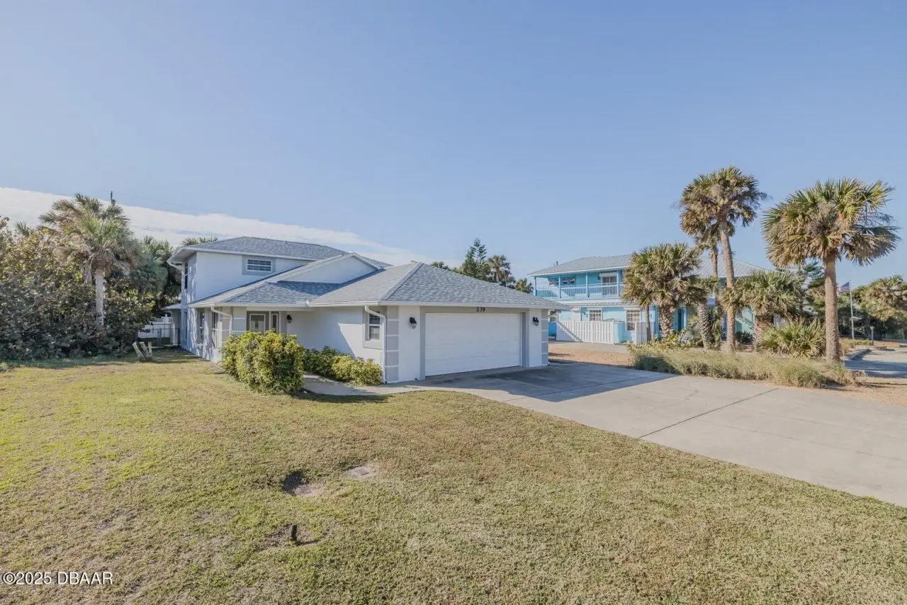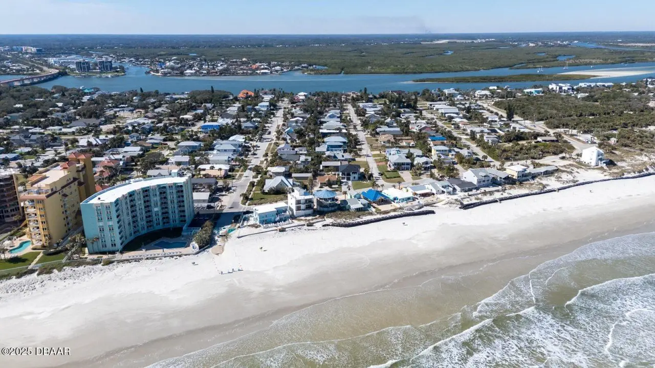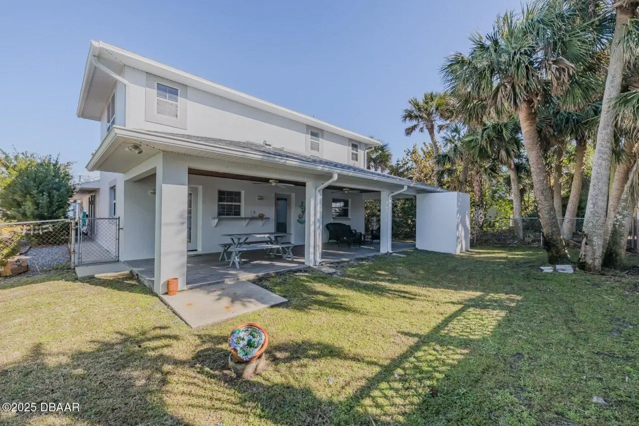 Location, location, location! Discover coastal living at its finest in this immaculate 3BR/2.5BA, 2 CAR GAR home, perfectly located just 5 houses from the beach & only 8 blocks to vibrant Flagler Avenue shops & restaurants. Drive your golf cart, ride your bike or walk to the beach access only 1 block away! Beautifully maintained modern home has an open floorplan with high vaulted ceilings & an inviting atmosphere for entertaining or relaxing. Built in 1998, one of the spacious bedrooms is downstairs & is large enough to be a master BR. It features wood floors & a gorgeous bath with tiled shower & two vanities. This bedroom has a door to the expansive rear lanai which has a cozy wood ceiling & beautiful tiled floors! Private outdoor shower & fenced back yard add to the desirability of this fabulous home. Upstairs you'll find the master bedroom, a luxurious tiled bath and another spacious bedroom. Upgrades include newer roof & water heater in 2021, newer A/C units & both drywood & subterranean termite bonds. Current tenant will consider staying through end of July. Whether you're seeking a permanent residence or a vacation retreat, this home combines elegance, comfort and an unbeatable location!