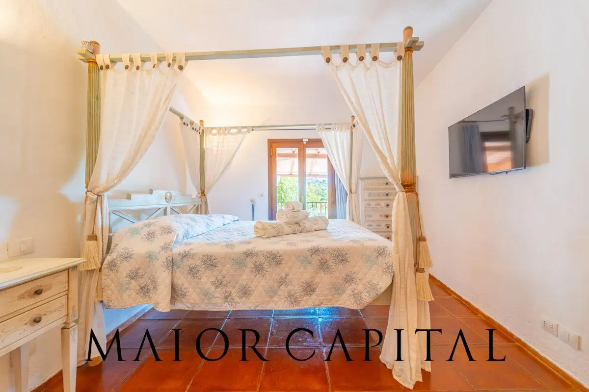 In the immediate vicinity of the prestigious Pevero Golf Club, we are offering for sale a panoramic villa immersed in Mediterranean maquis, with views of the golf courses and set in an exclusive context of villas, guaranteeing privacy, tranquillity and a relaxed atmosphere, less than ten minutes from the renowned beaches of Pevero and Romazzino. Costa Smeralda architecture and Mediterranean charm Spread over two levels, the villa combines elegance and Sardinian authenticity. The bright and welcoming rooms are characterised by the typical Costa Smeralda architectural style, with exposed beams and terracotta floors. The living room opens onto a large covered veranda with panoramic views of the surrounding greenery, perfect for relaxing in any season. The separate, fully equipped kitchen reflects the colours and materials of the local tradition. The sleeping area includes a master bedroom with en-suite bathroom, as well as two additional bedrooms and a shared bathroom, while the semi-basement, accessible from the outside, has two further double bedrooms and a bathroom, ideal for guests or staff. Garden with lawn and private swimming pool Outside, the villa is surrounded by a large, well-kept garden with a lawn, ensuring privacy and harmony with the surrounding nature. The outdoor spaces include a private swimming pool with a sunbathing area and an elegant brick-built lounge integrated into the garden, ideal for convivial moments outdoors, immersed in the silence and beauty of the landscape. A paradise for golf lovers For golf enthusiasts, this property offers an unrivalled residential experience. The villa overlooks one of the most picturesque stretches of the Pevero Golf Club, a masterpiece designed by Robert Trent Jones, with a privileged view of the 18th hole. From here, you can enjoy a setting of extraordinary beauty, where the green of the course blends with the blue of the Costa Smeralda™ sea. A place designed for those who want to experience golf not only as a sport, but as an authentic lifestyle, immersed in a context of luxury, privacy and charm. Exclusive location on the prestigious Costa Smeralda™ The most enchanting beaches of the Costa Smeralda™, such as Grande Pevero and Romazzino, are just a 5-minute drive away. Porto Cervo, with its luxury boutiques, gourmet restaurants, nightclubs and panoramic bars, is just a 10-minute drive away. Supermarkets, pharmacies and tobacconists are located 5 minutes from the villa, ensuring maximum convenience even for extended stays. The renowned Pevero Golf Club, a destination of excellence for golf enthusiasts, is just a 5-minute walk away, offering the opportunity to play this sport surrounded by unique natural scenery. The villa enjoys a privileged location in the heart of Porto Cervo, perfectly connected to the main attractions of the Costa Smeralda™, including the beaches of Cala di Volpe, La Celvia, Capriccioli and Romazzino. Olbia Costa Smeralda™ Airport can be reached in about 30 minutes by car, with direct connections to major Italian and European cities. Composition: Ground floor * Covered veranda with panoramic views and outdoor dining area * Spacious living room * Fully equipped kitchen * Double bedroom with en-suite bathroom * Two twin bedrooms * Bathroom * Semi-basement * Two double bedrooms * Bathroom Features: * Air conditioning * TV system * Heated infinity pool * Outdoor shower * Barbecue * Alarm system * Video surveillance system * Laundry room * Cellar * Private garden * Free private parking Why choose this villa: #1 Exclusive location near the Pevero Golf Club in Porto Cervo #2 Ideal for sports and golf enthusiasts #3 Secure property investment in one of the most sought-after destinations #4 Spacious indoor and out
