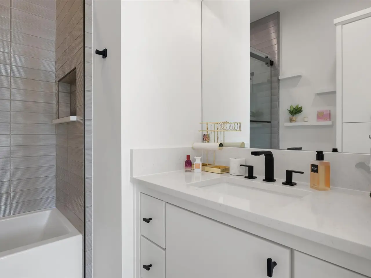 Spa-style bath with deep soaking tub