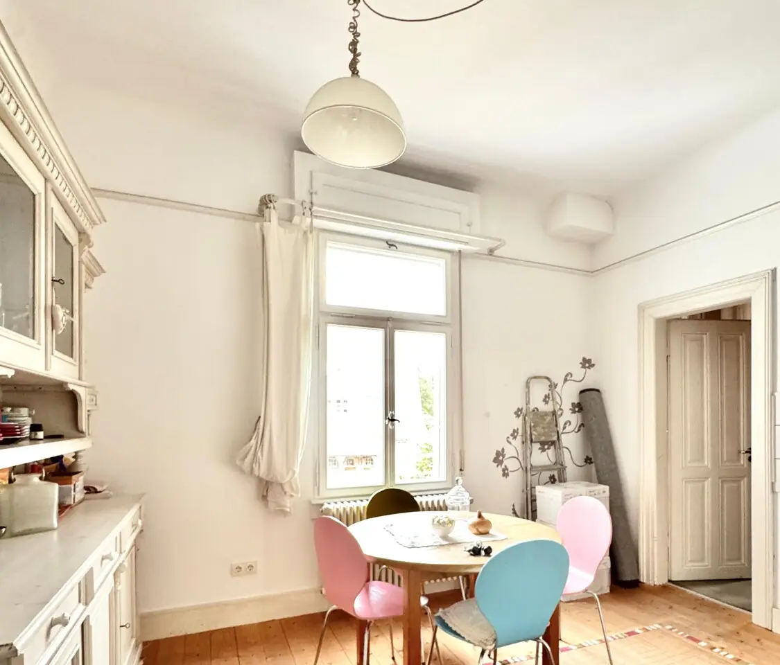 In the heart of the sought-after villa district of Heppenheim, this impressive villa dating from 1890 is a true gem of historical architecture. The listed property was extensively renovated in 1988 and has since combined stylish old building elements with solid structural substance. There are currently three self-contained units spread over around 280 m², which open up a wide range of possible uses. The first floor houses rented office space, which offers an attractive source of income. The upper floor and the generously developed attic are currently used by the owner himself - also as office space or for private living. Two subsequently added balconies on the upper floor and top floor offer a fantastic view of the vineyards and Starkenburg Castle. The villa impresses with its classic old building charm: high ceilings, original style elements, an impressive staircase and an elegant façade design convey the special character of this historic building. The location could hardly be better. Situated in one of Heppenheim's most exclusive residential areas, surrounded by stylish old buildings and plenty of greenery, the property offers both prestigious character and peace and privacy. The proximity to the city center, daily amenities and freeway access round off the offer. Naturally, there is ample parking space in the courtyard.