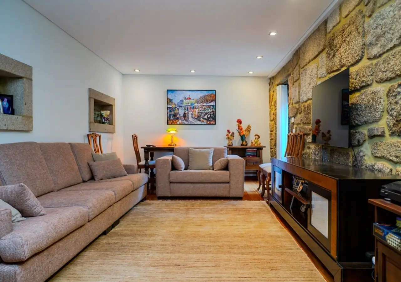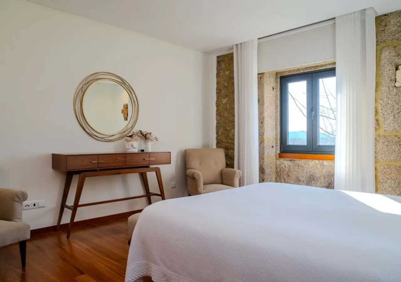 This unique villa was built with exceptional care and attention, ensuring that every space would be functional and welcoming for its residents. Every nook and cranny of this house reflects the commitment to quality and well-being, creating a perfect environment for those who value comfort and practicality in harmony with the details of wood and granite, so specific to Northern Portugal. The four bedrooms, including two suites, on the second floor offer breathtaking views over the large, green gardens, surrounded by centuries-old olive trees, and provide an atmosphere of total privacy and tranquillity. The extensive outdoor space has several different settings for you to enjoy to the full, as there are various types of trees, plants and decorative pieces that embellish this sublime bucolic setting. On the first floor you'll find another suite, a library and kitchen, as well as dining and living rooms; the house is of high quality in terms of energy efficiency, making it ideal for those looking for a home that combines functionality with elegance: a place designed for comfort, where all the spaces have been designed for communal living, with large areas in contact with each other, without compromising on aesthetics and harmony with nature. Easy access and proximity to Barcelos city center make this property even more unique. CHARACTERISTICS: Plot Area: 5 073 m2 | 54 605 sq ft Deployment Area: 455 m2 | 4 899 sq ft Building Area: 629 m2 | 6 768 sq ft Bedrooms: 5 Bathrooms: 5 Garage: 8 Energy efficiency: A+ FEATURES: Three suites; Hot and cold air conditioning by heat pump Solar panels; Photovoltaic panels.