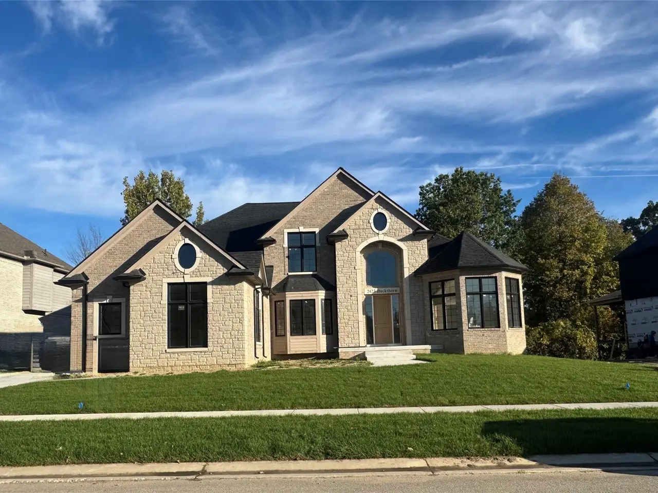 There’s something magical about watching a home come to life — and this one, tucked within the pristine Briarwood Knolls of Shelby Township, is nearly ready to welcome its very first owners this December 2025. From the moment you step inside, you can feel the elegance. Sunlight pours through the MLC windows, dancing across hardwood floors and granite countertops that sparkle beneath soft, recessed lighting. The grand circular staircase winds gracefully to the upper level, where three spacious bedrooms overlook the heart of the home — a soaring two-story great room with a designer-tiled fireplace and built-in bookcases. The first-floor primary suite feels like a peaceful retreat, offering both privacy and comfort, while the gourmet kitchen invites gathering — with custom cabinetry by Shelby Cabinet Shop, a large center island perfect for entertaining, and a walk-in pantry made for the chef at heart. Step outside and you’ll find a covered lanai framed with elegant spindles, overlooking a private backyard that’s as serene as it is inviting. And below, the walkout lower level — already drywalled and painted — offers the perfect blank canvas for your personal touch. Every corner of this home tells a story of craftsmanship, care, and timeless design — a place where every detail has been thoughtfully chosen to blend beauty with function. This isn’t just new construction — it’s the beginning of a new chapter in luxury living.