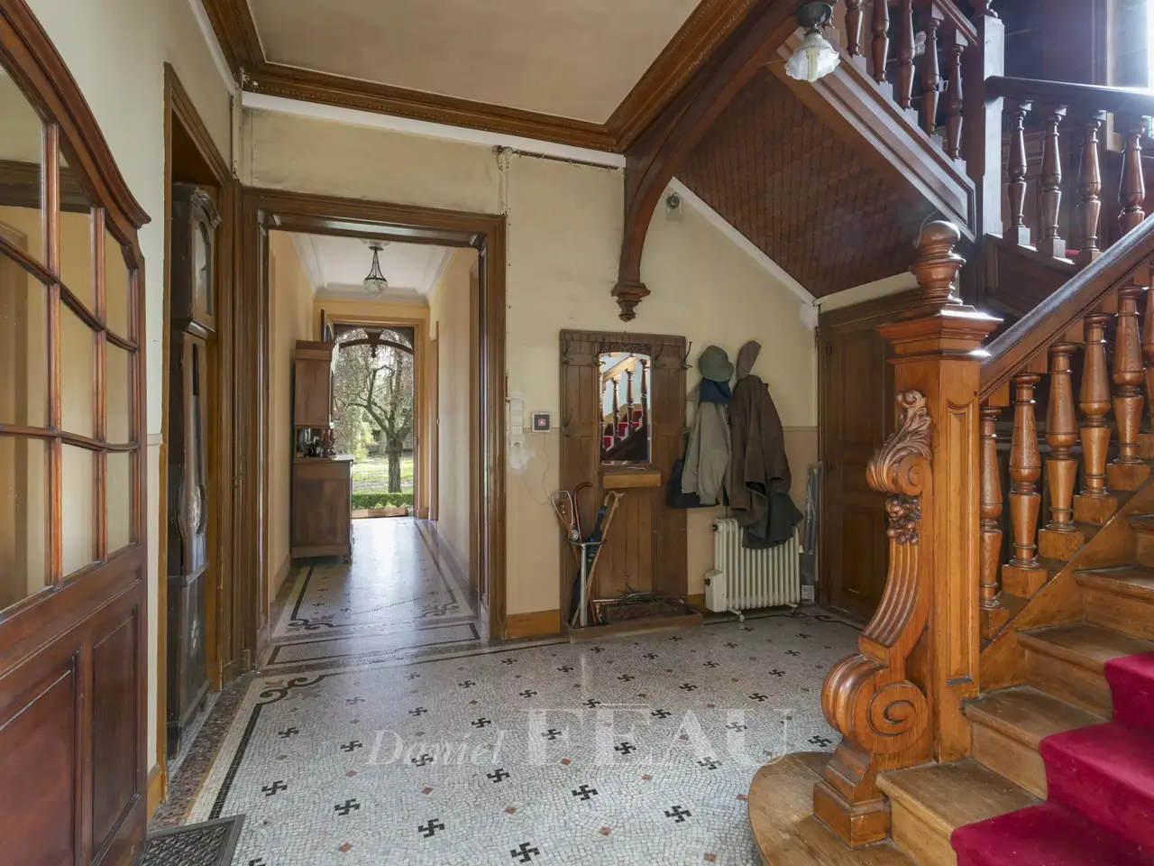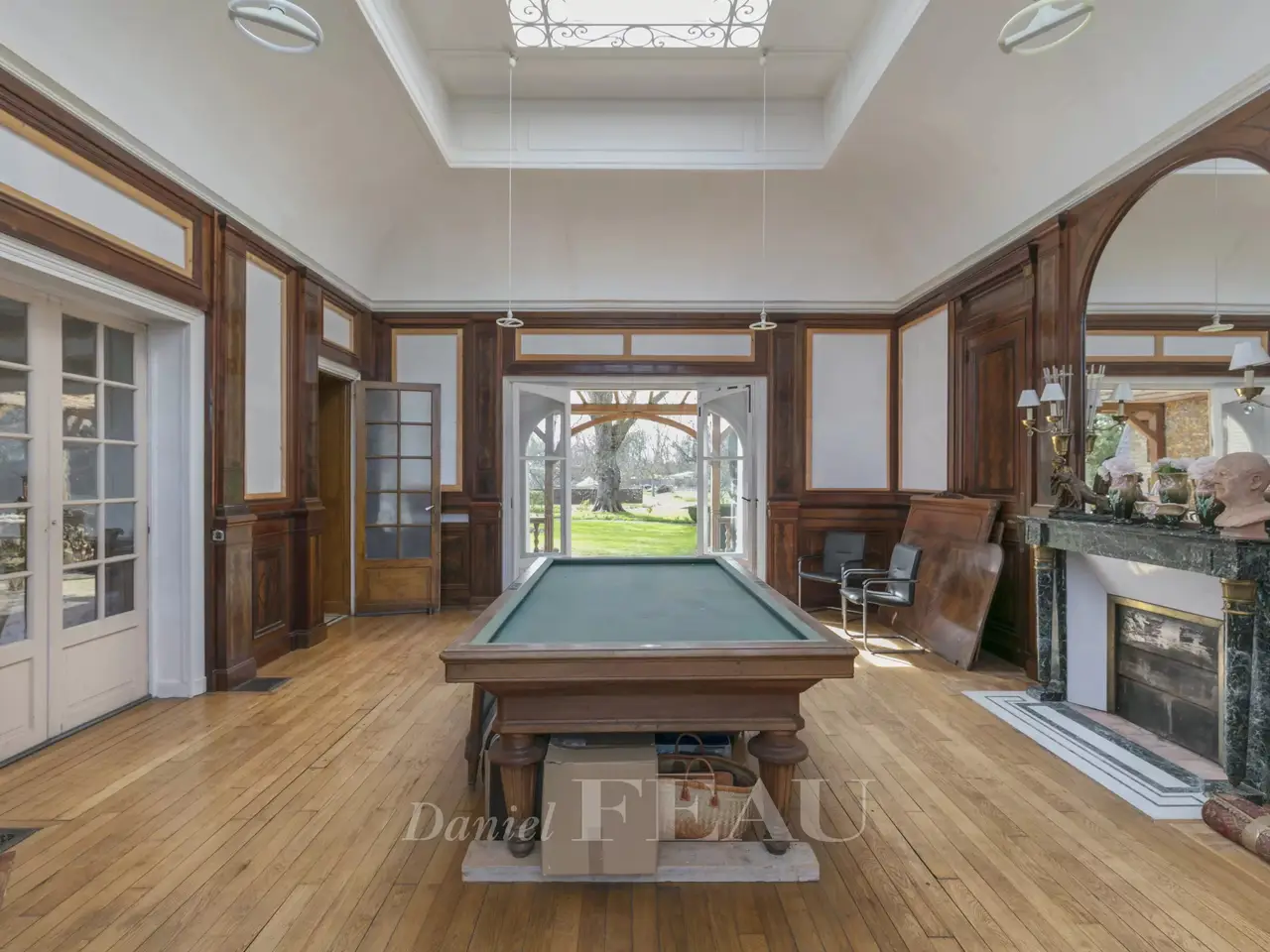 This elegant early 20th century villa with annexes is set in about 1.5 hectares of grounds. The main house includes a living/reception room and dining room with a fireplace, a kitchen, and a magnificent near 44 sqm billiard room featuring 5-metre high ceilings and mahogany panelling opening onto a terrace with a pergola. Upstairs are three bedrooms including a master, a bathroom and a separate wc. Three further bedrooms, a dressing room and a wc are on the 2nd floor. With a convertible attic. On a total basement with a good ceiling height. The caretaker’s lodge includes a living room, a kitchen/dining room, a bedroom with a fireplace, and a shower room/wc. A garage with a workshop includes a 2-room apartment to renovate and an attic. In a prime location enjoying a view of the Seine, the property oozes with period charm and features a tiled façade, wrought iron, mosaic floor tiles, parquet flooring, marble fireplaces, mouldings and stained glass. It is accessed by means of a peaceful cul-de-sac on the riverside. A 12-minute walk from the station, close to the schools including renowned Notre-Dame Les Oiseaux High School, 5 minutes from the nearest shops, and benefiting from easy motorway access.