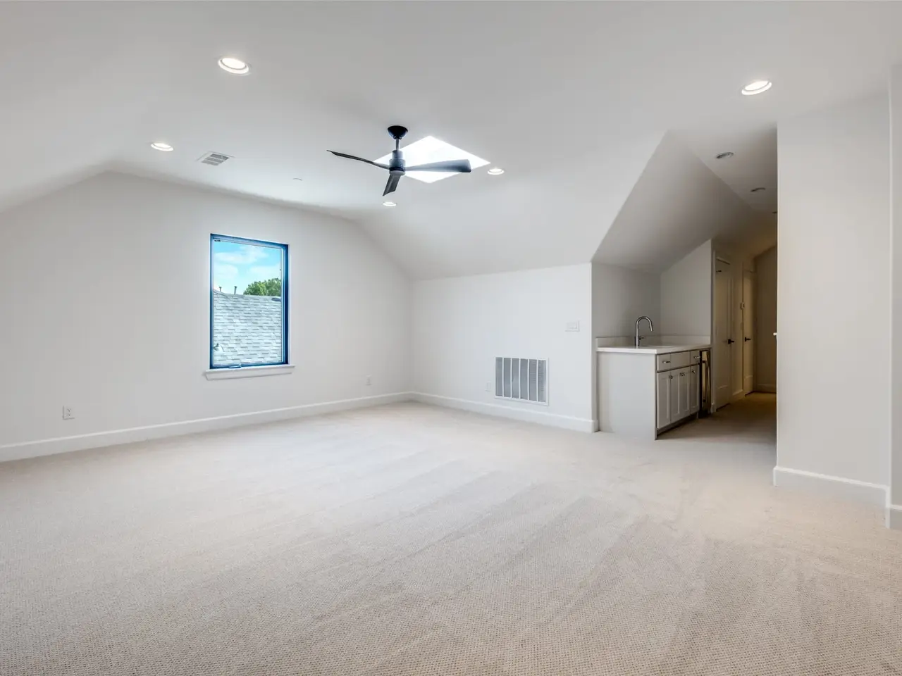 Look forward to being the first owner of this New Construction single-family attached home by well-known builder J Gregory Homes. Enjoy entertaining in your spacious living room with fireplace and wet bar, open to the dining area & kitchen, with glass doors out to the turfed side yard. Preparing meals will be a pleasure in your large island kitchen, featuring a breakfast bar, gas range with double electric ovens, built-in refrigerator, & walk-in pantry. The downstairs bedroom with ensuite bath serves as a guest suite or your private home office. Retreat upstairs to your primary bedroom suite and luxurious bath with dual vanities, freestanding tub, separate double shower, plus abundant closet space with built-in drawers & shelves. Three additional bedrooms with walk-in closets, two baths, and a full-size laundry room complete your second level. Your third level offers a multi-purpose game room or living area with wet bar plus a full bath. Enjoy a low maintenance lifestyle with all new amenities in a prime University Park location, walkable to SMU, Highland Park Middle School, Williams Park, Centennial Park, Curtis Park & pool, and Snider Plaza shopping & dining!