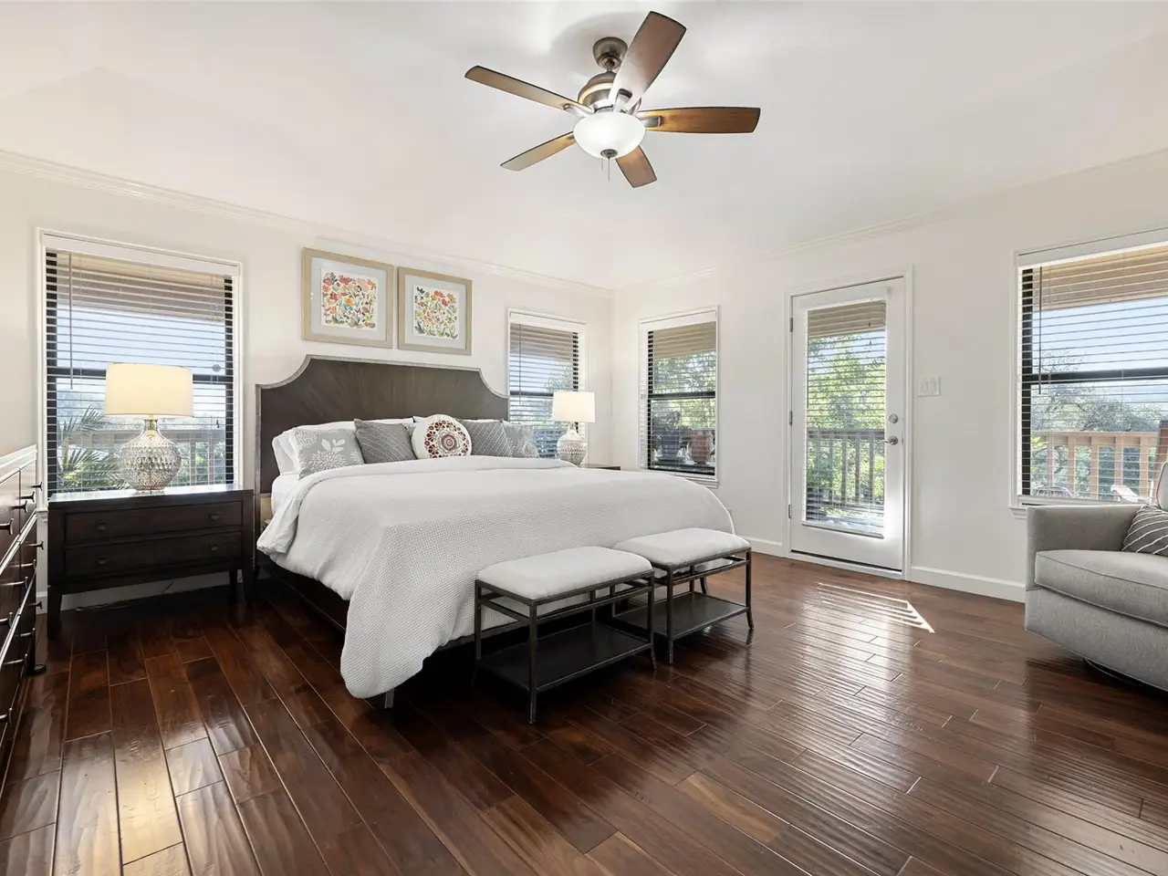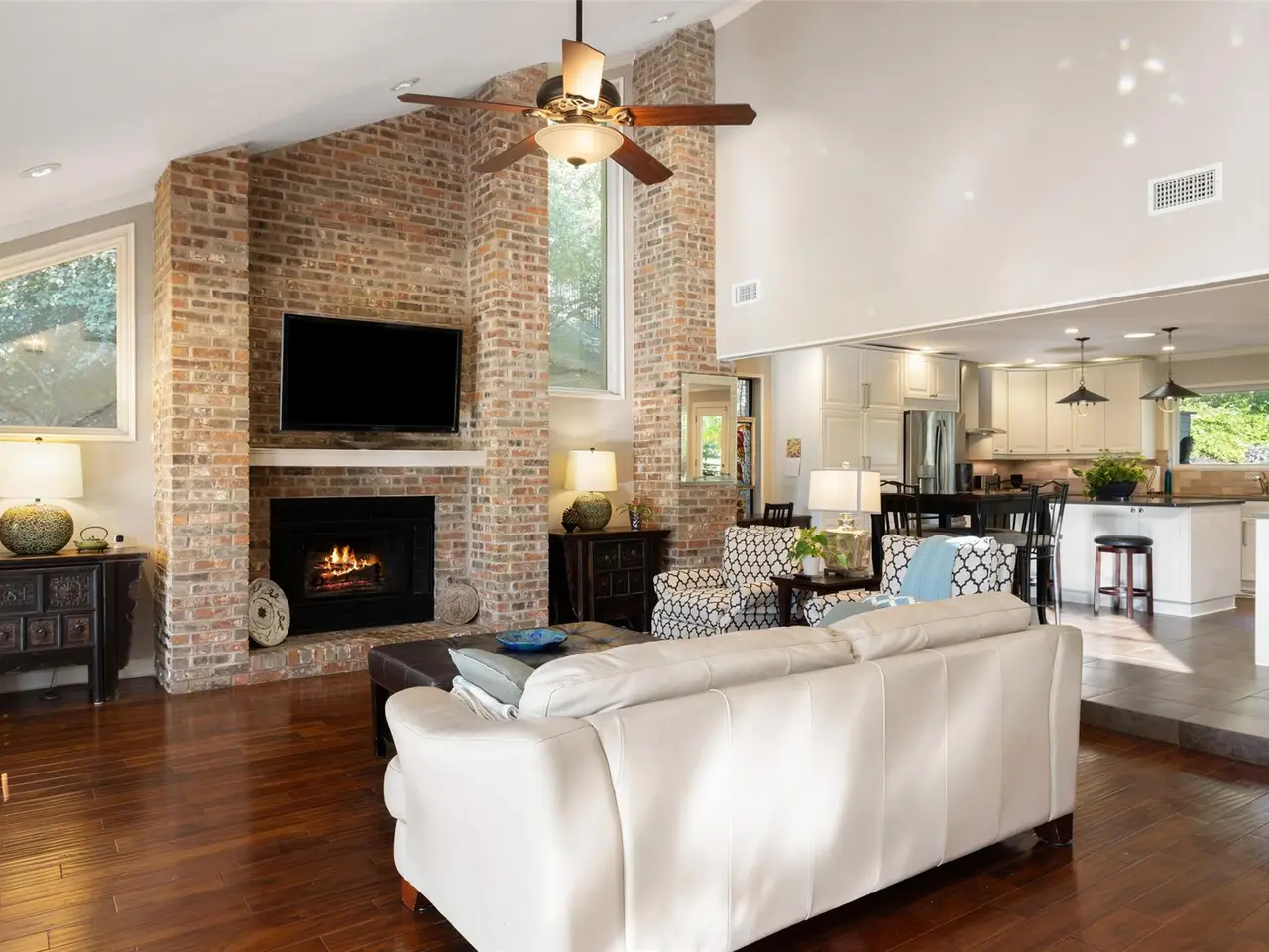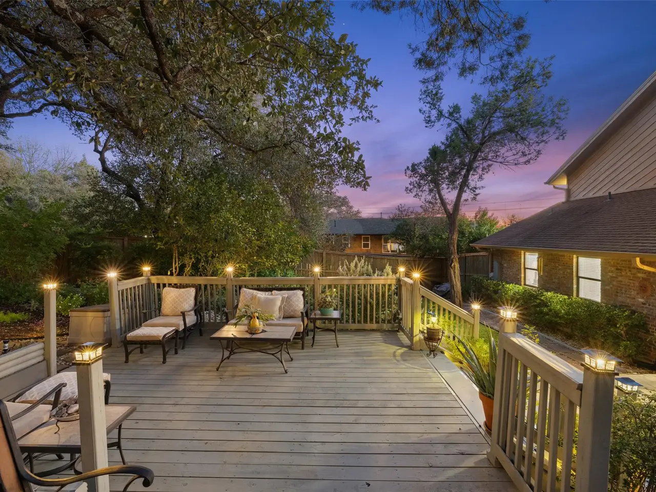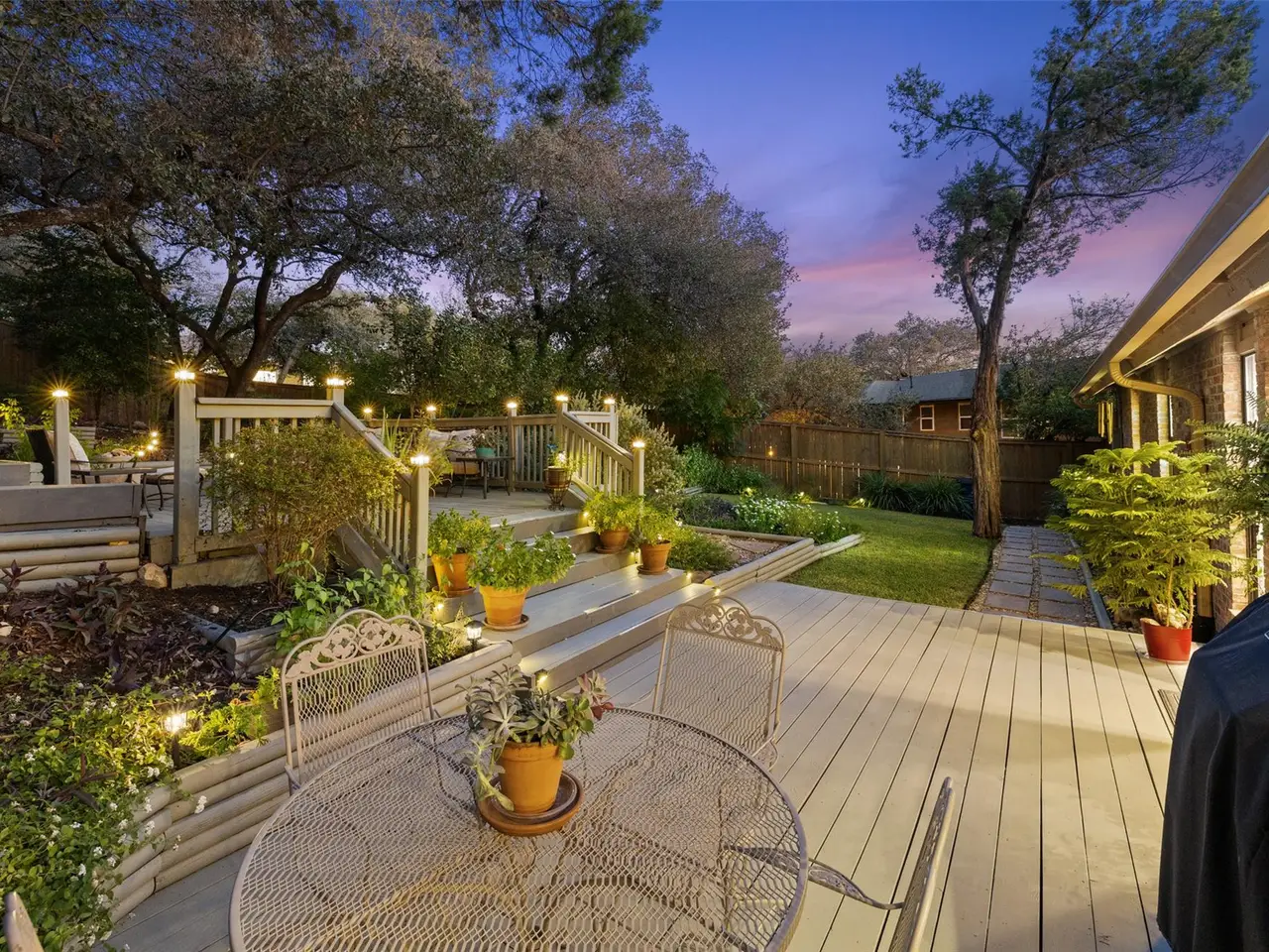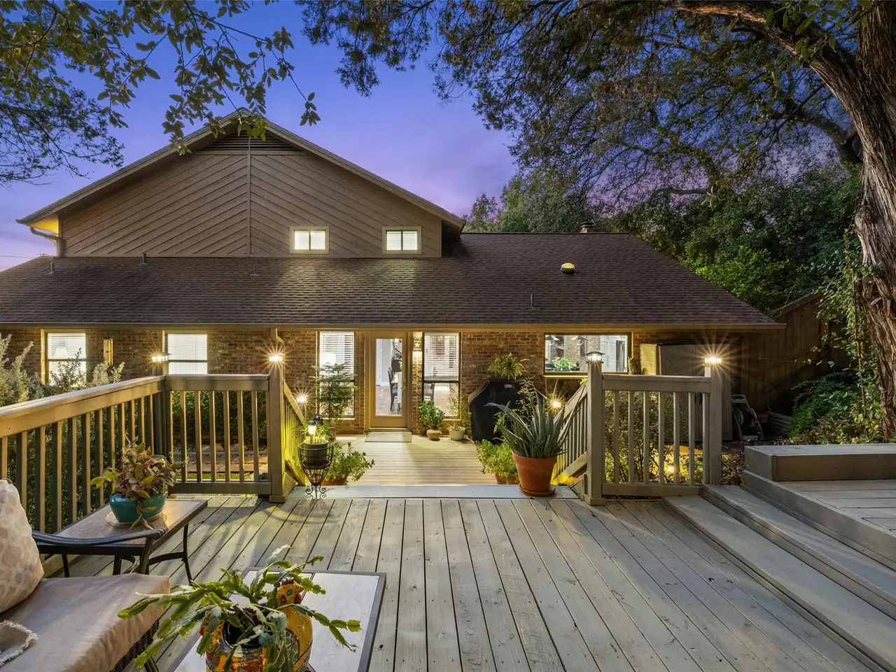 Welcome to 5206 Backtrail Dr, a peaceful haven nestled in the scenic and highly sought-after neighborhood of North Cat Mountain. Thoughtful landscaping, mature trees, and a stunning wraparound upper porch offer standout curb appeal before you step inside. Soaring vaulted ceilings and walls of windows fill the living space with light, centering around a striking floor-to-ceiling brick fireplace.The heart of the home is a bright kitchen with generous counter space, stainless steel appliances and a large window that perfectly frames views of the tree-filled backyard. Two secondary bedrooms and a full bath complete the main level, along with thoughtful storage throughout including a closet under the stairs, a finished-out attic walk-in closet and an extra-large temperature-controlled garage.Upstairs the spacious primary suite feels like a retreat offering high ceilings, a walk-in closet and direct access to the expansive wraparound porch where you can take in sweeping views of the Northwest Hills and even catch Fourth of July fireworks. The en-suite bath features dual vanities, a walk-in shower and a soaking tub creating a spa-like setting to unwind. A flexible bonus room upstairs currently serves as an office but could easily become a nursery, yoga space or custom dressing room.The backyard is where this home truly shines with nearly a third of an acre of lush tranquility, multiple decks for lounging and dining, a grassy area for pets or play, 8-foot fencing for privacy and outdoor lighting that brings the space to life after dark.Located just minutes from shopping and dining along Far West and 2222, with quick access to Mopac and Loop 360, 5206 Backtrail Dr offers the perfect balance of tucked-away hill country serenity and everyday convenience. You're zoned to highly rated AISD schools including Doss Elementary, Murchison Middle School and Anderson High School and surrounded by nature trails, neighborhood parks and the best of Northwest Austin living.