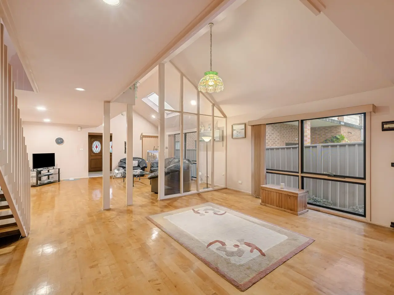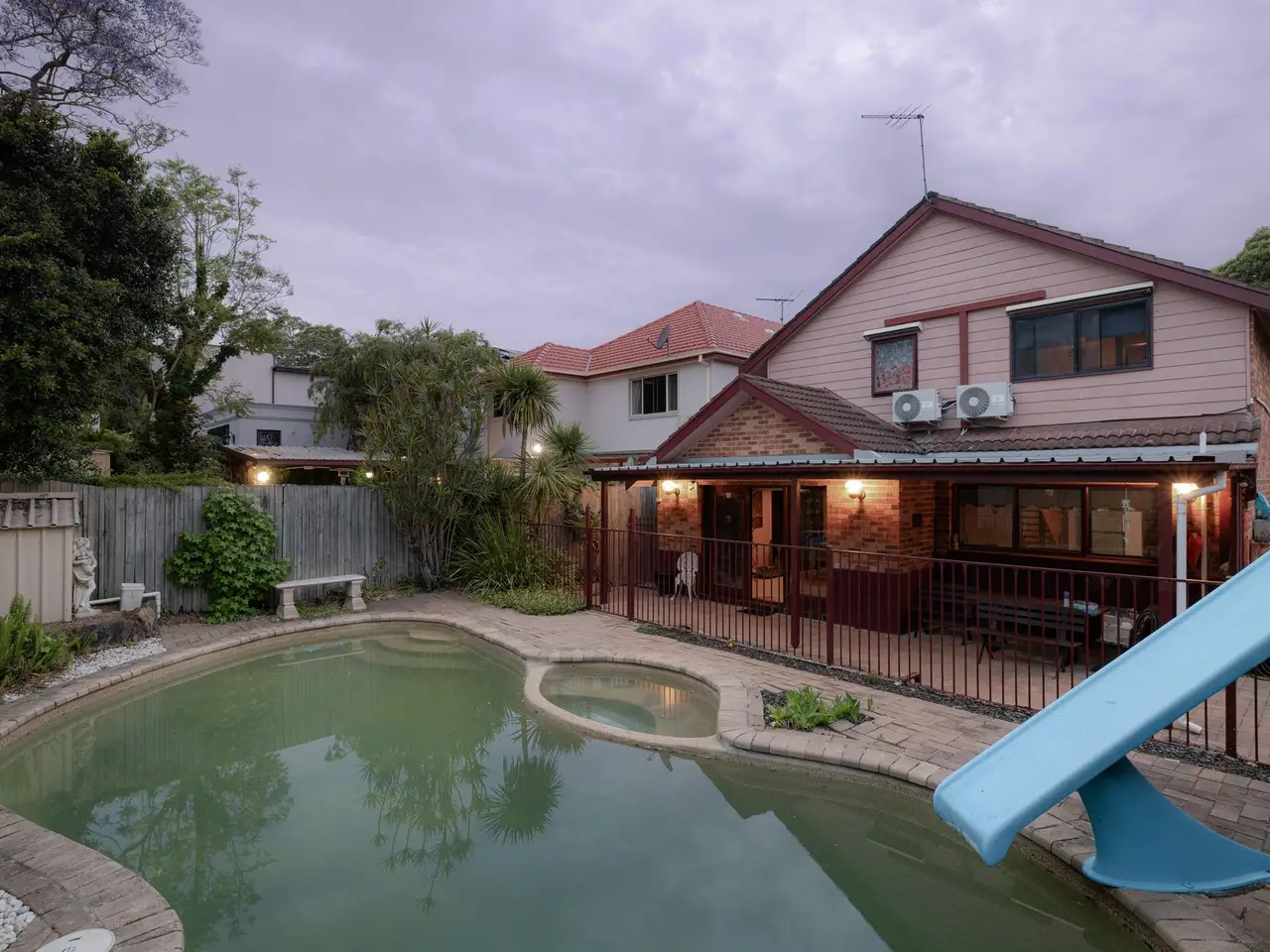 Set on a quiet, tree-lined street adjoining Strathfield Park, this north-to-rear-facing residence celebrates its leafy setting while offering space, privacy and a relaxed family lifestyle. Sunlight fills the interiors through skylights, highlight windows and vaulted ceilings, accentuating polished timber floors and a series of formal and casual living spaces. The backyard features an extensive all-season terrace with a barbecue, overlooking the gated pool and landscaped gardens. This classic home is well-maintained yet offers future scope to add your personal touch in a high-growth location. - Well maintained classic family home within Strathfield's Golden Mile precinct - Elegant collection of formal and casual living spaces set across two versatile levels - Full-width all-season alfresco terrace with built-in barbecue overlooking the pool - Well-maintained kitchen features timber cabinetry, gas appliances and dishwasher - Four bedrooms with built-ins, master suite with private balcony and elevated views - Two full bathrooms both with soaking tubs, one includes a luxe step-up spa bath - Features enjoy high cathedral-style ceilings, extensive highlight windows, skylights - Polished timber floors, air-conditioning, original fittings across both sunlit levels - Potential to renovate, personalise, enhance or add value in a high-growth area - Double garage with internal access, gated block boarded with landscaped gardens - Set within footsteps from Strathfield Park and within reach of elite schools and stations