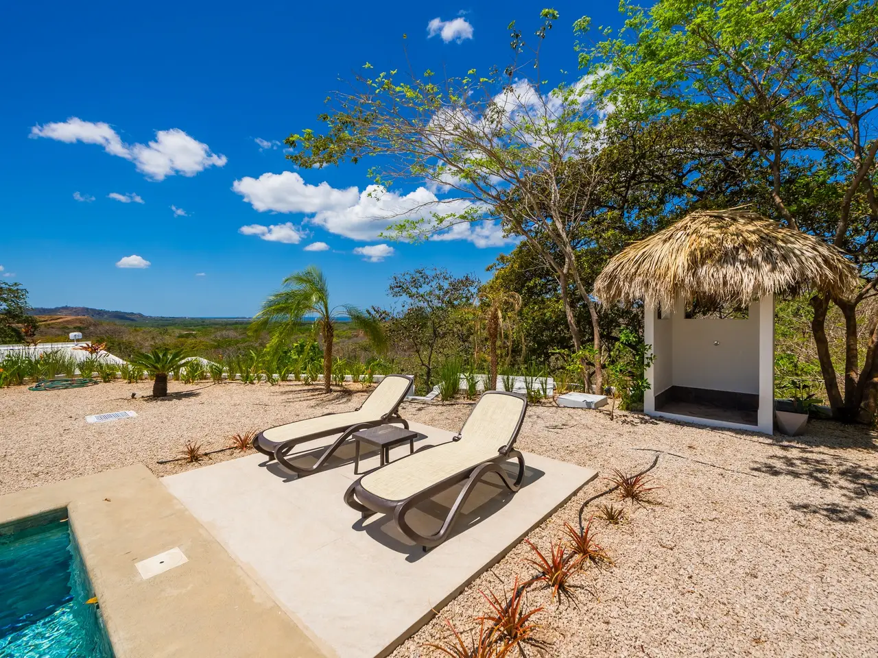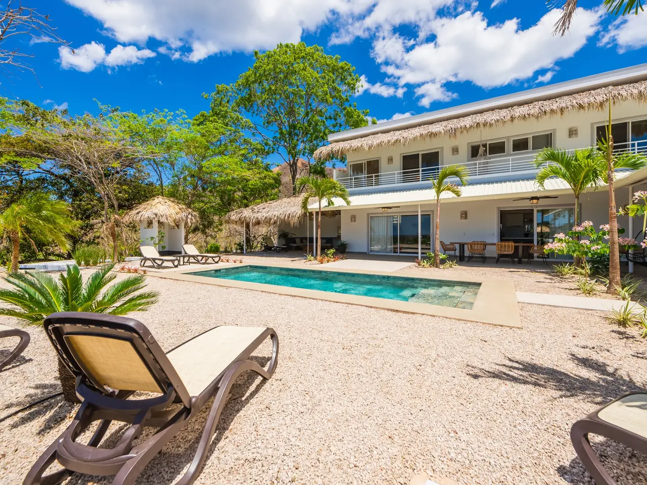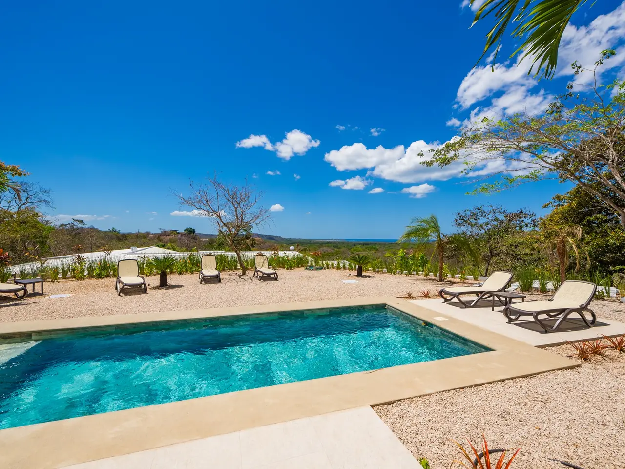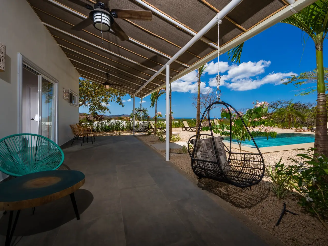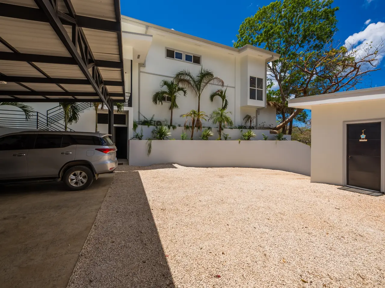 Welcome to Villa Pacha & Casita Coco, a stunning property located between the serene Matapalo area and Playa Grande’s famous surf beach. This peaceful retreat offers breathtaking Pacific Ocean and jungle views and is close to the beautiful Las Baulas National Park. Villa Pacha sits on a 1693m² lot and includes a modern two-story 3767 sq ft home and a separate 538 sq ft guest house. The main home offers 4 bedrooms, 4.5 bathrooms and the guest house has 1 bedroom with 1 bathroom. Built in 2022, this home blends style and comfort with gorgeous ocean views from nearly every room. As you enter through the electric gate, you’ll discover the guest house on your left, covered parking for three cars and a storage bodega straight ahead and the main house to the right. A few steps up lead to the main home, where an open kitchen / living room space greets you with double patio doors that overlook the pool and the beautiful ocean views. Villa Pacha is set up like a “L” shape around the pool. On the main floor there are 2 bedrooms with ensuite bathrooms, a powder bathroom for guests, and the social area. The main floor bedrooms have direct access to the terrace and pool. Upstairs, above the living room and kitchen there are 2 other bedrooms with ensuite bathrooms, patio doors and balconies with stunning ocean views. This stunning property boasts a spacious, covered wrap-around terrace on the main level — the perfect setting for relaxation and entertaining. The terrace features an expansive outdoor living room and a dedicated BBQ area, ideal for hosting gatherings or enjoying peaceful evenings outdoors. Just steps away, the large swimming pool is surrounded by sun loungers and lush tropical plants, creating a private oasis where you can soak up the sun in style. This seamless blend of indoor-outdoor living offers the ultimate Costa Rican lifestyle experience. The property also includes a separate guest studio with its own pool and stylish design. Ideal for visiting friends and family or as an Airbnb rental, this space provides extra privacy and income potential. Villa Pacha is sold fully furnished and decorated, offering a hassle-free move-in experience. It’s perfect as a private home or investment property with excellent rental potential. Don’t miss this chance to own a slice of paradise in Costa Rica. Contact us today to schedule a tour of Villa Pacha!