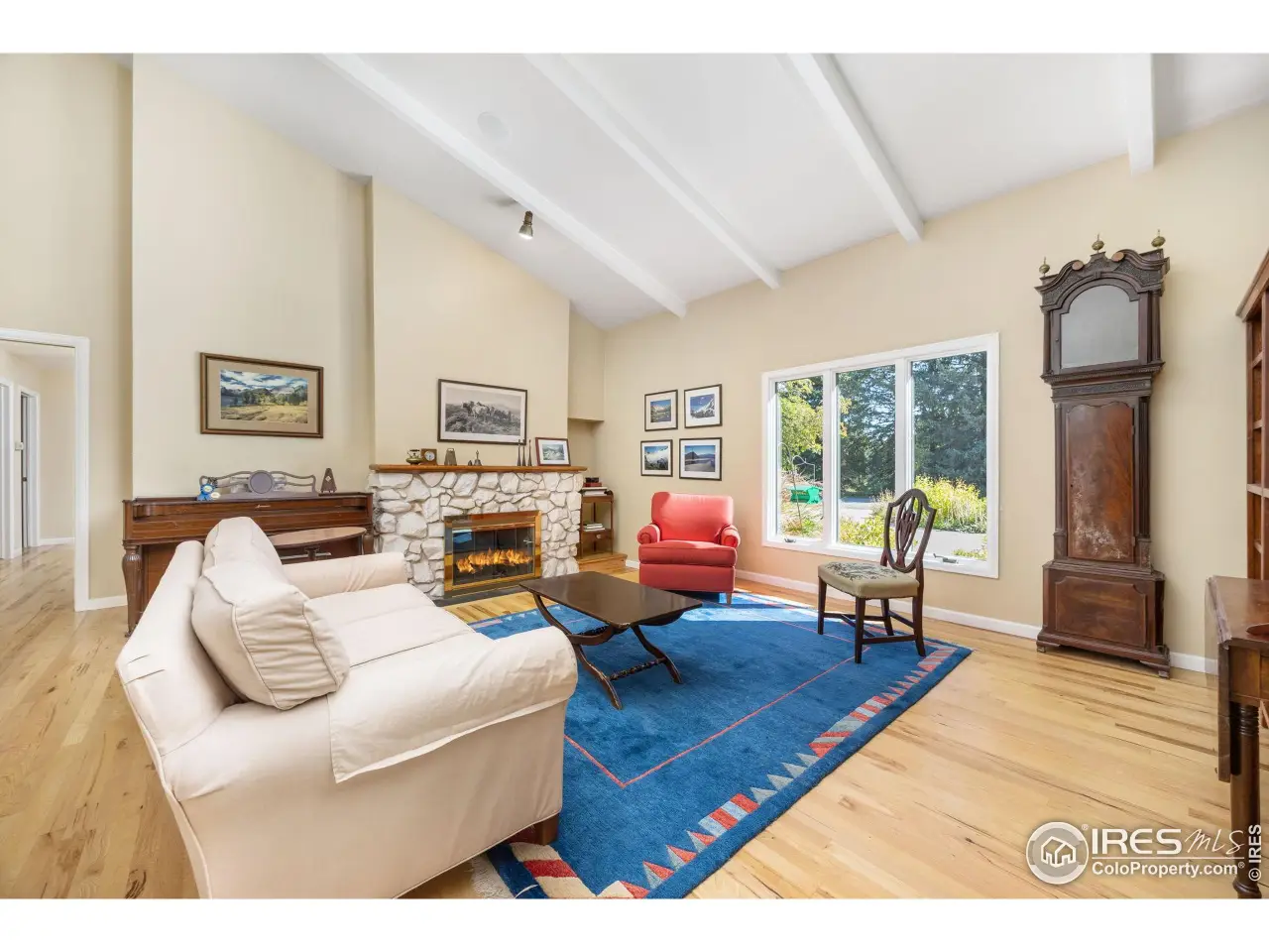 This welcoming home is rooted in a secluded grove on 2/3 acre in the sought-after Lindenwood neighborhood. Inside, abundant windows on the main floor bring in uplifting sunlight throughout the day. Hickory floors cover most of the main, adding to the warm feel. At the west end, the eat-in kitchen - remodeled in 2018 - opens to a sheltered stone patio. The dining room offers space for more formal meals. The master ensuite flows from den to bedroom to the skylit bathroom with shower, jacuzzi bath, and walk-in closet. The vaulted ceiling in the large, airy living room provides concert hall acoustics while a gas fireplace supplies warm ambience to your gatherings. Through a glass door from the living room is a newly rescreened porch with a similarly high ceiling. At the east end of the house, sunrise shines into a large sitting room. The many windows make this room a dream for artists or anyone who craves the winter sun. Across the hall are two bright bedrooms and a bath. Head downstairs to the three finished basement rooms, one with fireplace, and a third bath. The owned solar panels provide no-cost electricity.Open space greenbelt borders the property to the north and west, and across the quiet drive to the south. A mixed, mature hedge of native and other leafy shrubs provides privacy for the kitchen patio, screened porch, and back yard. Flowering and fruiting trees, shrubs, and herbaceous plants provide color from early spring to fall and welcome bird and insect pollinators. Mature trees provide shade and color your fall while a large vegetable garden can feed your family. The yard and nearby lake attract over 60 species of birds from bald eagles to hummingbirds.HOA amenities include a lake, tennis courts, stables, and playground. Quiet, private roads and open spaces make for pleasant walking and safe children's play. All this is nestled in one of the most desirable neighborhoods, just minutes from Old Town and all that Fort Collins has to offer.