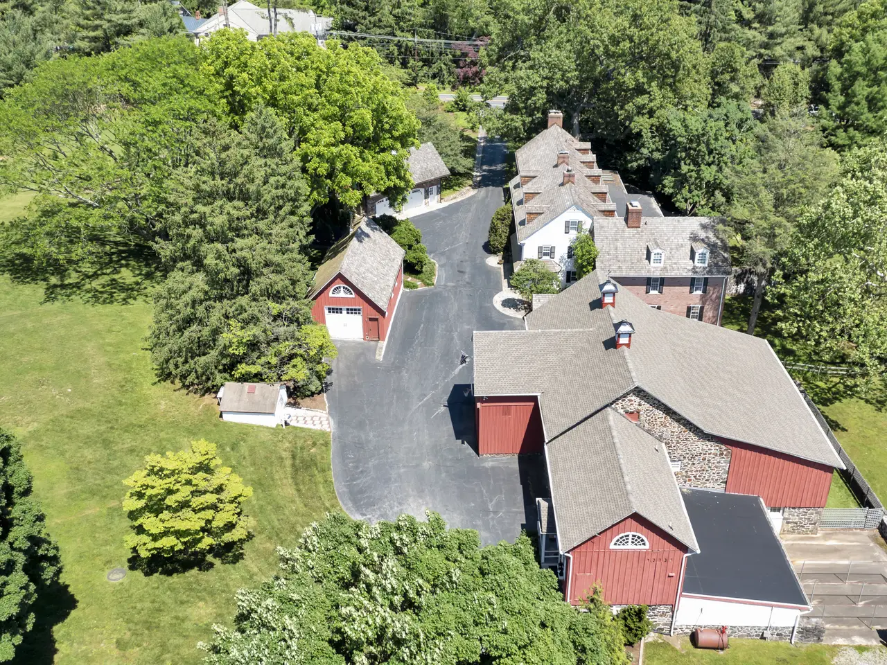 A Rare Offering: Historic Ball Farm, Circa 1725 Discover a once-in-a-lifetime opportunity to own Ball Farm, a distinguished 10.5-acre estate steeped in history and timeless elegance. Originally acquired by E.I. duPont in 1812, this extraordinary property has been entrusted to just four owners in its long and storied past. Beyond the private gated entrance, a world of historic charm and refined luxury unfolds. The three-story, six-bedroom residence features six full and two half baths, blending period craftsmanship with modern comfort. Hardwood and brick floors lead you through character-rich spaces adorned with exposed beams, five fireplaces, and hand-painted murals gracing select walls throughout the home. The primary suite, complete with a fireplace and en-suite bath, offers a peaceful retreat, while a sun-drenched solarium opens onto an expansive stone patio overlooking a tranquil pond—a perfect setting for relaxation or entertaining. A sunken family room, den with built-ins, and inviting eat-in kitchen ensure every space feels warm, livable, and elegant. Beyond the main residence, numerous outbuildings enhance the estate’s appeal—including a one-bedroom, one-bath apartment that adjoins the barn, which is equipped with stalls and kennels—perfect for equestrian pursuits, creative endeavors, or additional living space. A springhouse and an oversized two-car garage with loft, offer additional flexibility. Perfectly situated in the heart of the historic Brandywine Valley and minutes from Greenville Center, Ball Farm offers the rare combination of privacy and convenience, with easy access to Philadelphia, New York City, and Washington, D.C.—providing connections to major cultural and business centers. Properties of this caliber rarely come to market. This is an extraordinary opportunity to own a true piece of the Brandywine Valley's legacy. Schedule your private tour today and experience the timeless beauty of this remarkable estate firsthand. Agent is related to seller. Some photos are virtually staged.