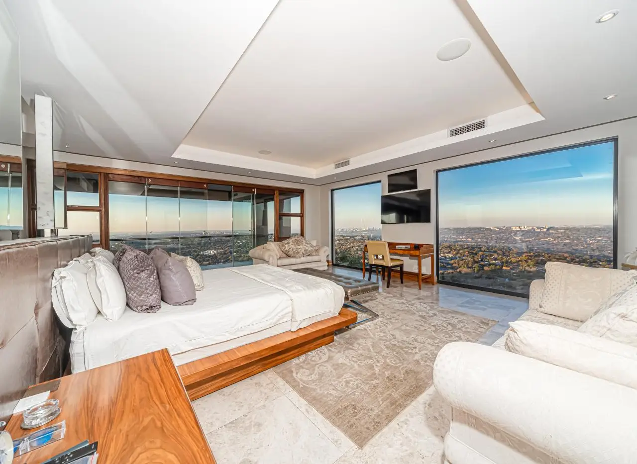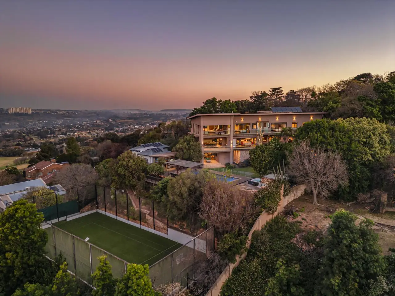 Northcliff Hill's Pinnacle of Prestige | Where Elevated Living Meets Breathtaking Horizons Perched high above Johannesburg on the most coveted slopes of Northcliff Hill, this architectural masterpiece redefines luxury, privacy, and scale. Resting on a 4,700sqm north-east facing estate and offering an impressive 880sqm under roof, it is a private sanctuary where every detail has been curated for an unrivalled lifestyle. Tucked discreetly away from the road, the home unveils itself through landscaped perfection - manicured gardens, mature trees, and panoramic vistas stretching as far as the eye can see. Here, sunrises and sunsets are not just admired - they are lived. Opulent Accommodation Five palatial, light-filled bedroom suites each boast walk-in closets and spa-inspired en-suite bathrooms, designed for ultimate comfort and seclusion. The primary suite commands awe-inspiring city views, creating a daily backdrop of pure magic. The Heart of the Home At its centre lies a gourmet chef's kitchen, where sleek integrated SMEG appliances meet exceptional function - complete with a butler's walk-in fridge, dedicated pantry, and offset scullery. This culinary haven seamlessly connects to expansive formal and informal lounges, a sophisticated dining room, a stylish bar, a TV lounge, and a private office. Every space flows effortlessly onto glass-framed balconies that embrace the Johannesburg skyline. A Resort-Style Lifestyle Crafted for both relaxation and entertainment, the property offers a host of world-class amenities: - Sparkling pool with sun-soaked deck and fully equipped pool bar - Indoor and outdoor gym facilities - Private rooftop soccer pitch - Jacuzzi under the stars - Wood-fired pizza oven nestled beneath romantic grapevines - State-of-the-art cinema room for unforgettable movie nights Additional Excellence Completing the picture are a fully self-contained one-bedroom flatlet, three-bedroom staff quarters, and garaging for four cars. Comfort is ensured with underfloor heating, a central air-conditioning system, home automation, generator, central vacuum system, borehole, sprinkler system, and solar geysers. This is not merely a home - it is a statement of achievement and a legacy in the making. For those who demand nothing less than extraordinary, Northcliff Hill's finest offering awaits.